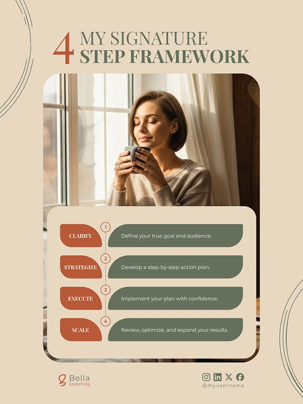 A strategic 4-in-1 social media system designed for coaches and consultants to instantly build trust, establish expertise, and drive high-ticket sales. Fully editable in both Canva and Figma.