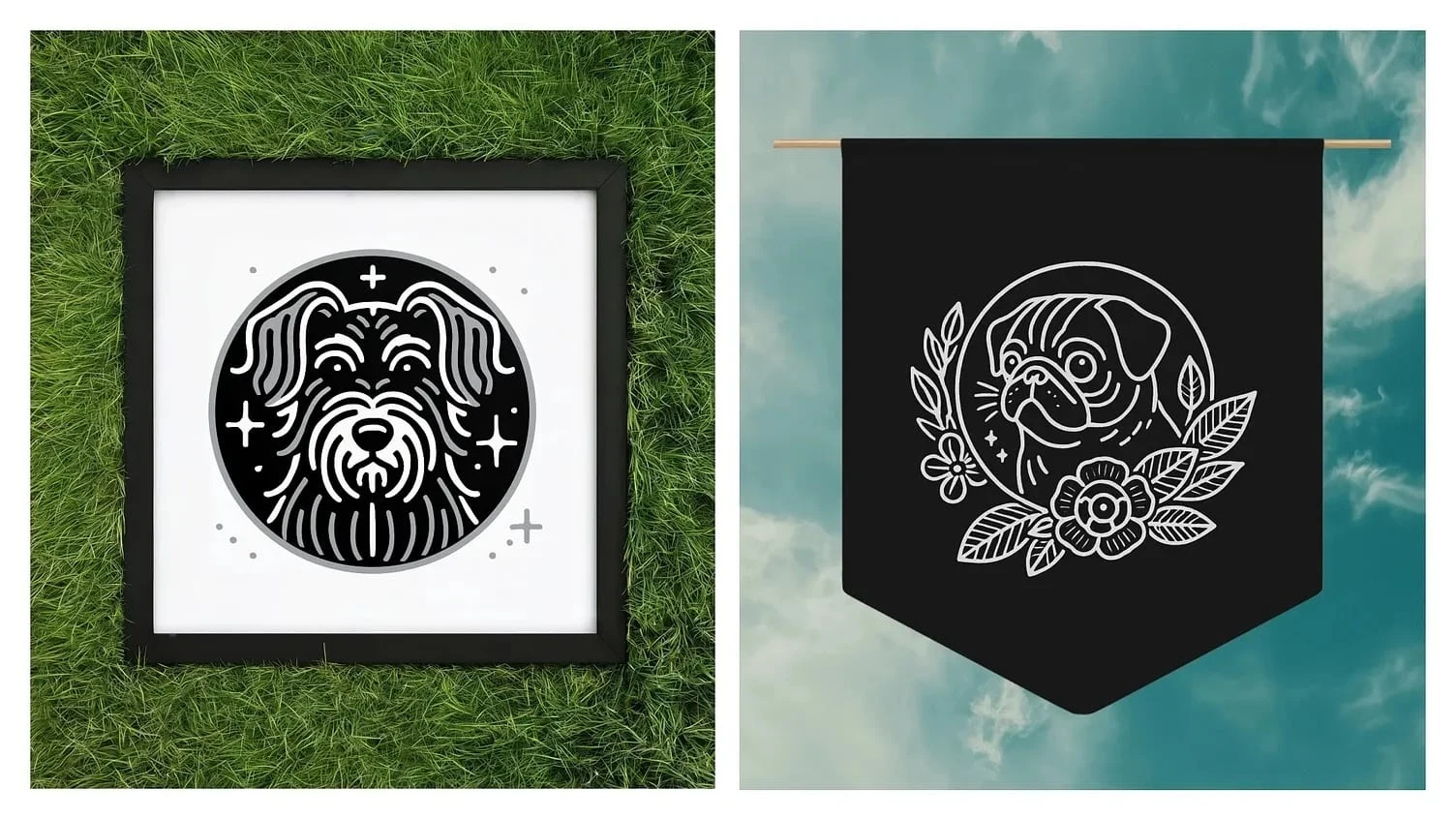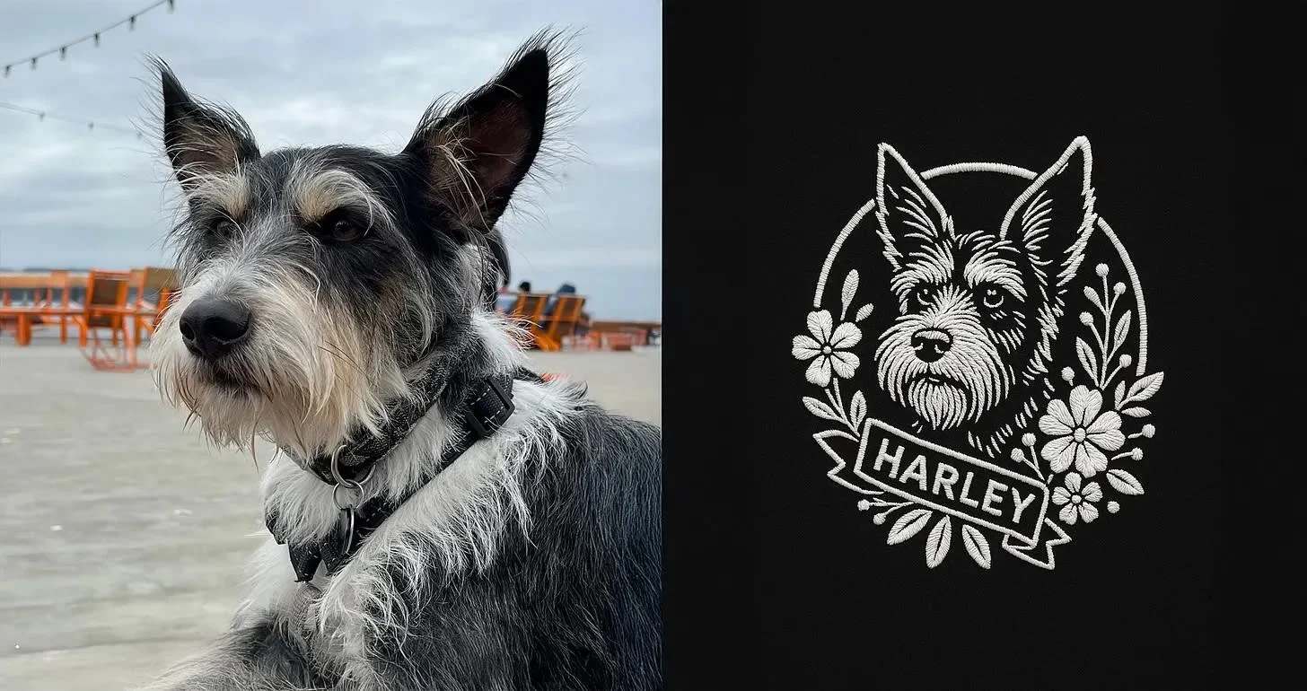I wanted to create something that truly celebrates the bond between people and their dogs, and that’s how these pet portraits came to life. Using a mix of art and technology, each portrait is designed to capture what makes every pet special. The process is simple—just share a few favorite photos and customize the details. Whether embroidered or printed, these portraits are more than keepsakes—they’re a way to hold onto the love and personality of your best friend for years to come.