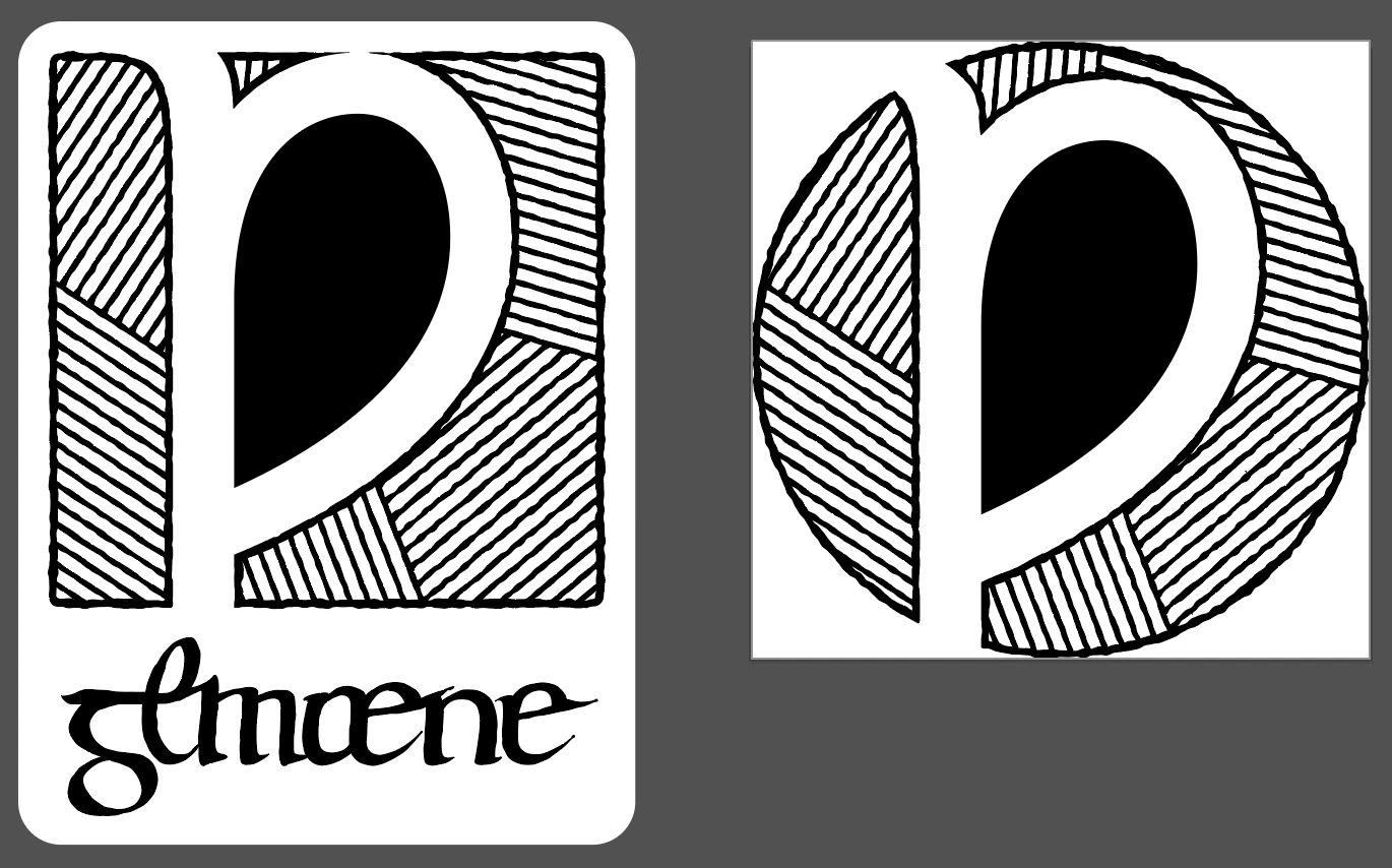 To make these two logos more widely usable, I created a black-and-white version inspired by the hatching lines of the medieval manor map. So while the “fertile” inner commons of the Wynn logomark is solid black, the parallel lines on the edges have a “hatching line” effect, creating the illusion of a gray tone.