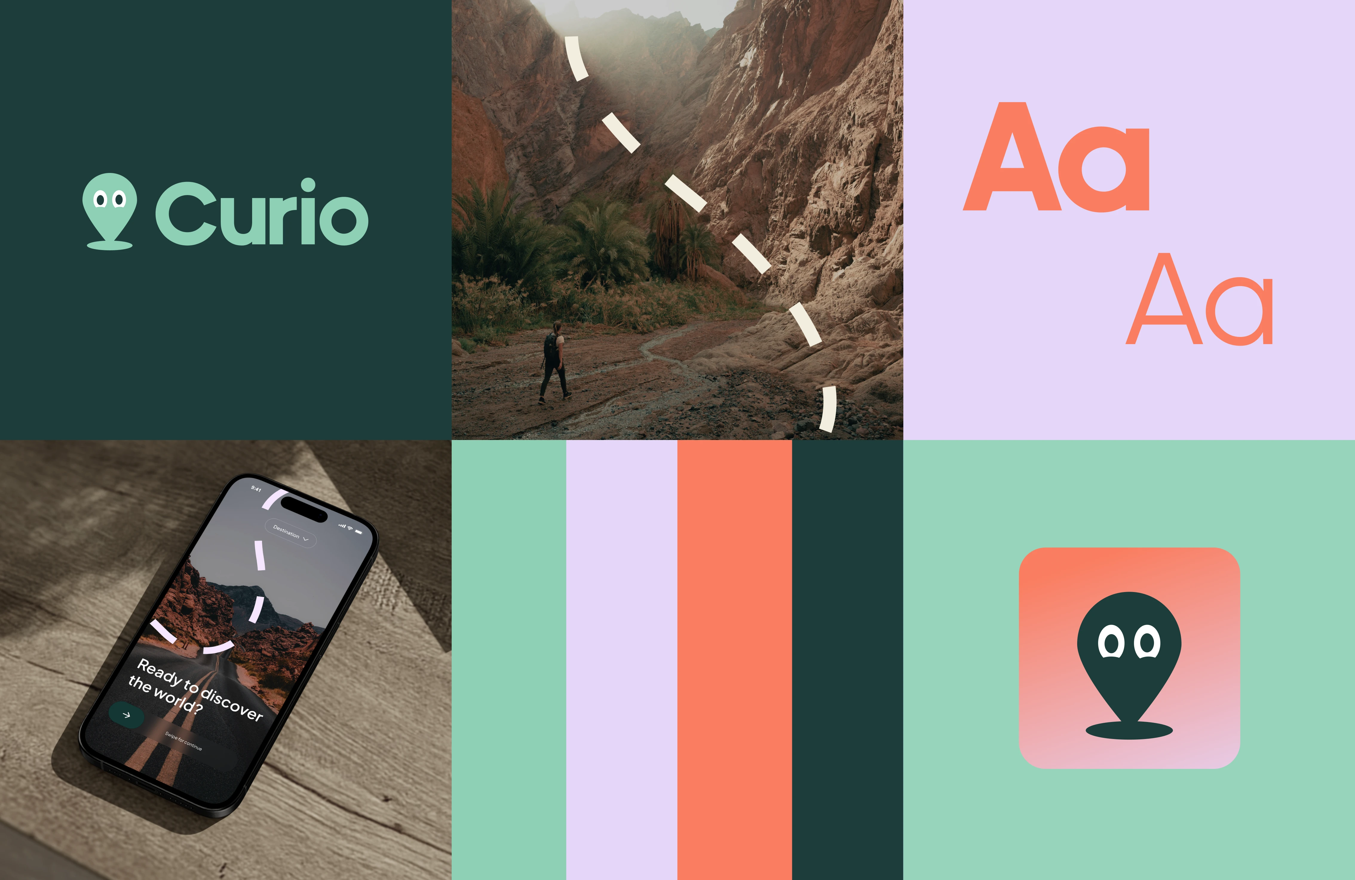 Creation of the visual identity for Curio, an innovative travel app enhanced with an AI feature to provide personalised recommendations and tips for travellers.