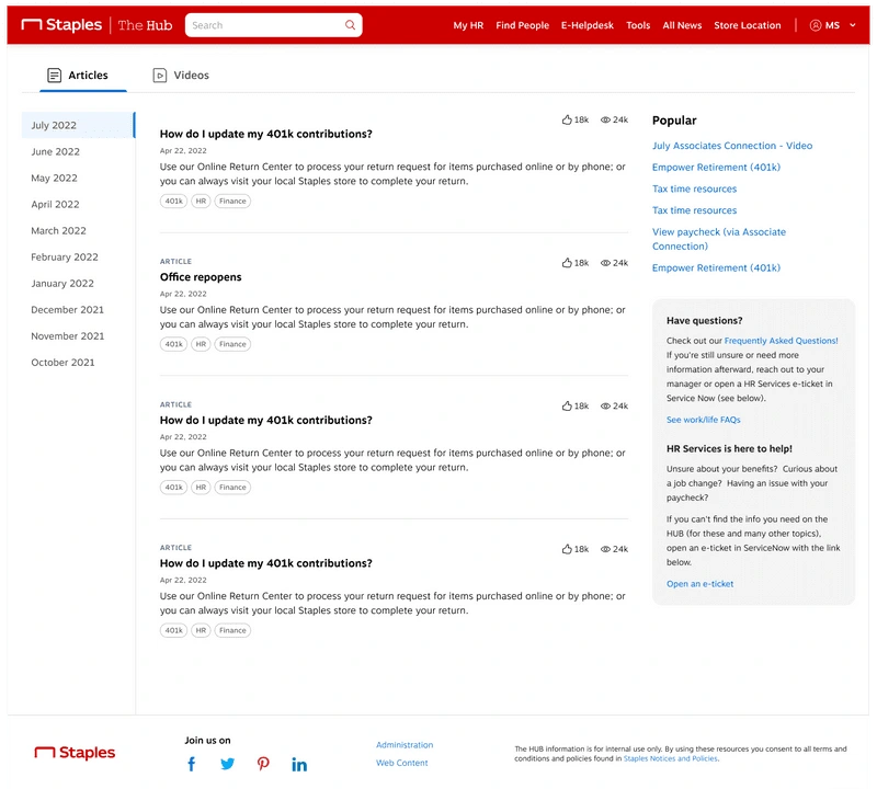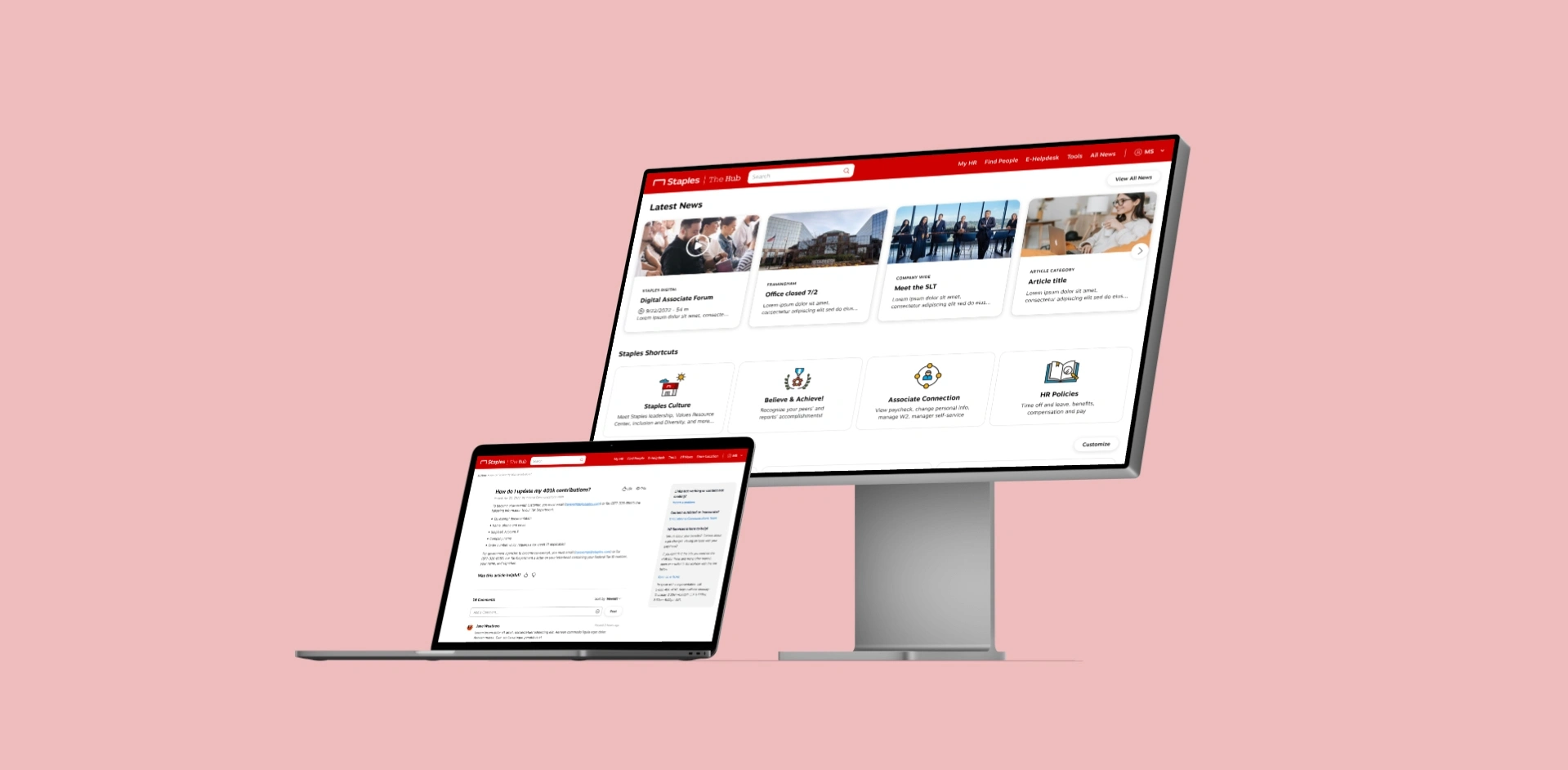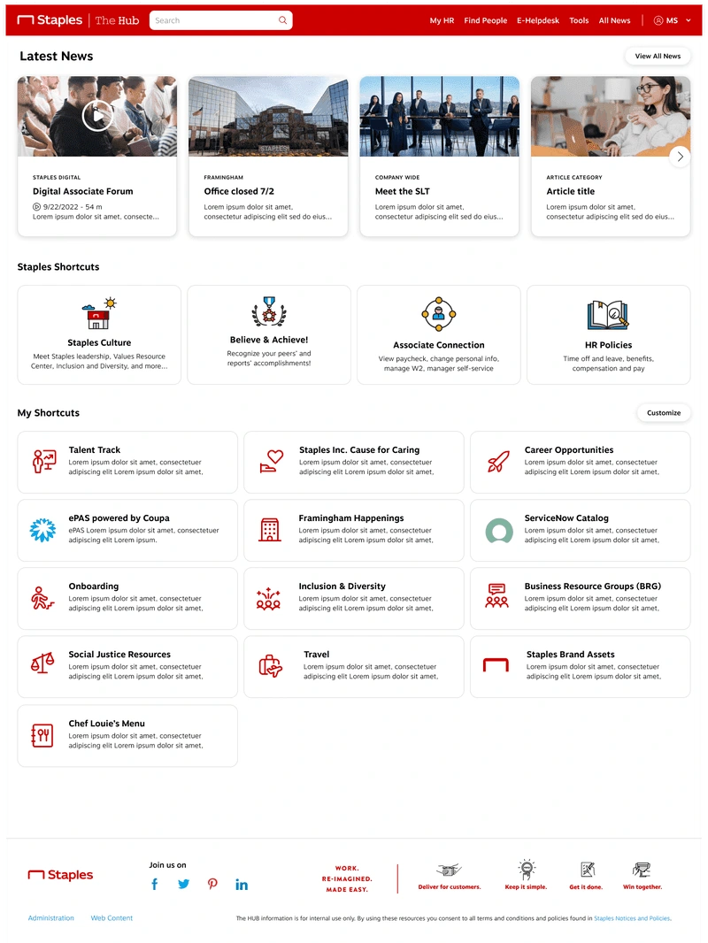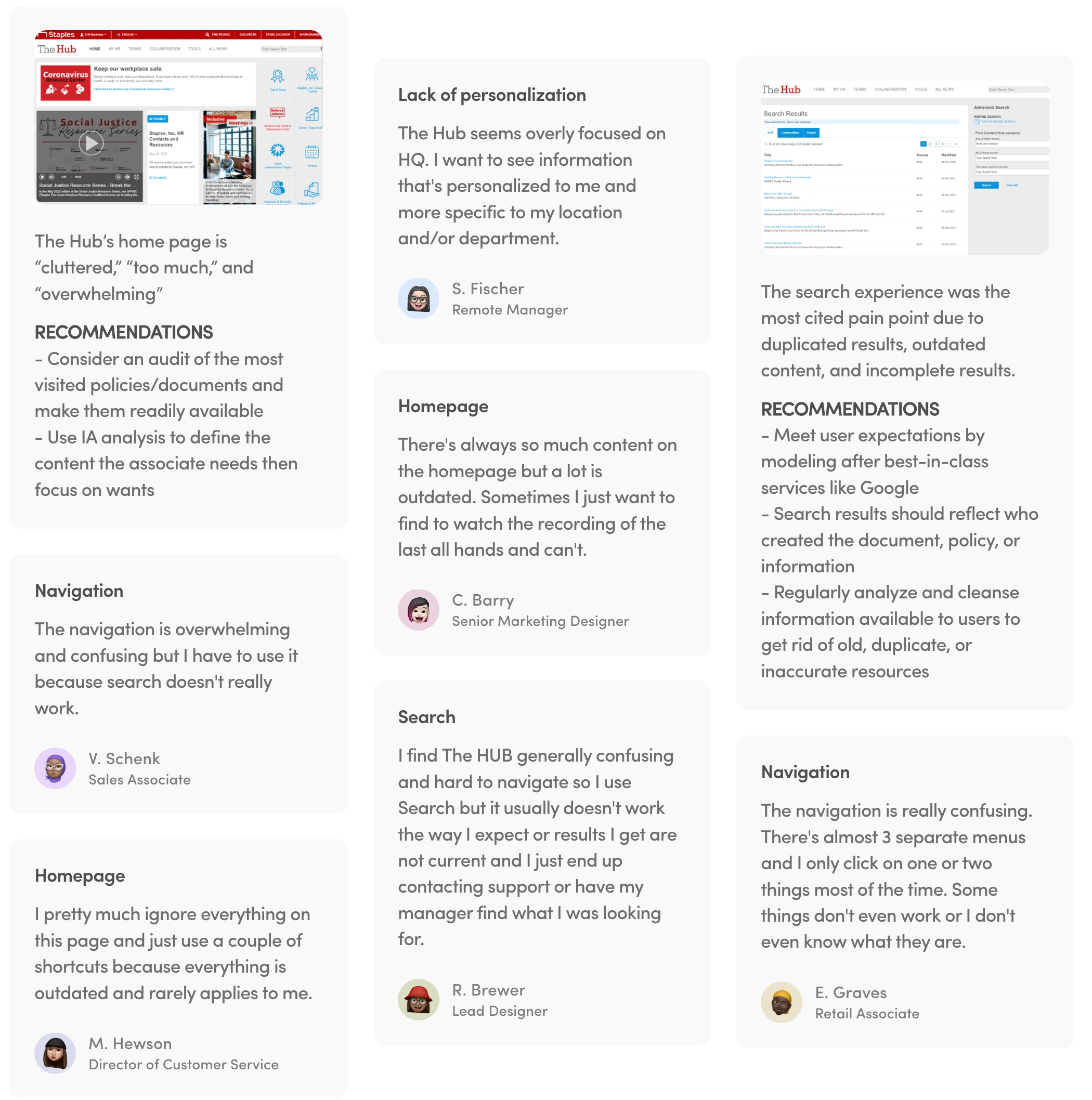 I started a FigJam file based on research takeaways. I wanted to start with something low-fi to encourage stakeholder collaboration through commenting or low-fi design ideation. Some user feedback you'll see represented are having content personalized and customizable, shortcuts for most used areas of the portal, surfacing latest and most important information at the top, reducing clutter in the navigation, and more.