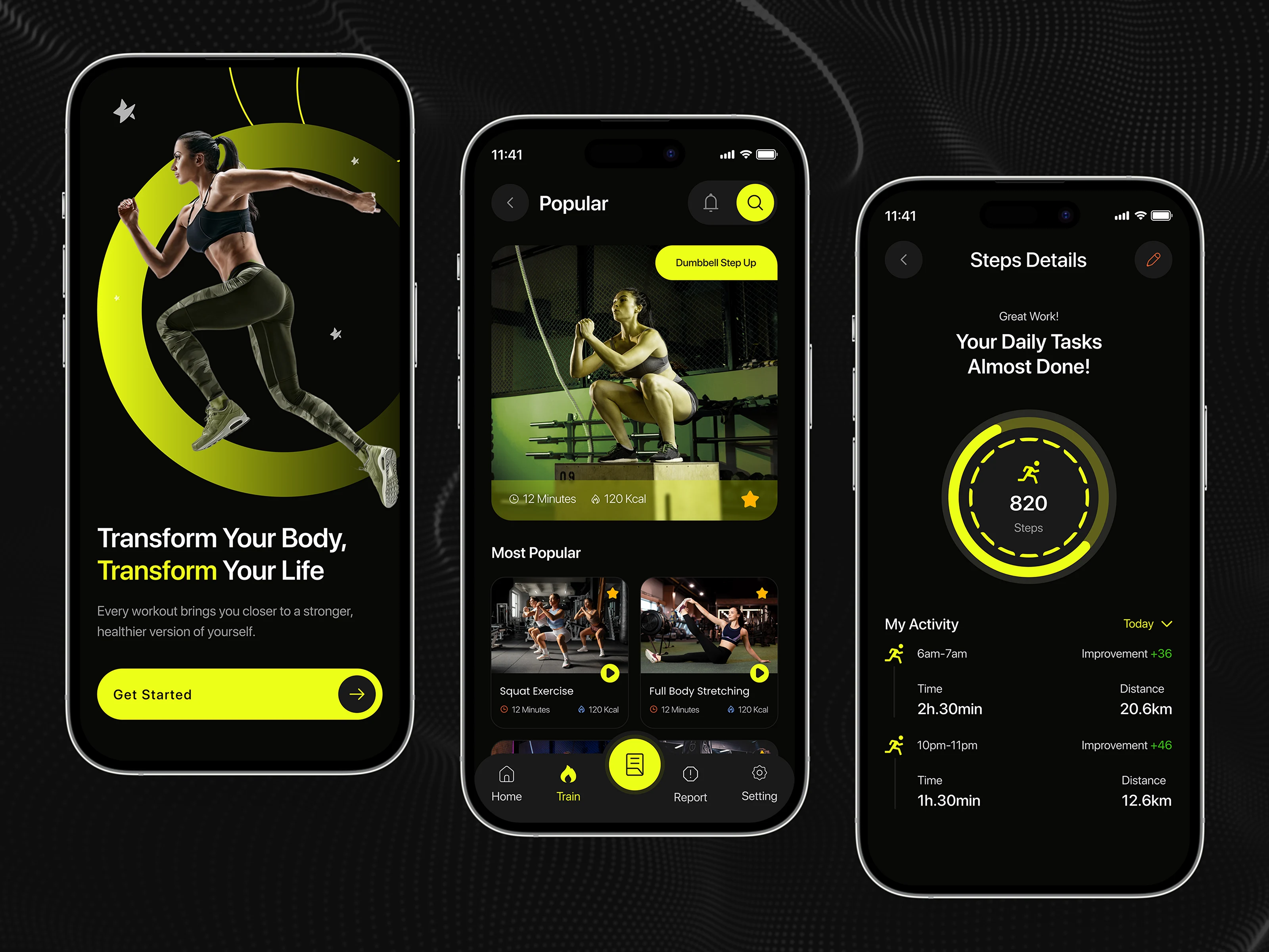 Here’s a concept of the fitness mobile app which can help you to choose a fitness program you need and check your physical activity and pulse rate.