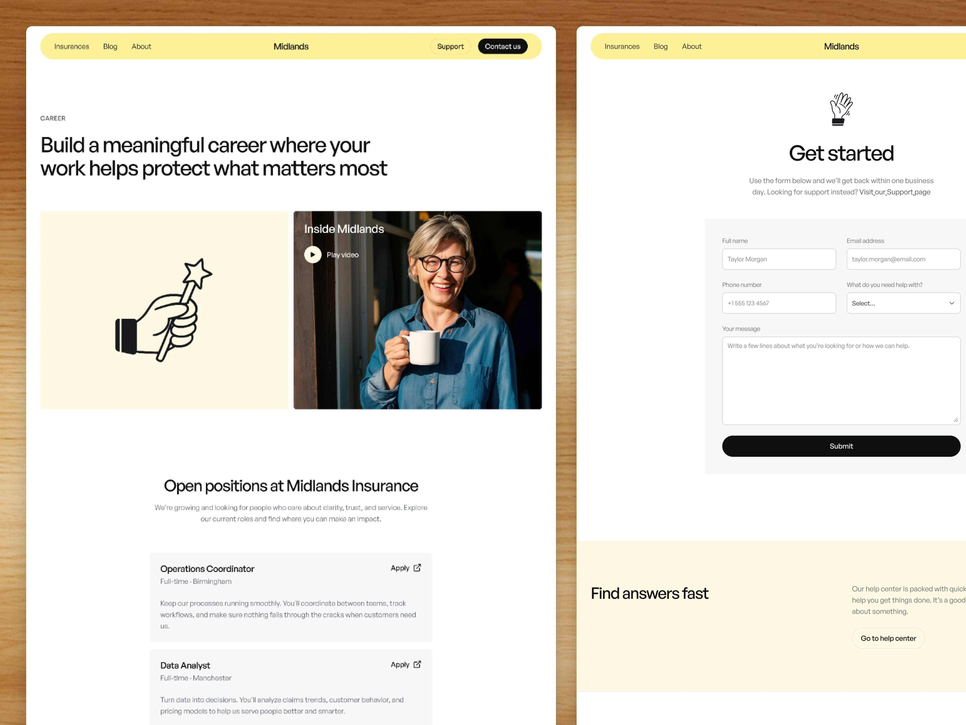 The warm, friendly design uses soft tones, clear typography, and illustrated graphics to make complex topics approachable. Each layout is built to guide visitors smoothly from learning to taking action, whether comparing plans or requesting a quote.
