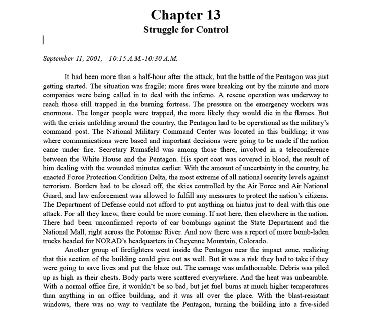 These are some excerpts from my ongoing historical novel "The Skies of September", which is focused on the story of America around the 9/11 attacks