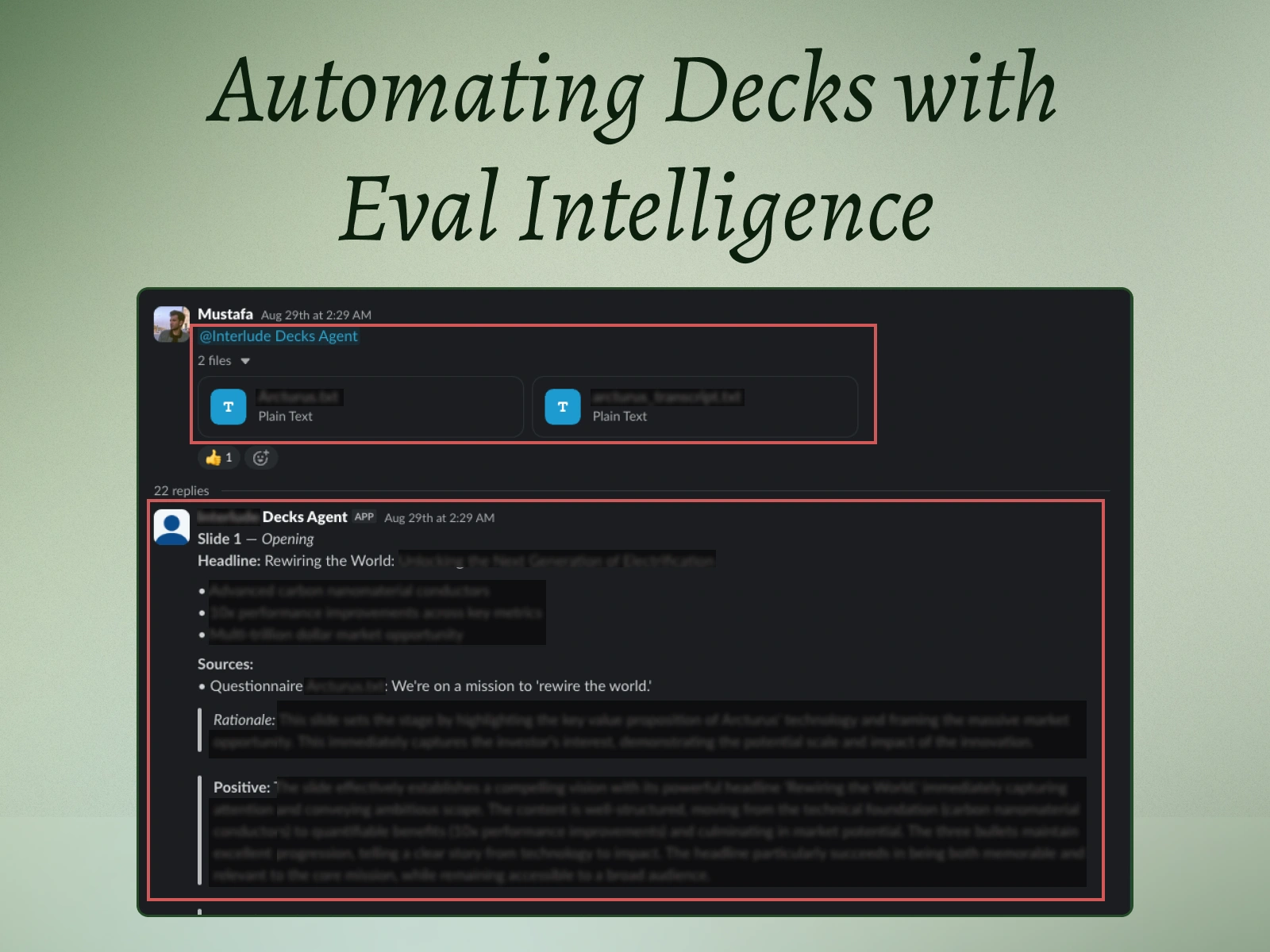 We helped Interlude automate their deck process with Claude-based agents, turning manual drafting into an AI-powered workflow