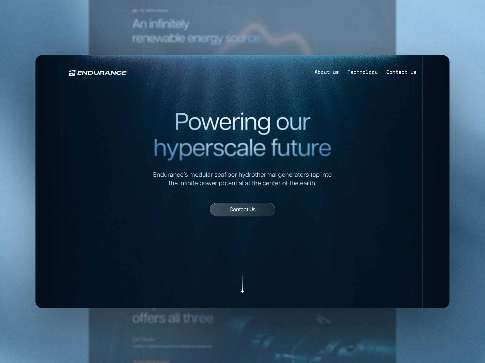 landing page in Framer, shaping a clear and compelling narrative around their vision: unlocking the near-infinite power potential beneath the ocean floor. The page highlights the urgent energy challenges for AI and data infrastructure, positions Endurance as