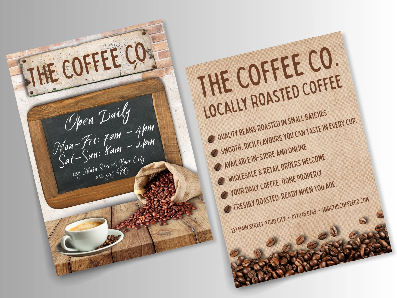 Delivered a clean, print-ready double-sided flyer showcasing layout, typography, and visual consistency for a coffee shop concept.