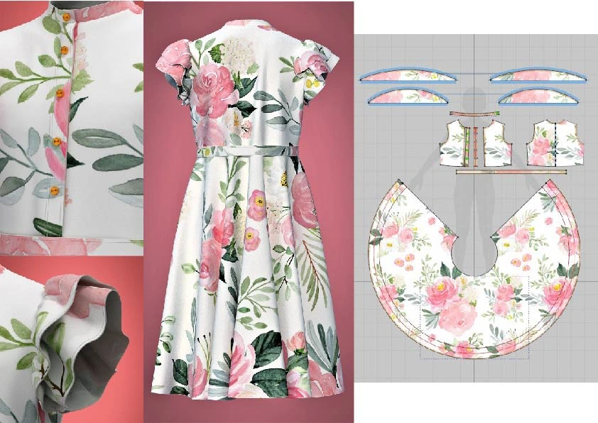 it was my first merchandising work. white dress making was very challenging because of print it was Flora print. second dress was easy.