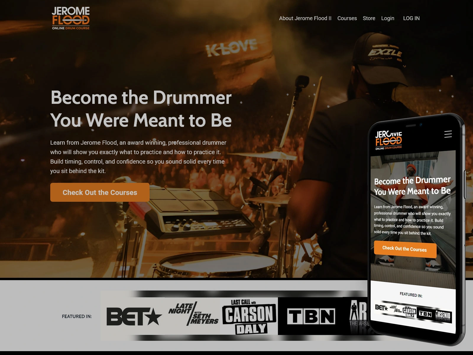 Client Jerome Flood II, award winning professional touring drummer.