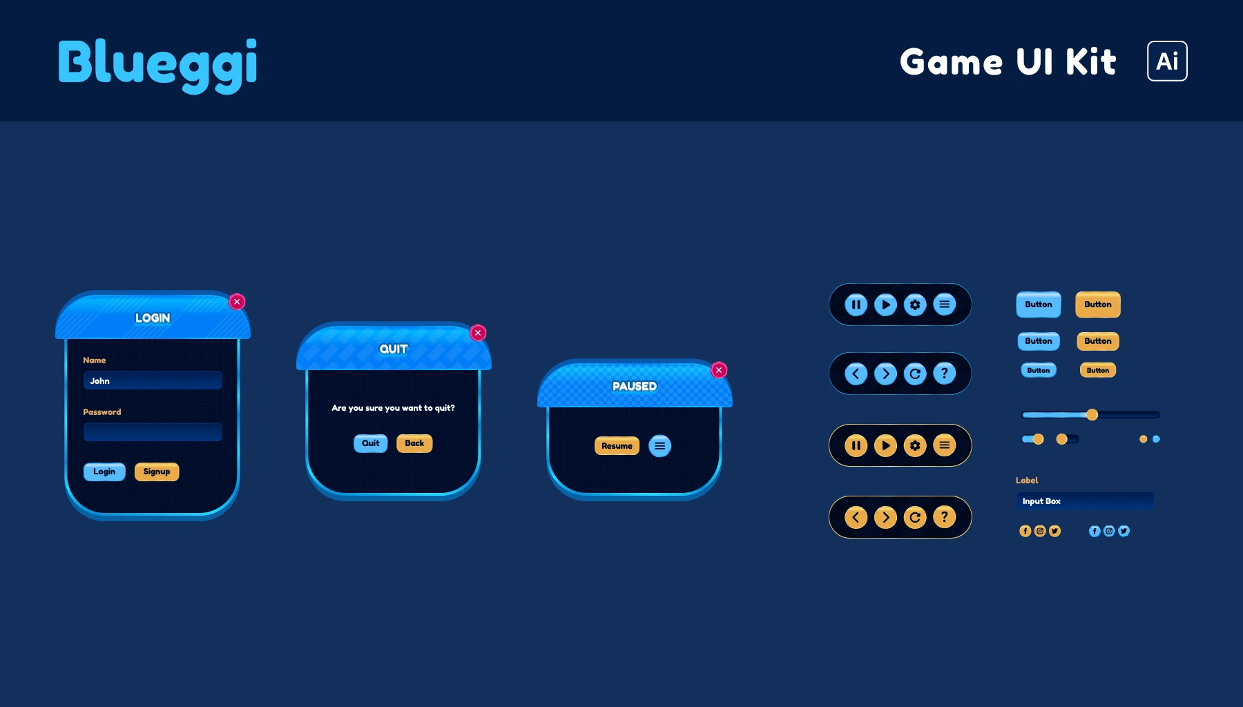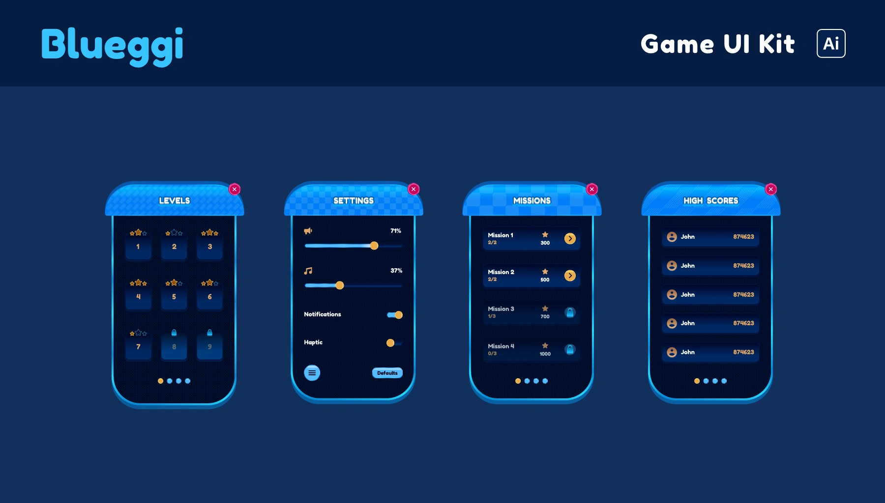 Another casual game UI Kit, this one's from '23. Since vector formats like .ai or .eps are common and ideal for this type of UIs, I had designed this in Adobe Illustrator. I designed this for my Creative Market shop, which sadly can't say I update often.