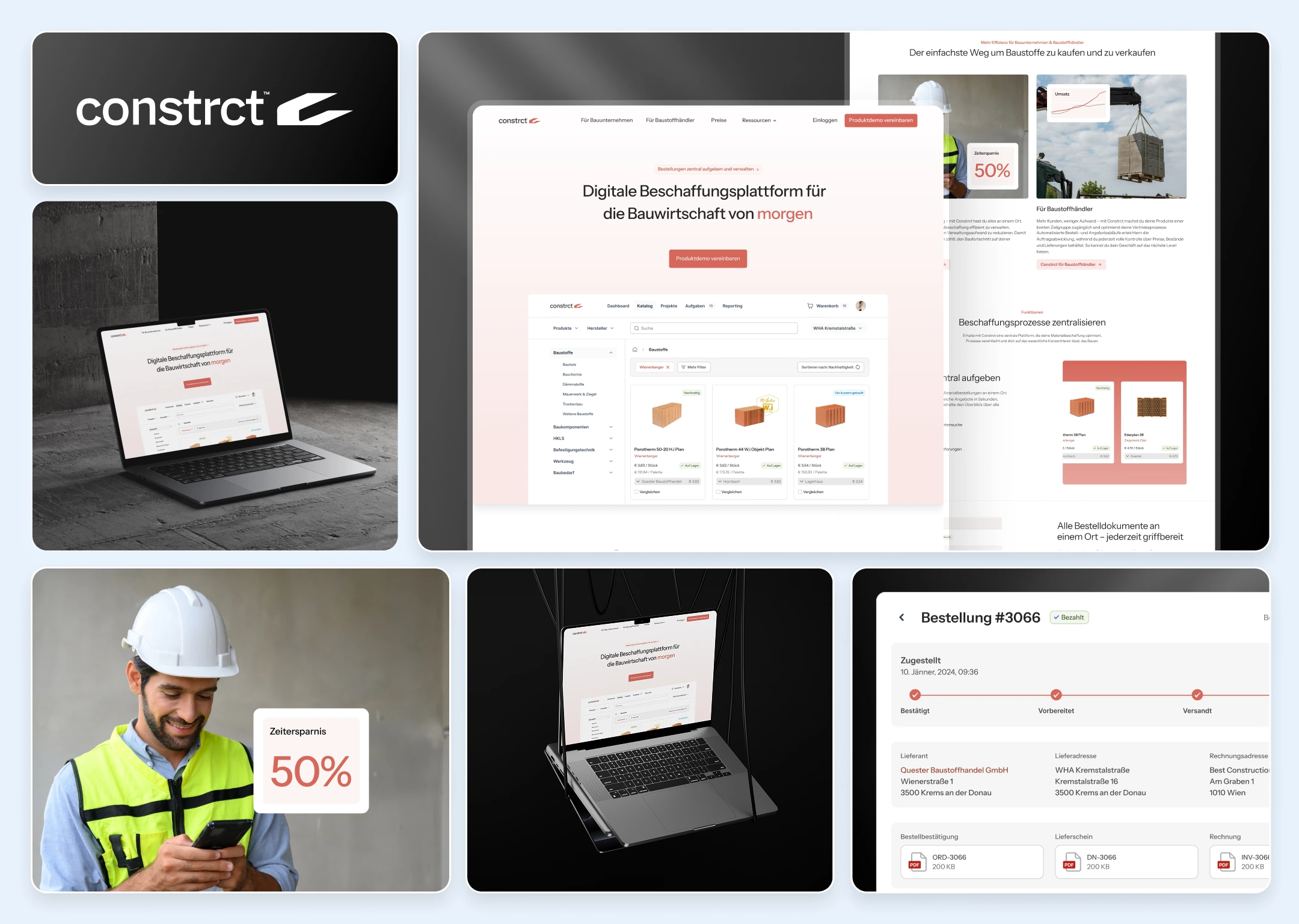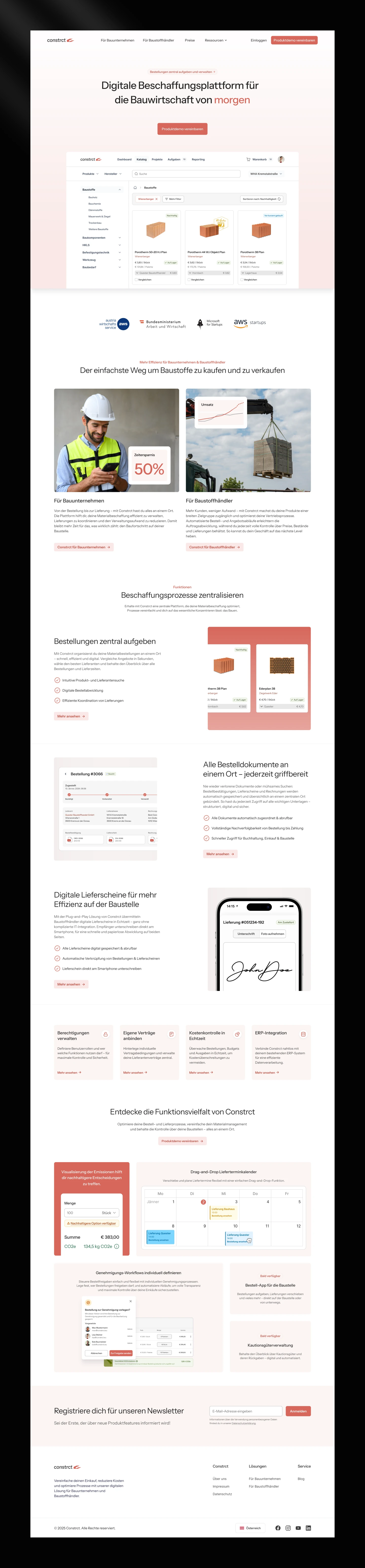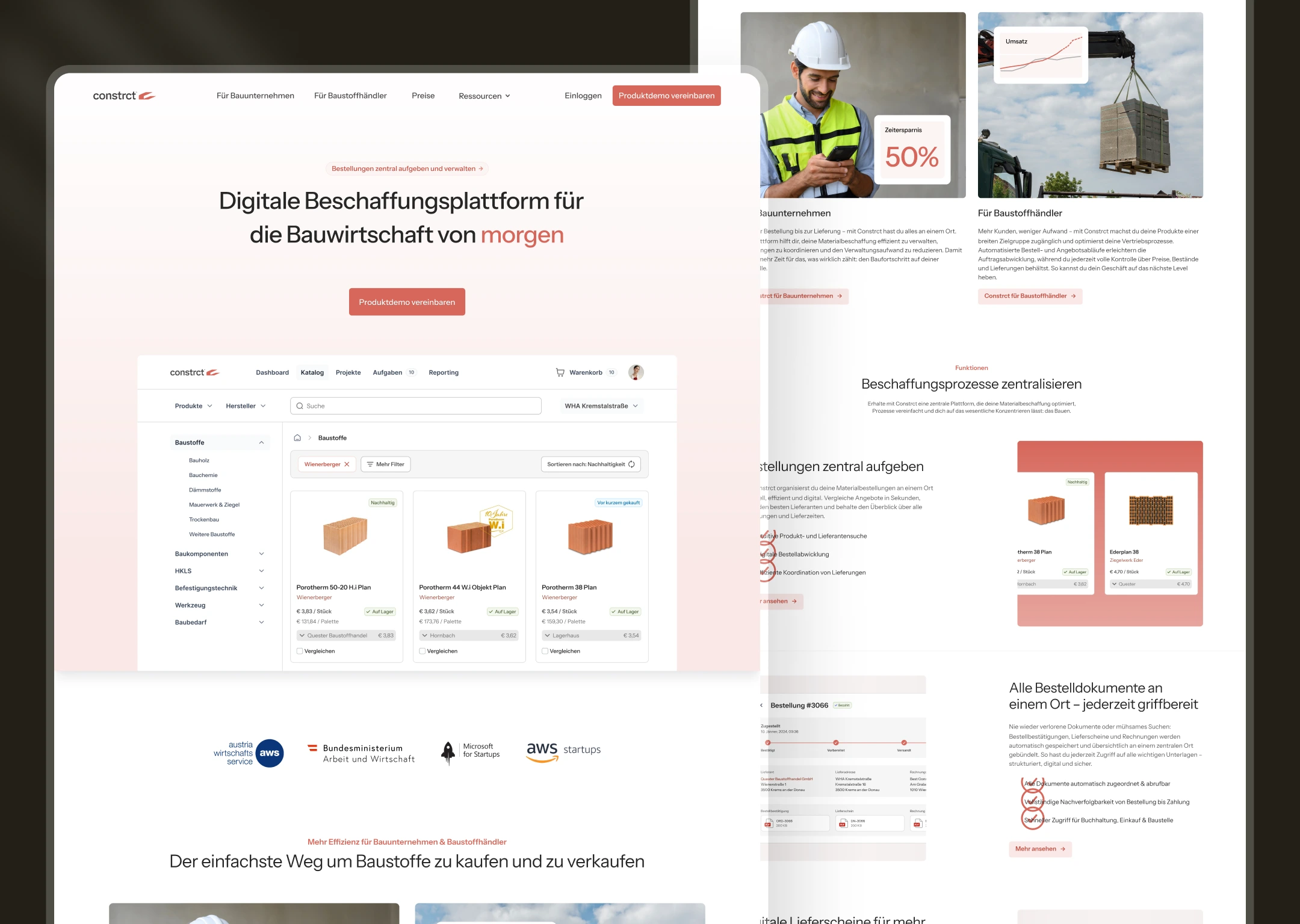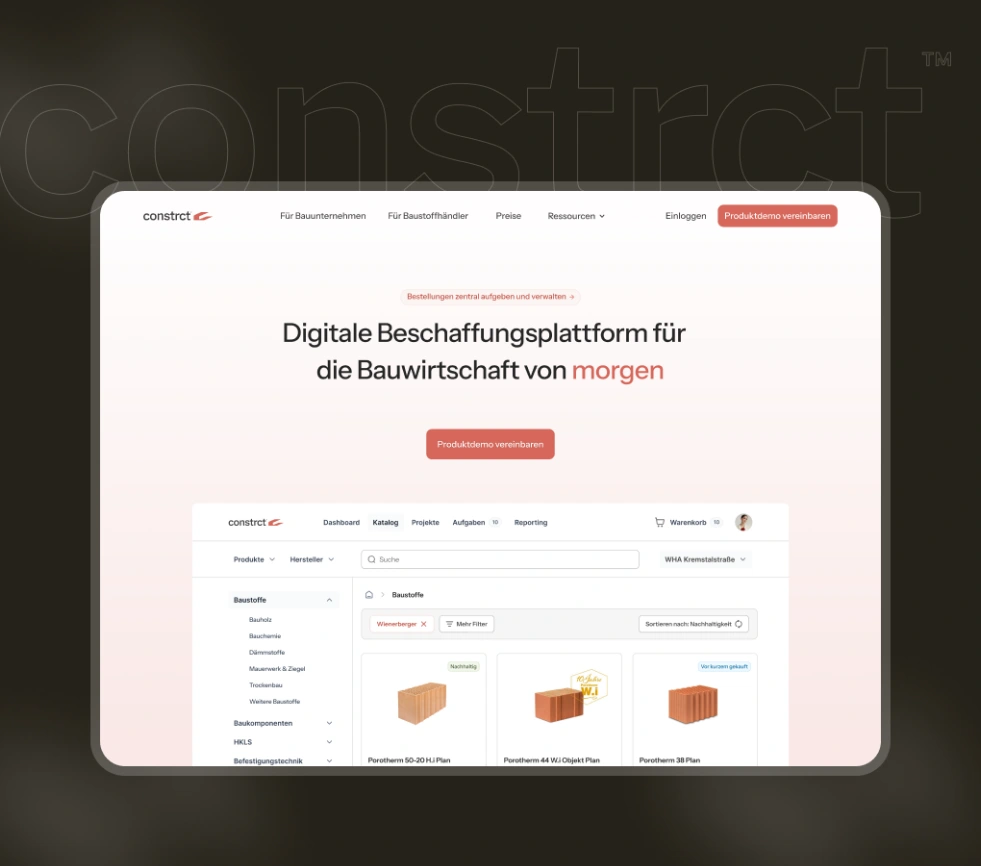 Constrct is a digital procurement platform transforming how the construction industry buys and sells building materials. The platform connects construction companies with building material suppliers, enabling centralized ordering, digital delivery notes, and real-time cost control—all while reducing paperwork and CO₂ emissions tracking.