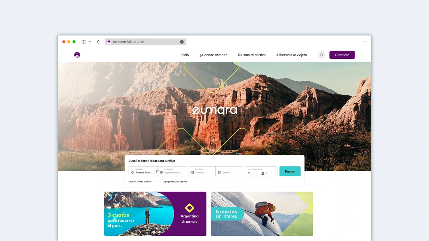 eumaraviajes.tur.ar). The design ensures the aesthetic principles—local imagery, trusted color palette, and clear typography—are integrated into a high-performance user experience. The clean, accessible interface is strategically designed to simplify the