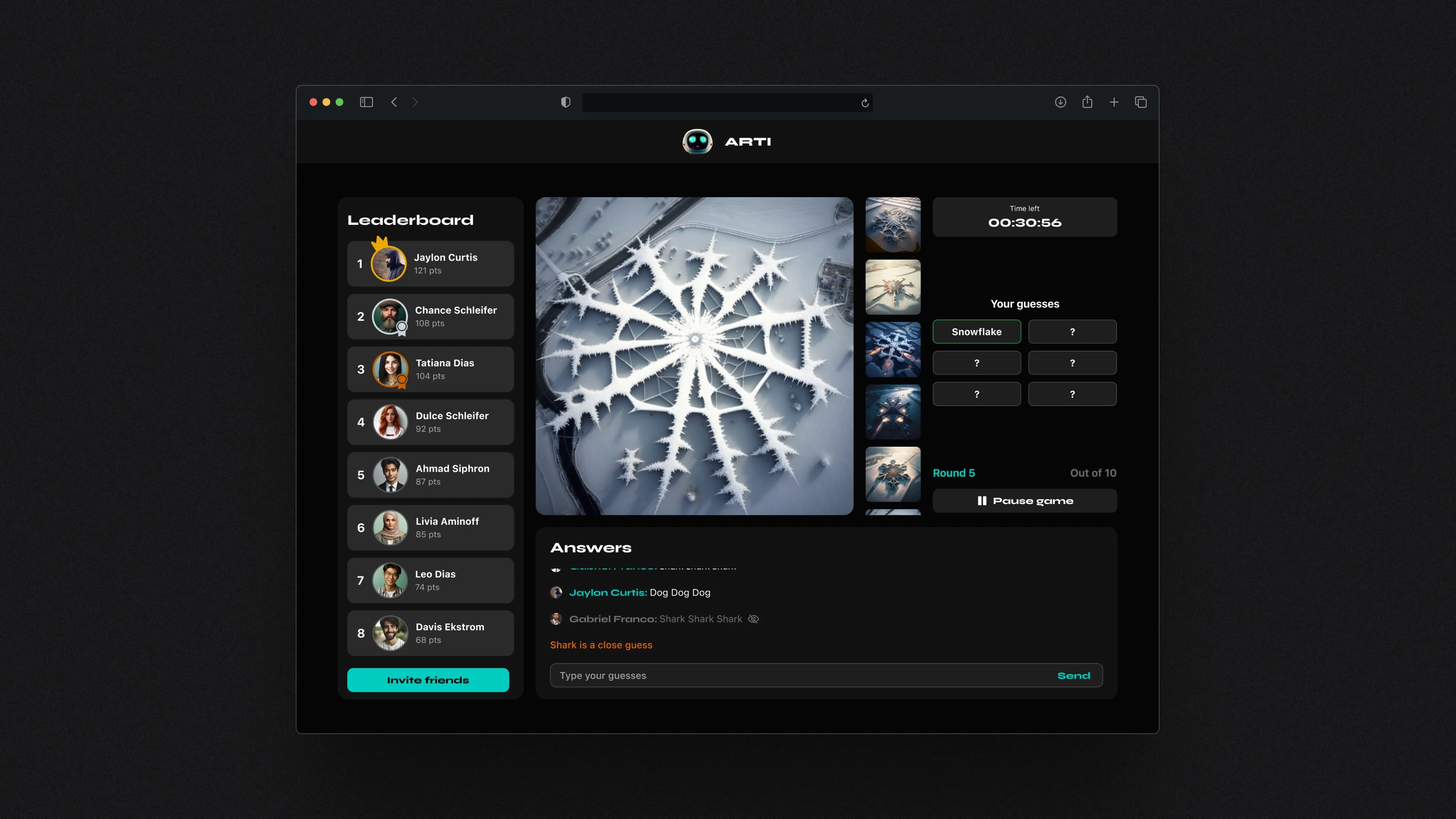 Originally, Arti was developed as a chatbot available on WhatsApp, Messenger, Telegram, and Instagram. Eventually, The daily game started to expand, and I was responsible for ensuring great design for these expansions, such as websites, apps, and new game modes. I also designed some parts of the brand and mockups.
