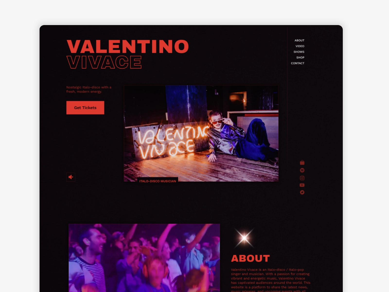 After watching that performance, I wanted to reimagine what his website could look like. The idea was to design a digital space that reflects his neon-driven style and live energy, while also giving fans a simple way to explore his music, videos, shows, and merch.