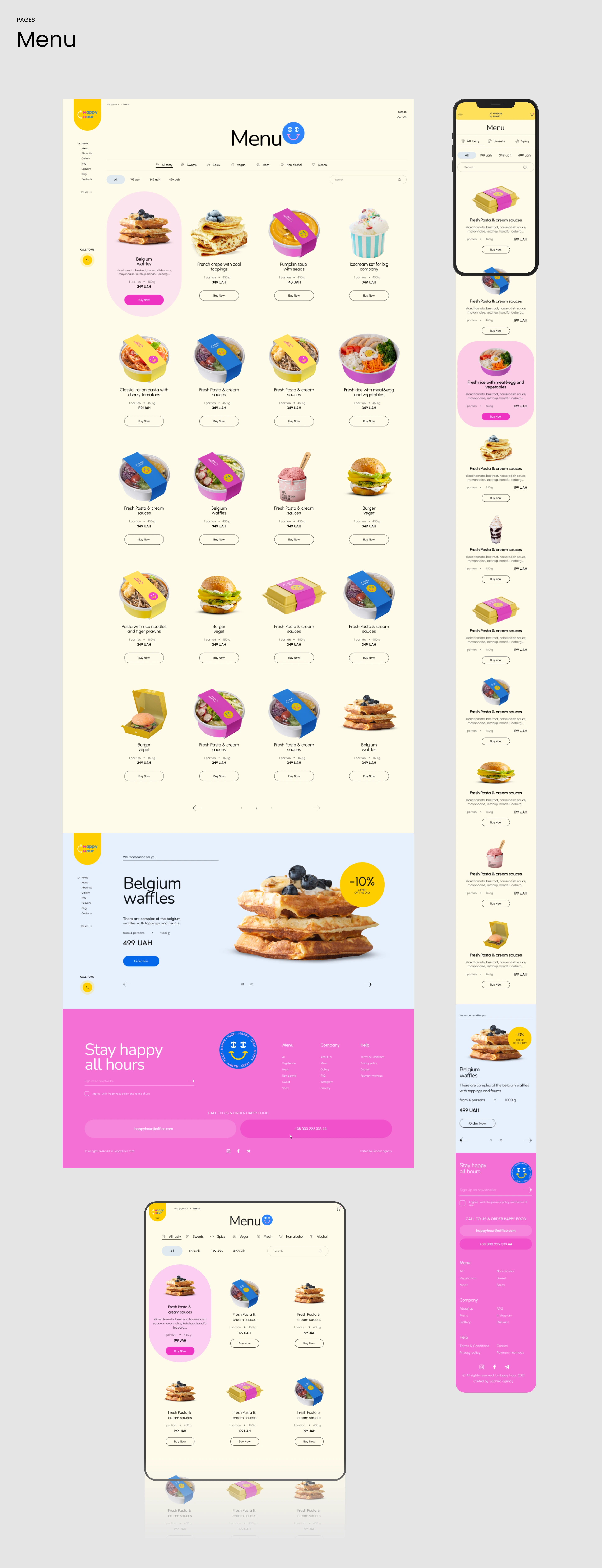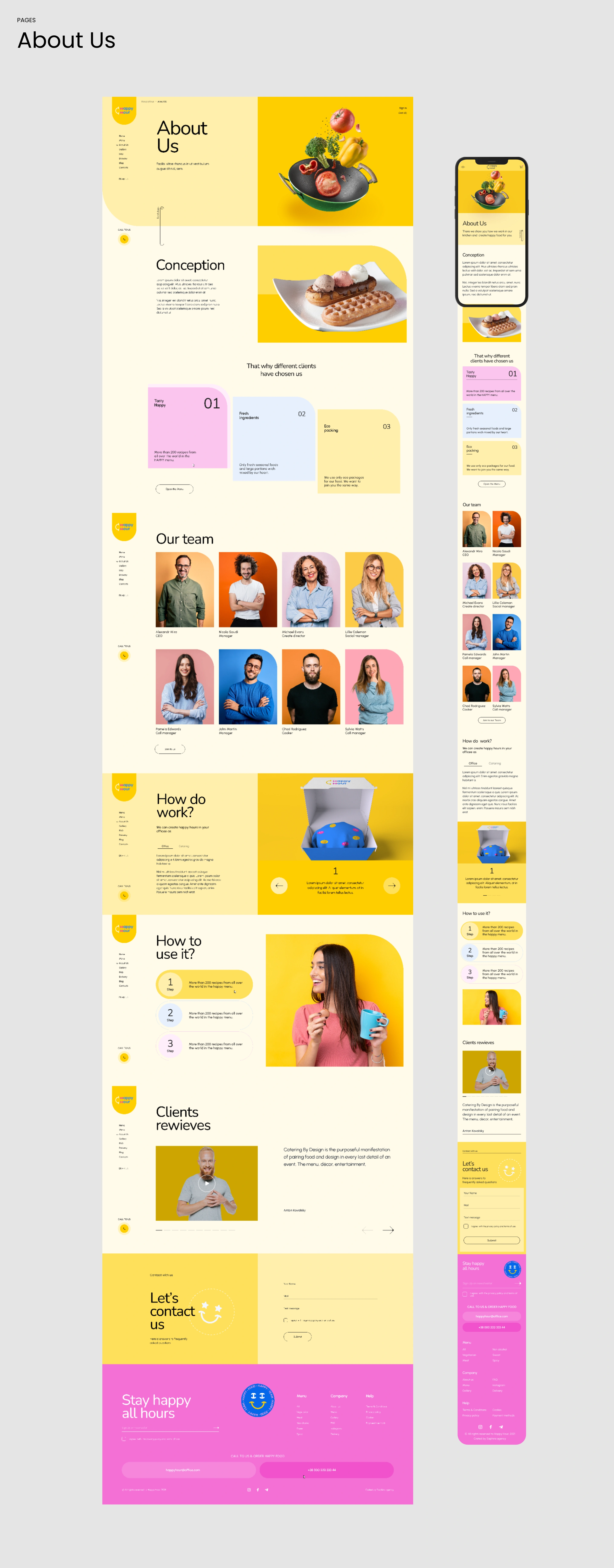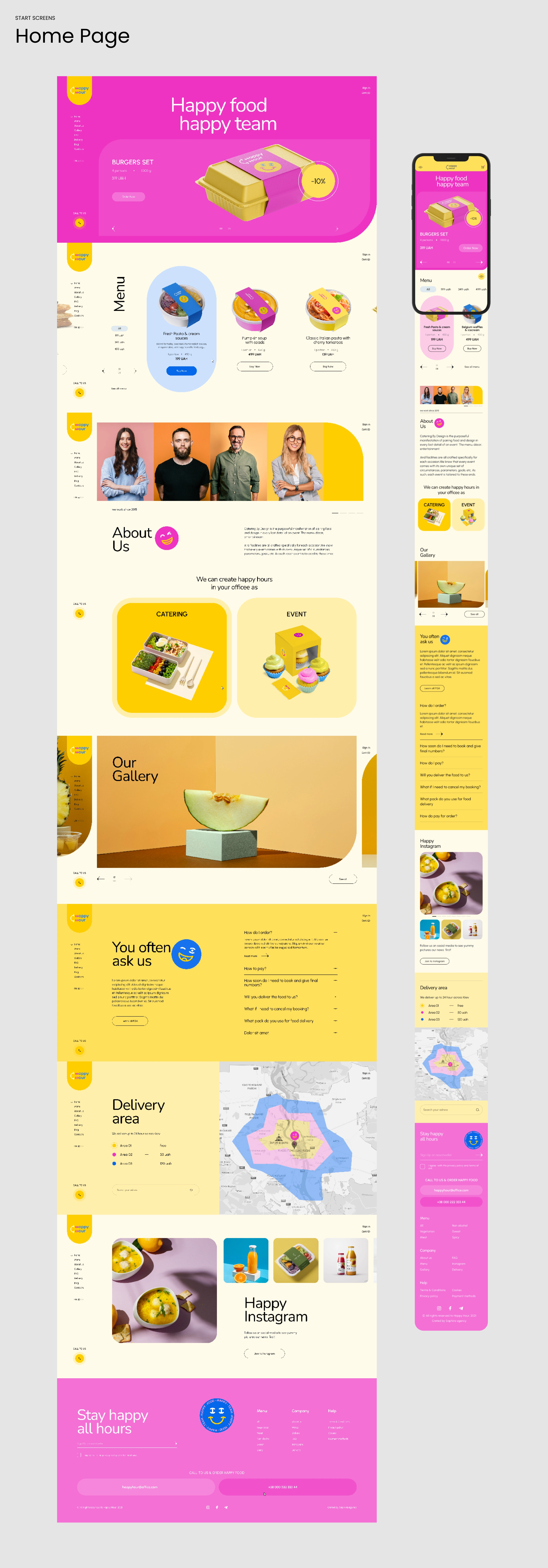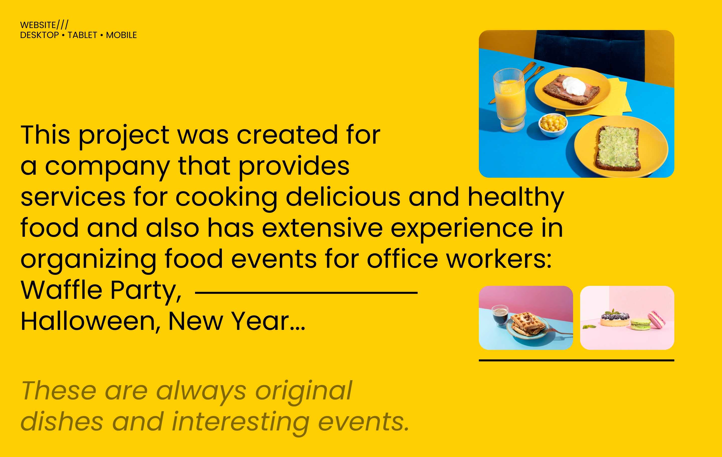 Website for food delivery service specializing in healthy meals and corporate office events. Full-cycle design from branding to responsive UI.