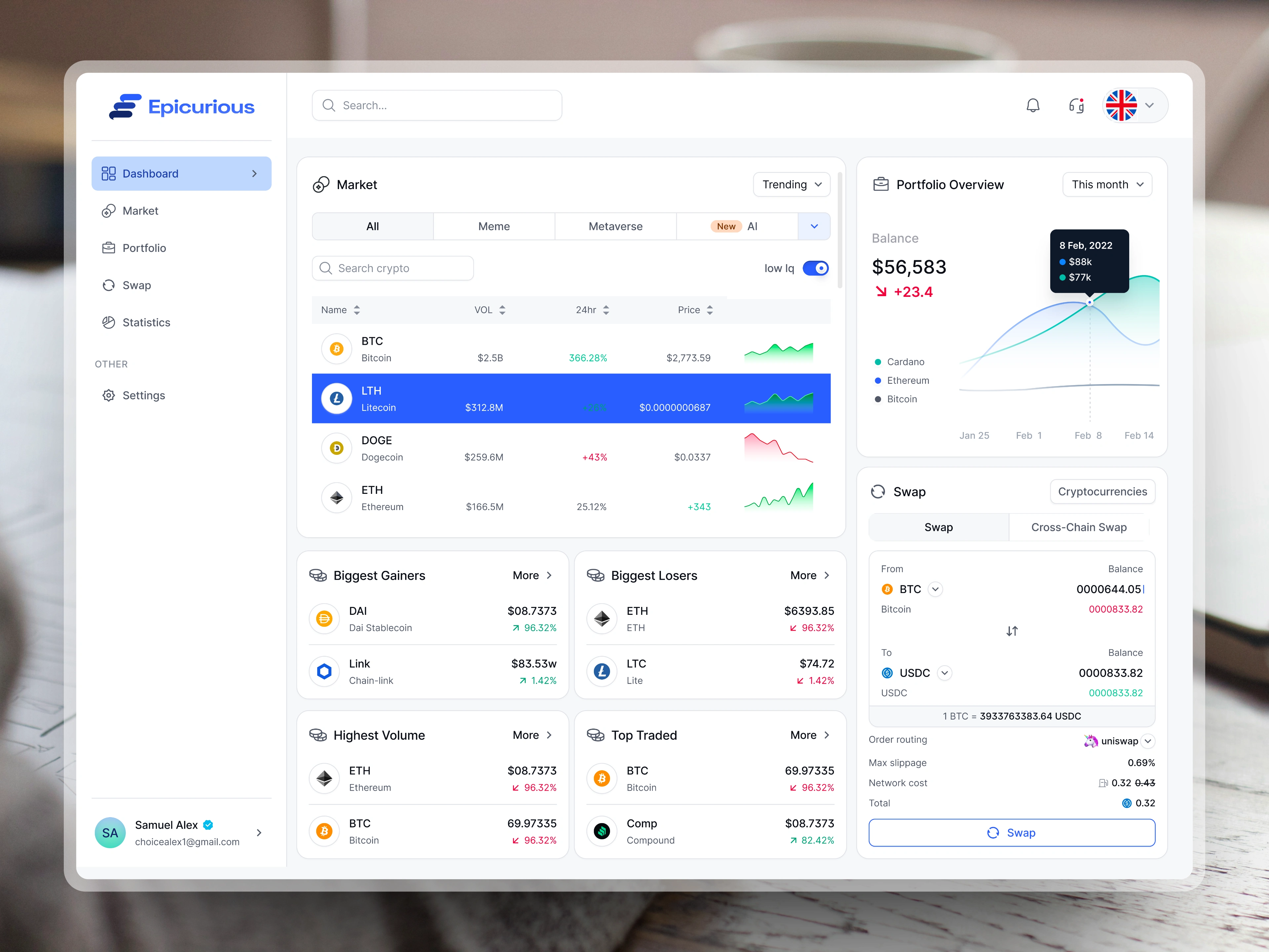 Designed a crypto trading dashboard user interface