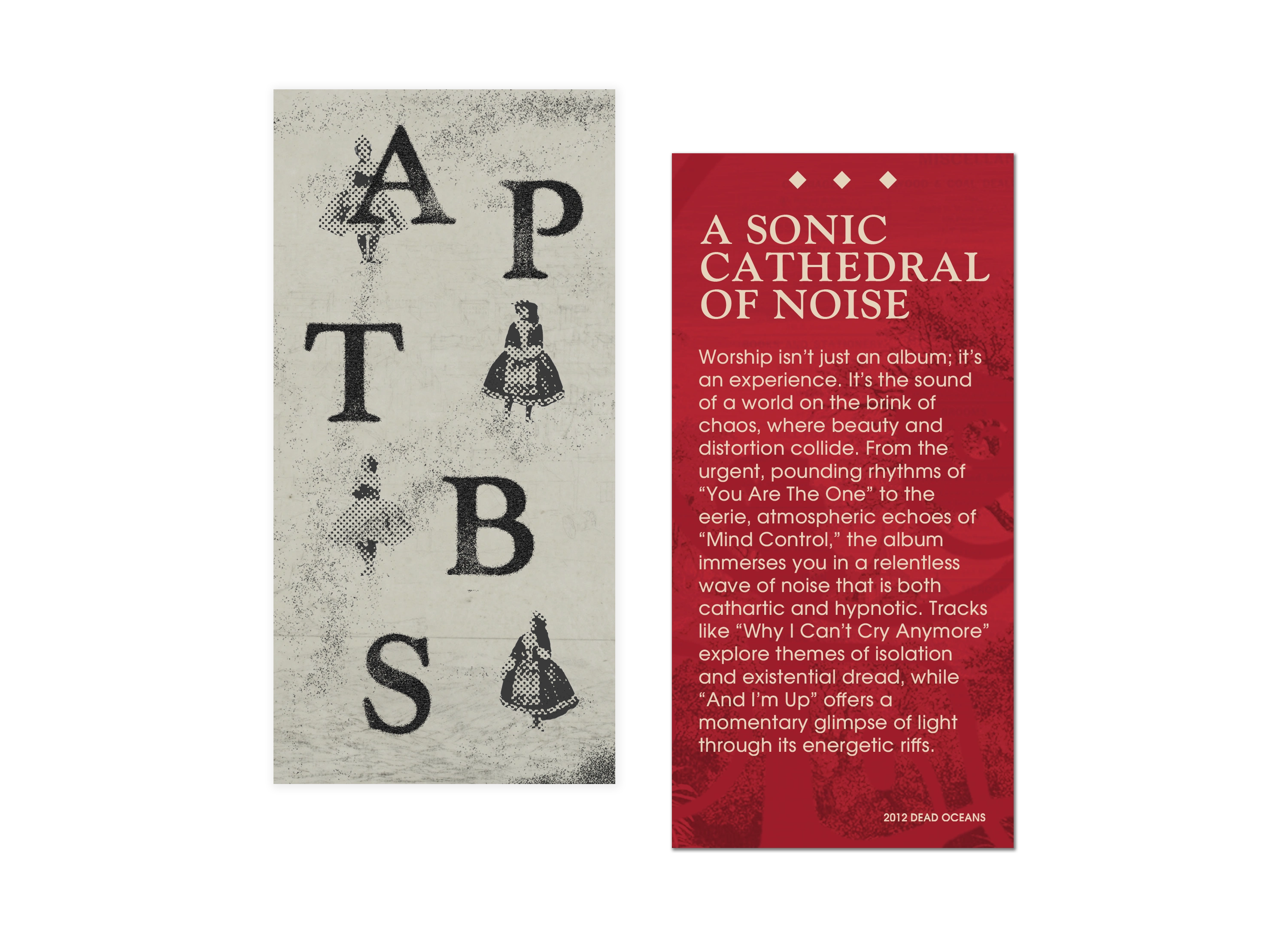 a visual exploration of an album ‘Worship’ by A Place To Bury Strangers — a noisy, distorted, and visceral album that I set out to translate into graphic form.