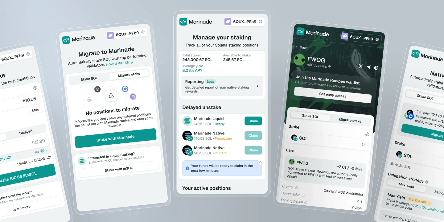 Marinade stands out in the world of DeFi. While most apps overwhelm users with complex dashboards, charts, and endless numbers, Marinade takes a refreshingly different approach with its simplicity. Originally designed as a mobile-first app, I aimed to enhance this streamlined experience even further.