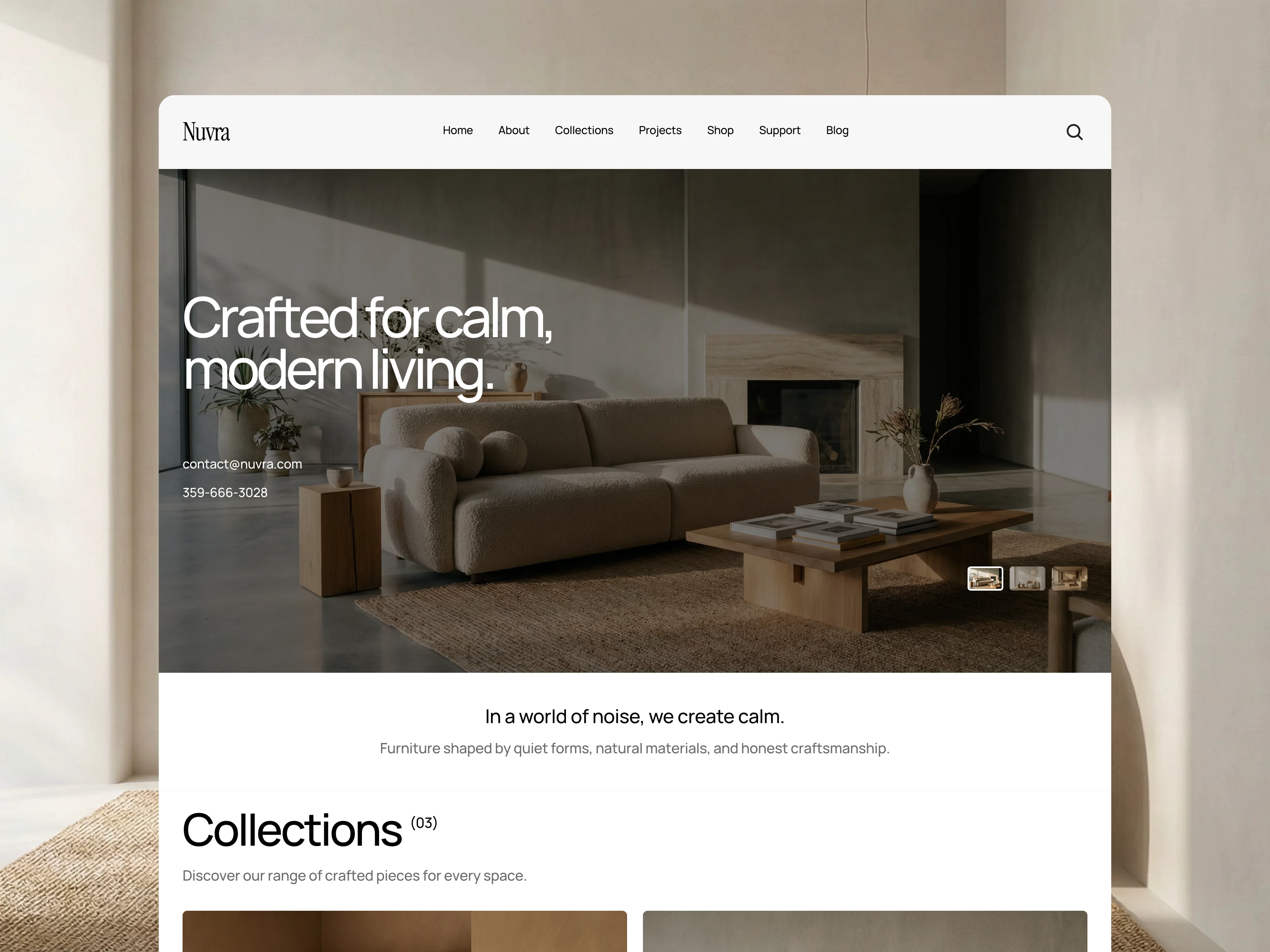 Built on a foundation of balanced typography and "calm geometry," Nuvra provides a polished, production-ready environment from the first scroll. It features a dual-engine structure: CMS-powered collections for product management and visual portfolio grids for project showcases all optimized for SEO, accessibility, and high-performance loading.