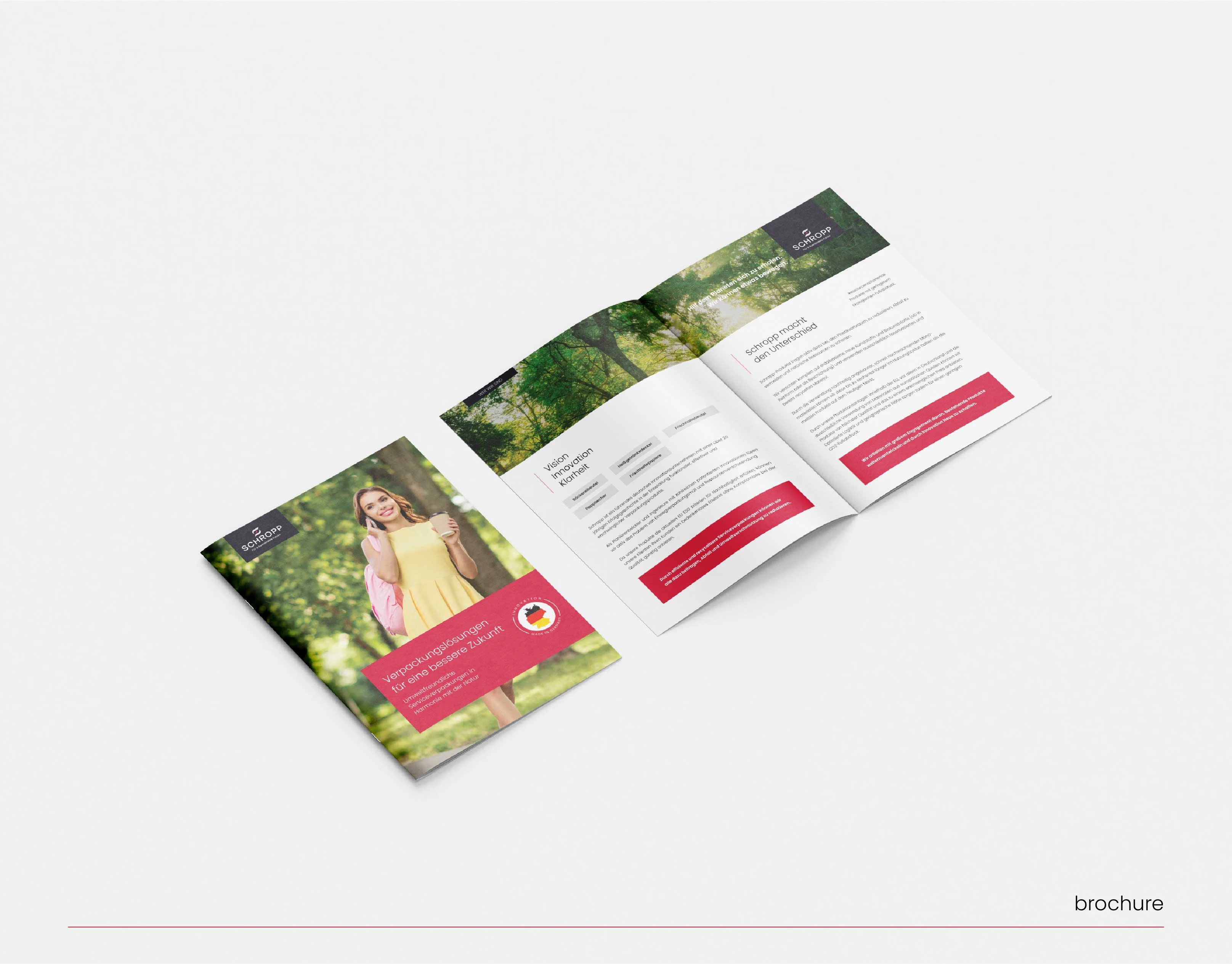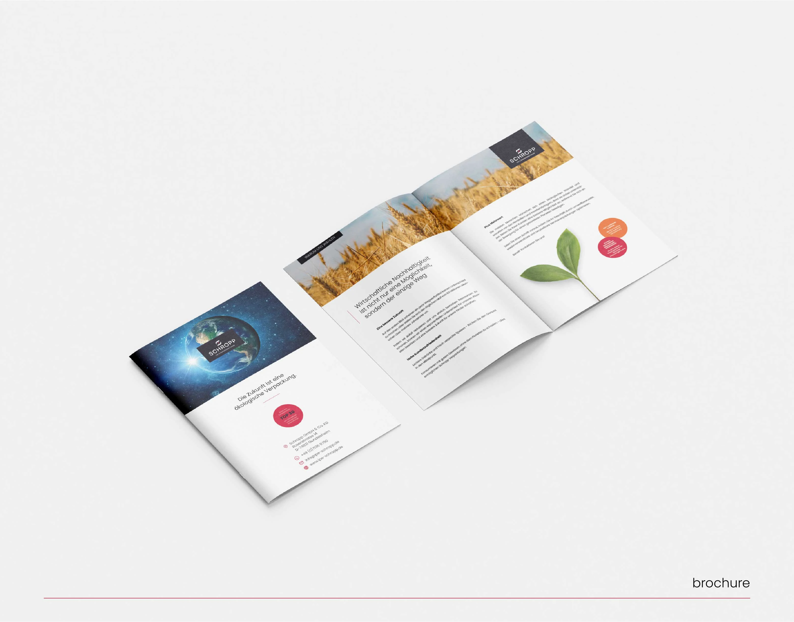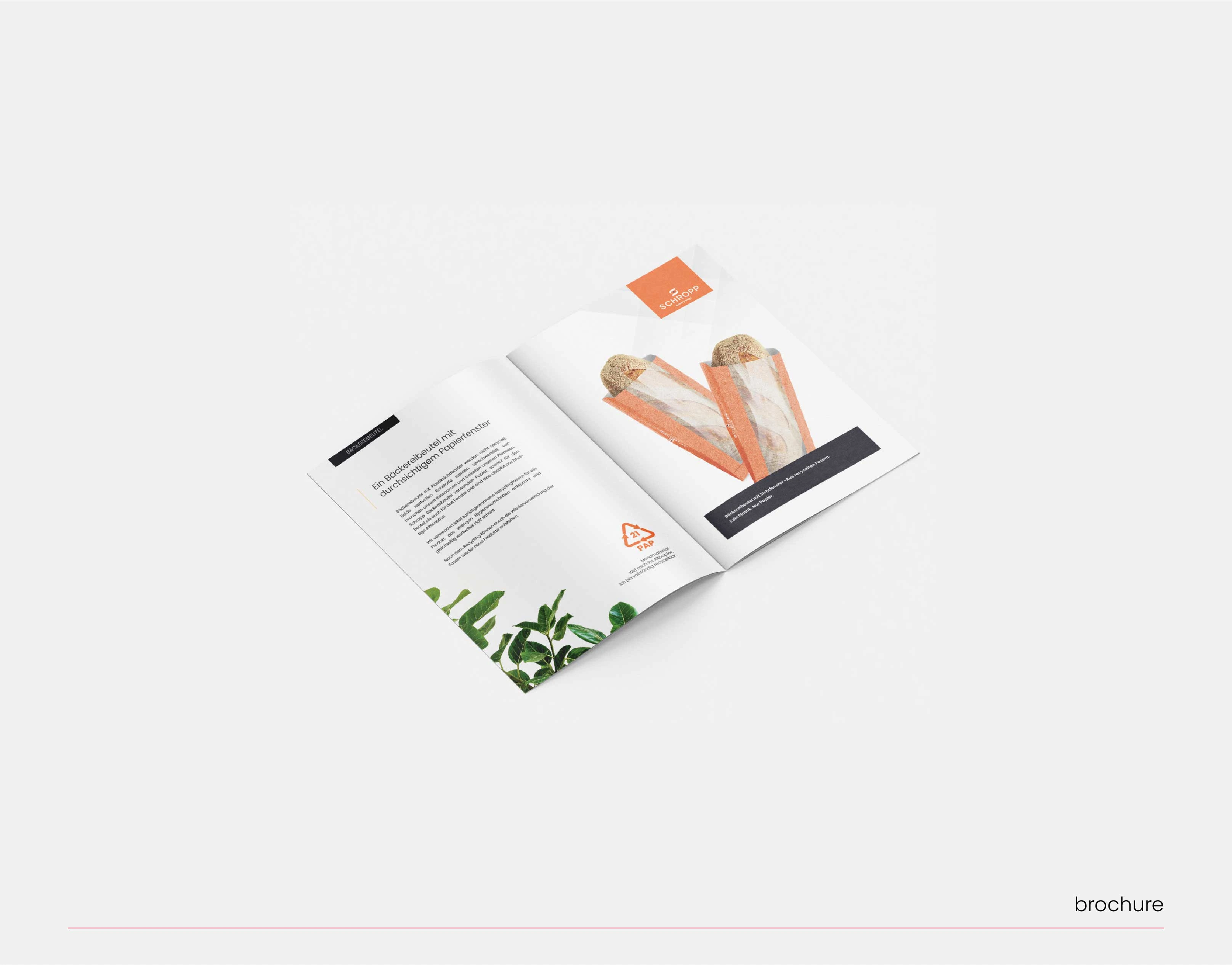 Rebranded Schropp, a German sustainable manufacturer, from logo to full system. Warm colors highlight their inventive approach to sustainable packaging.