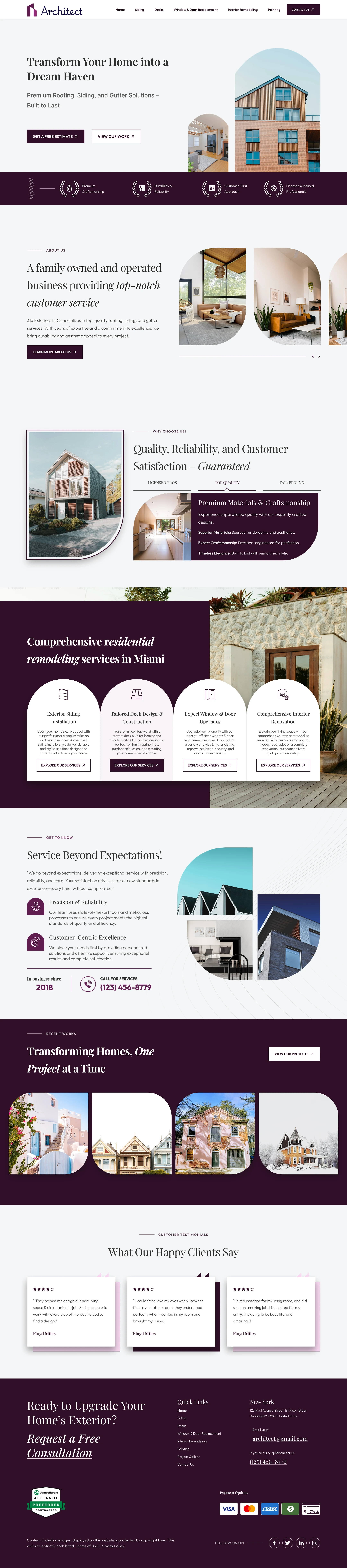 I created a fresh redesign concept for Roofing & Home Exterior Service, a Miami-based roofing and exterior home services company. The goal was to elevate their digital presence with a clean, conversion-focused layout while maintaining trust and professionalism.
