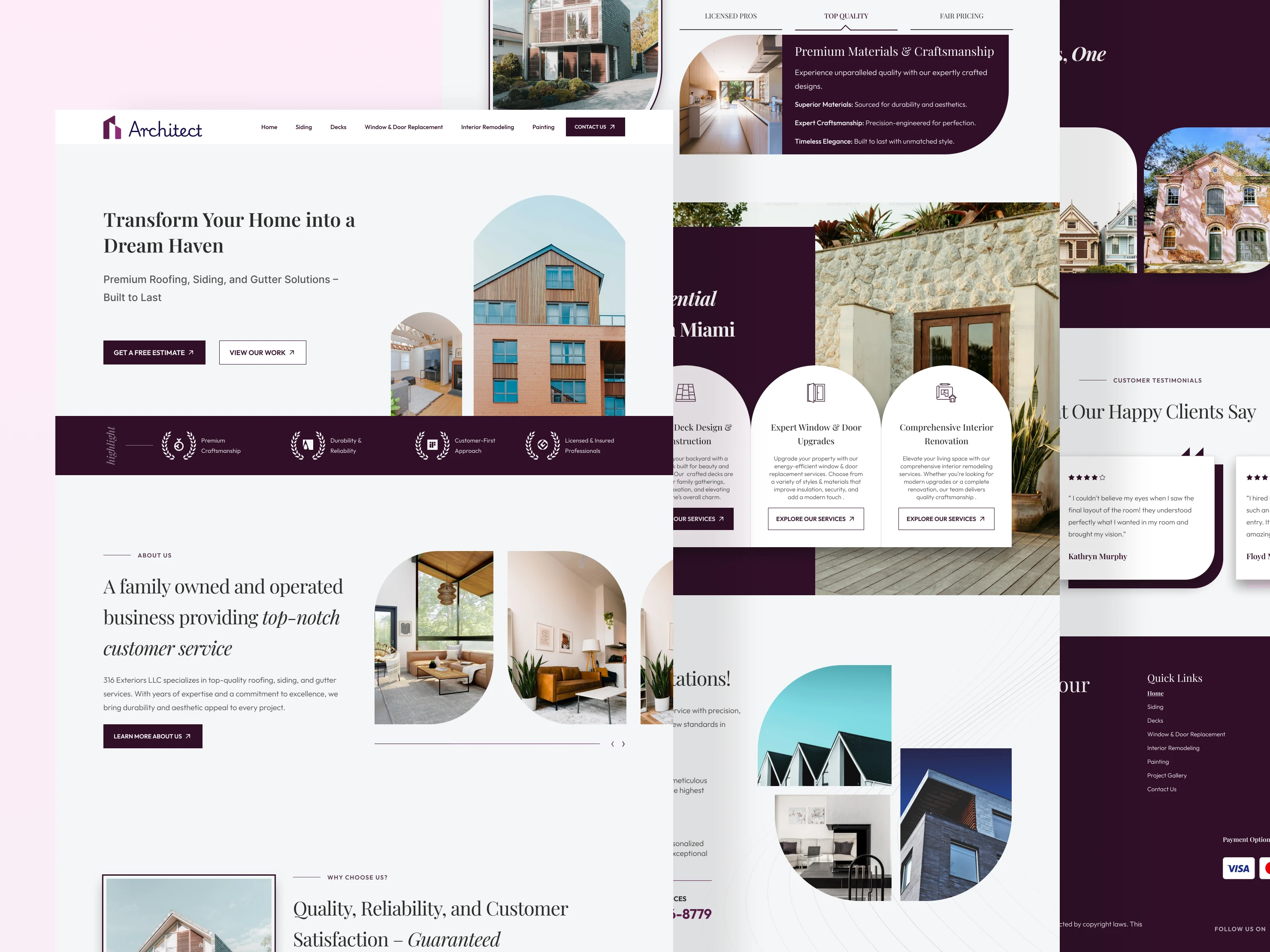 Redesign concept for a roofing-exterior home services company. Elevate their digital presence with a clean, conversion-focused layout.