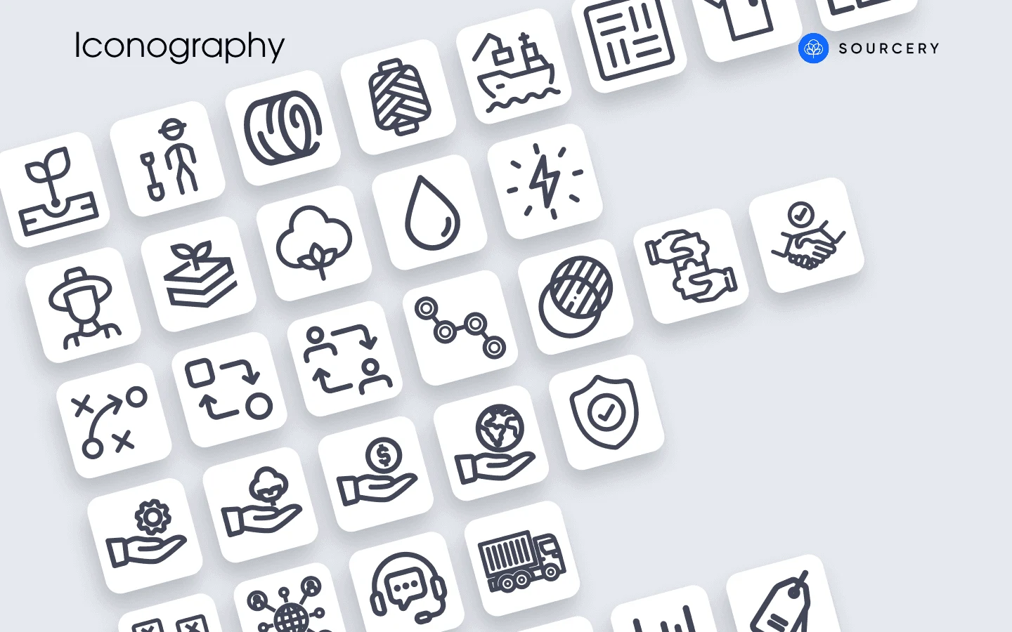 As part of the branding project, a set of icons was designed for use in graphs, infographics, and future presentation templates. Inspired by the geometric lines of The Sourcery’s logo, the icons feature thick, monochromatic outlines, maintaining a simplified and cohesive look. These elements were also included in the design system, ensuring versatility and consistency in future applications.