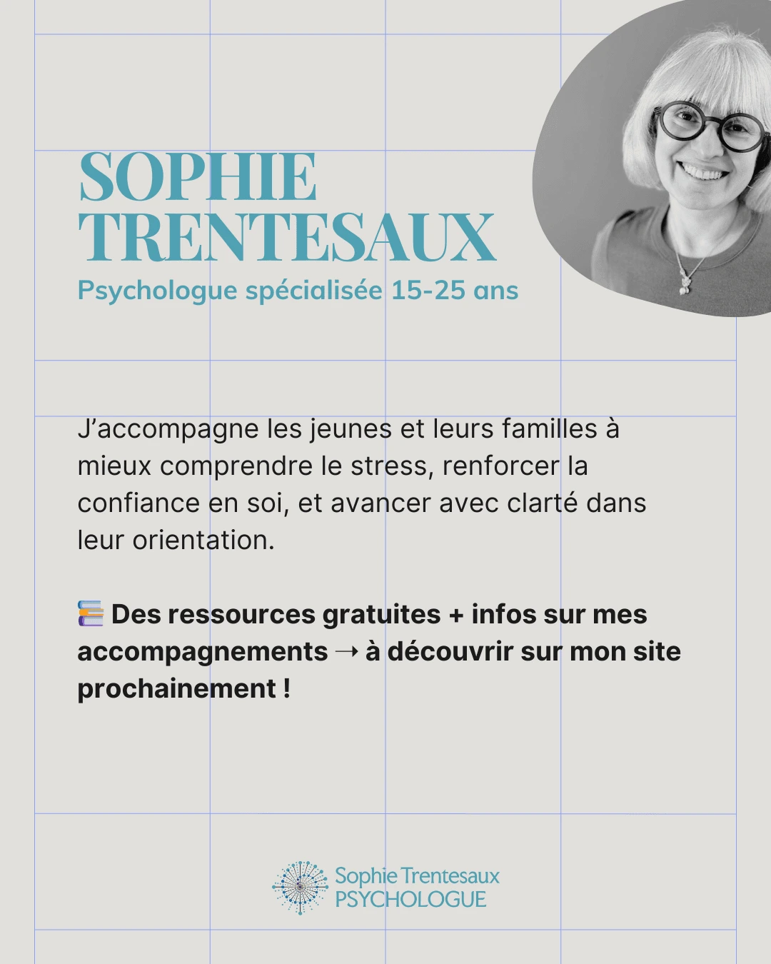 Sophie Trentesaux is a psychologist specializing in supporting teenagers, young adults, and their parents. Her compassionate approach — focused on active listening and emotional autonomy — is tailored to individuals going through transitional phases, often facing identity questions, academic pressure, or stress-related challenges.
