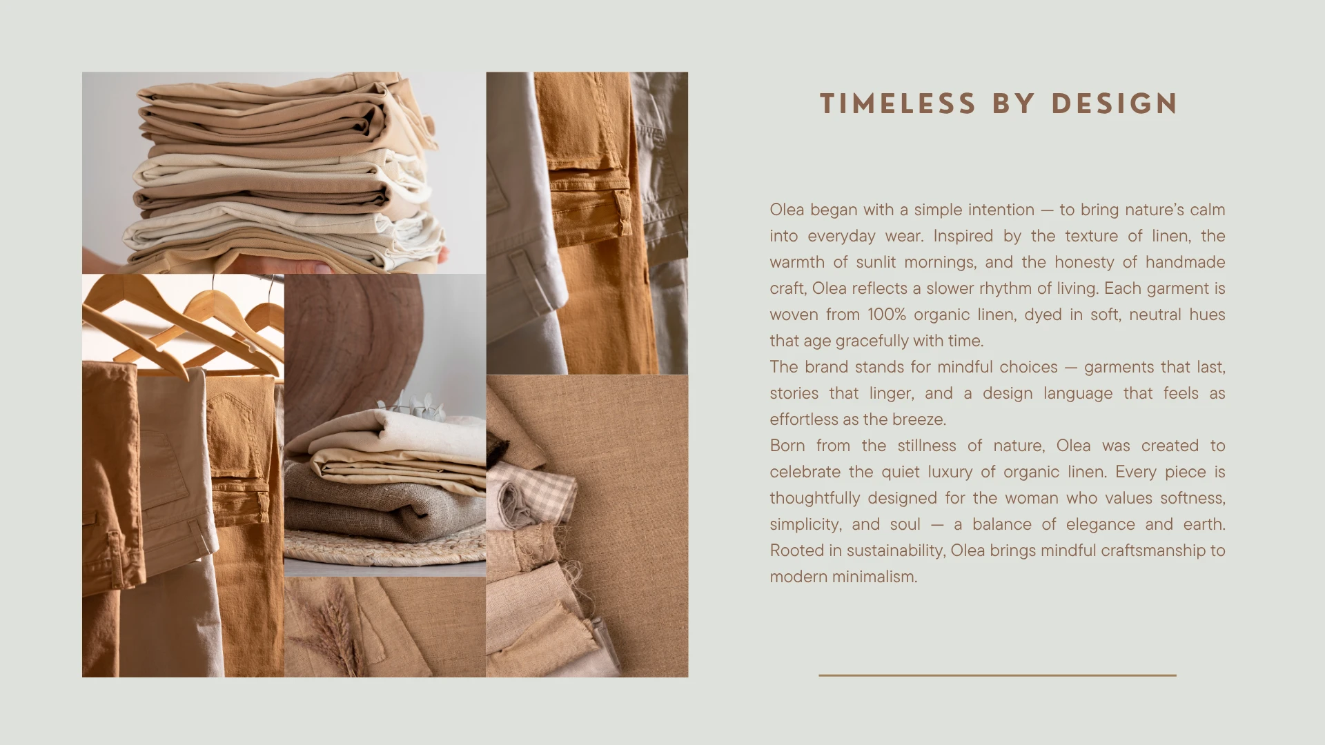 Olea is an organic linen dress brand inspired by the purity of nature and the elegance of simplicity.