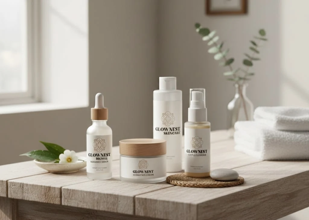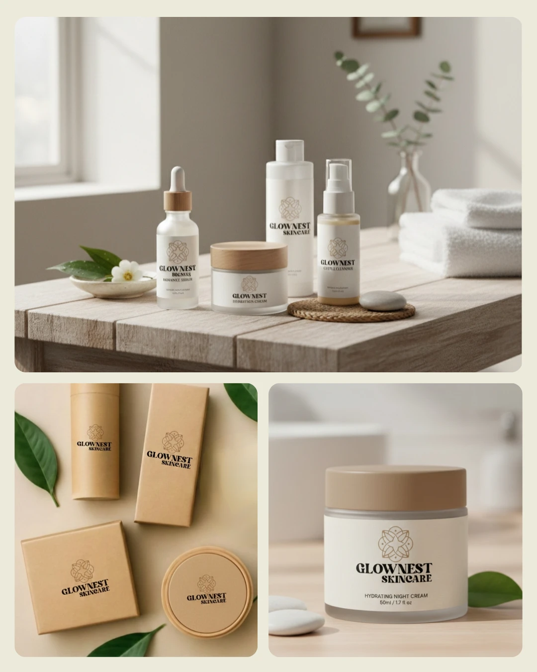 Glownest Skincare is a fictional skincare brand created to represent natural beauty, gentle care, and a fresh glow. The project focuses on crafting a modern brand identity that communicates trust, purity, and premium skincare experience. My goal was to design a brand that feels clean, warm, and naturally luxurious.