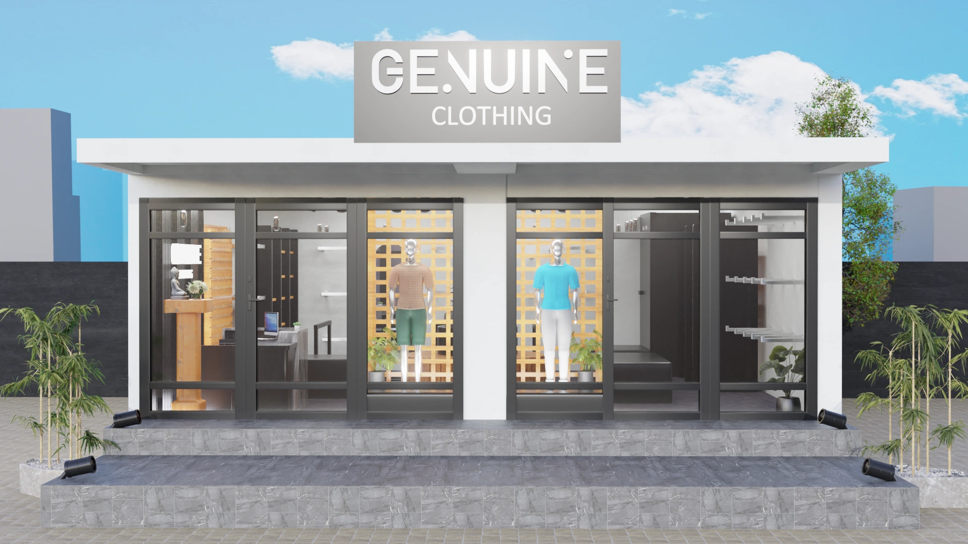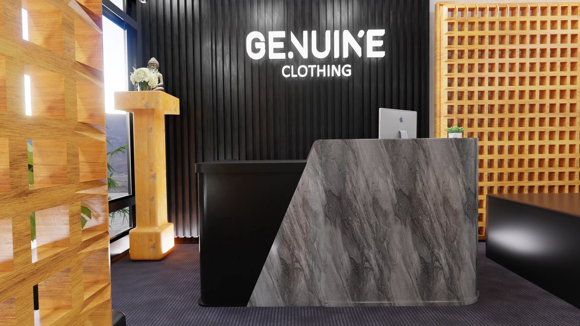 This project involves the complete interior and exterior concept design and 3D visualization for "GENUINE CLOTHING," a modern retail space specializing in contemporary apparel. The design challenge was to create a brand environment that feels premium, minimalist, and inviting, effectively blending industrial elements with warm, natural textures. Key features include a bold black and white color palette, strategic lighting design, and the use of natural wood textures to introduce warmth and visual interest. The final deliverables were a set of high-fidelity 3D renderings that convey the store's complete look and feel prior to construction.