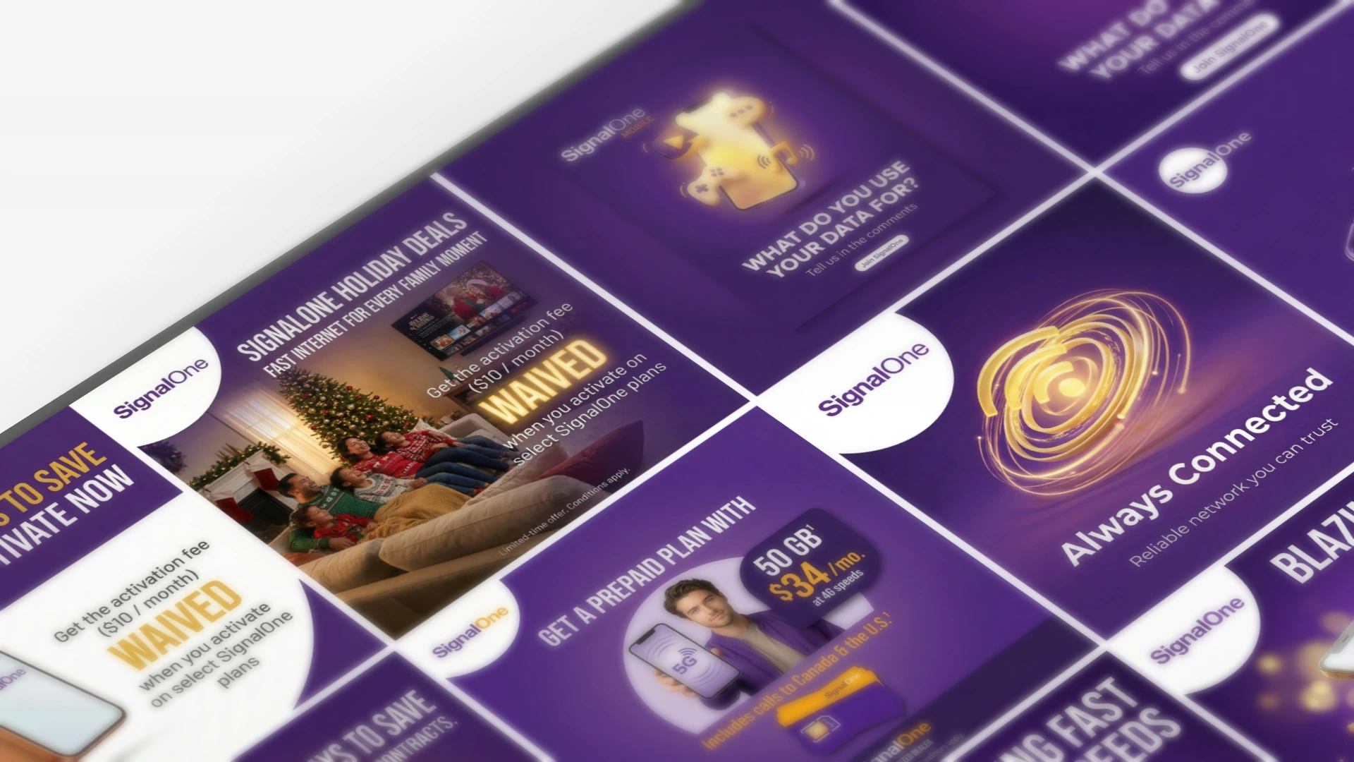 Developed visually engaging social media ads for Signal One, combining 3D illustrations,