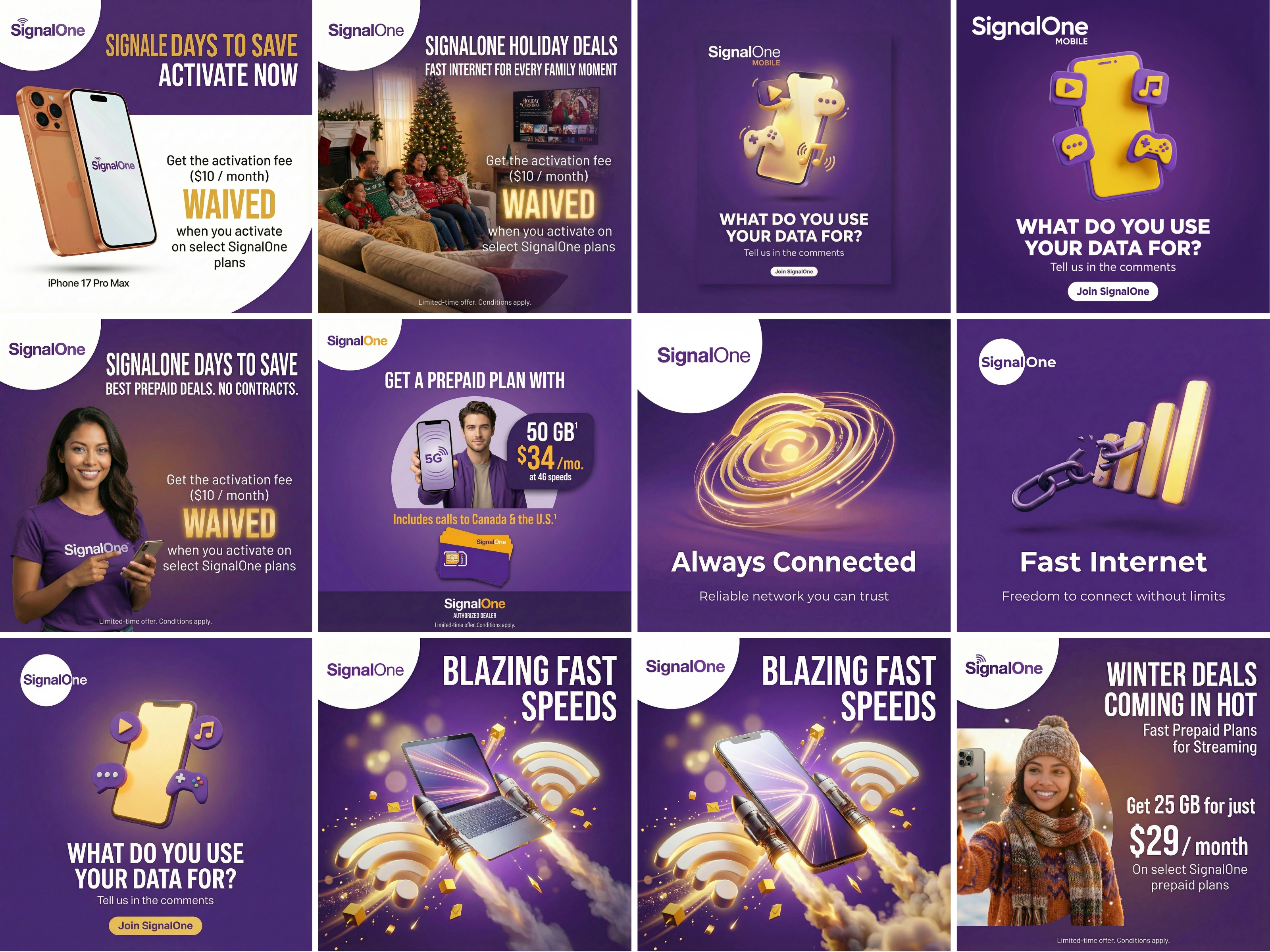 Designed a cohesive set of high-impact social media creatives for Signal One, focusing on bold visuals, clear messaging, and strong brand consistency. The designs were optimized for engagement, promotions, and digital campaigns across multiple platforms.