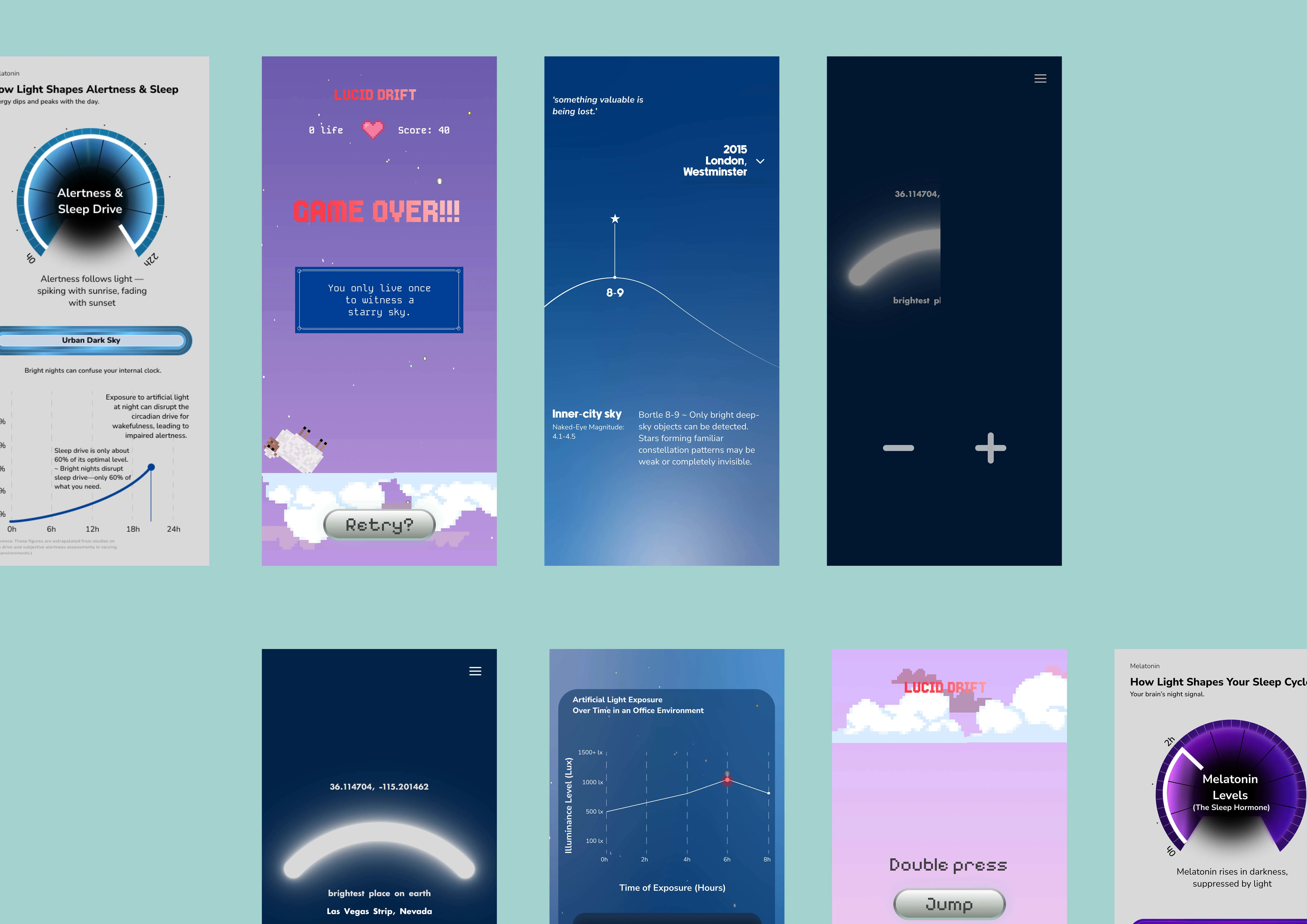Lux Systems is a digital platform, merging environmental science and interactive design to reveal how light pollution disrupts human biology. The project uses real data, intuitive metaphors, and dynamic interfaces to translate circadian rhythm science into a seamless, educational user experience.