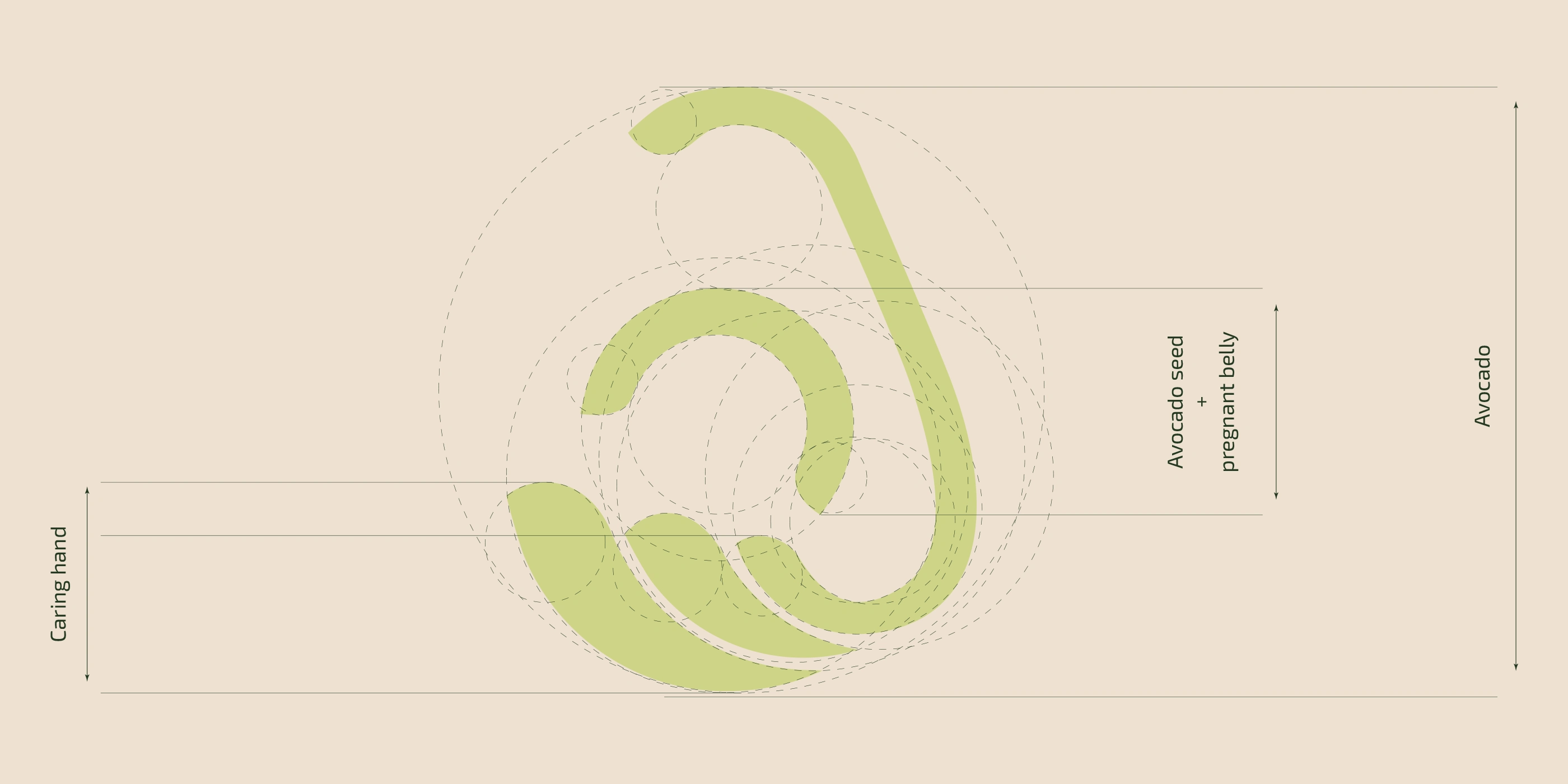 The abstract hand cradling the avocado seed symbolizes a mother’s belly, embodying care, femininity, and gentleness - qualities central to the clinic’s mission.