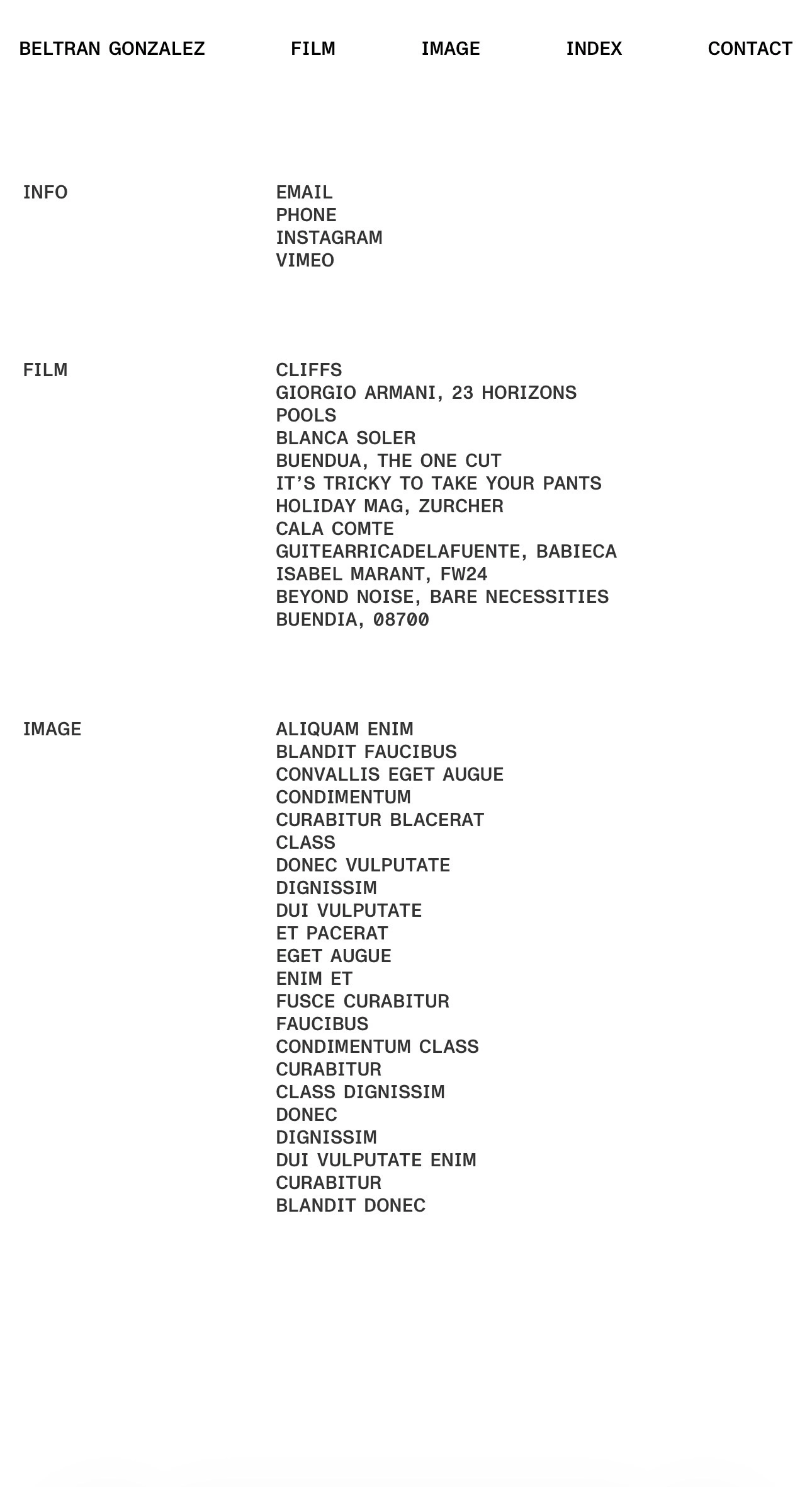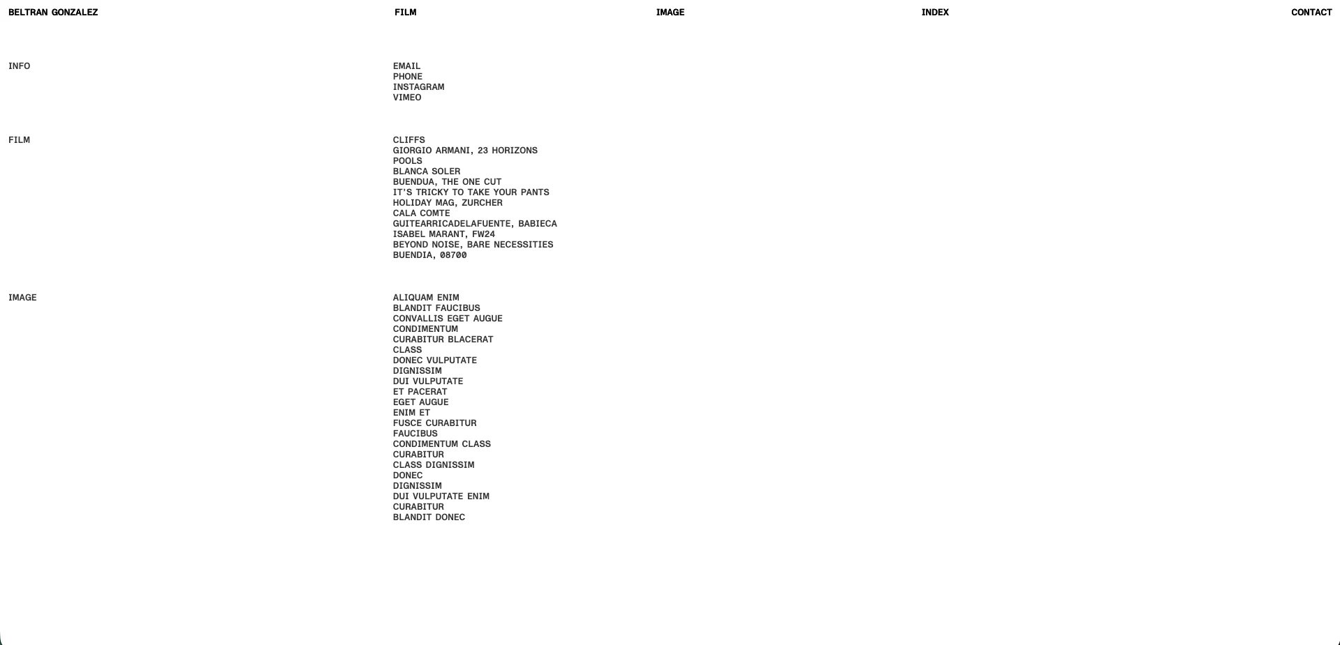 Minimalist, modern Webflow website from scratch for Spanish filmmaker & photographer Beltrán González. Showcase his poetic visual portfolio in immersive style.