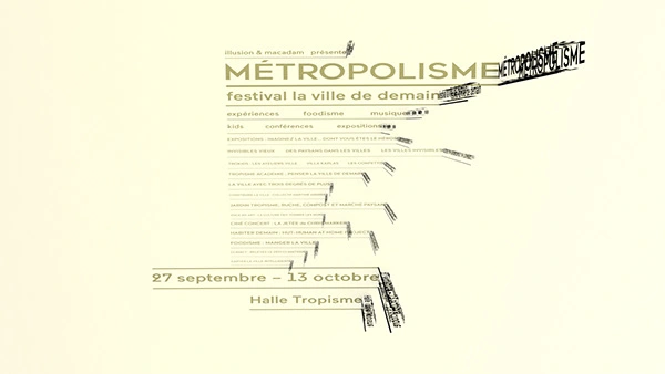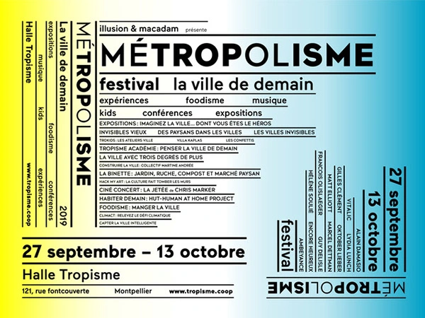Illusion et Macadam, headed by Vincent Cavaroc, organized from September 27 to October 13 2019, in the Halle Tropisme in Montpellier, the festival Métropolisme. This festival aims to question the city of tomorrow in front of the big challenges concerning climate, technology and migration which shake us, by calling artists and architects, builders and urbanists, researchers and intellectuals.
