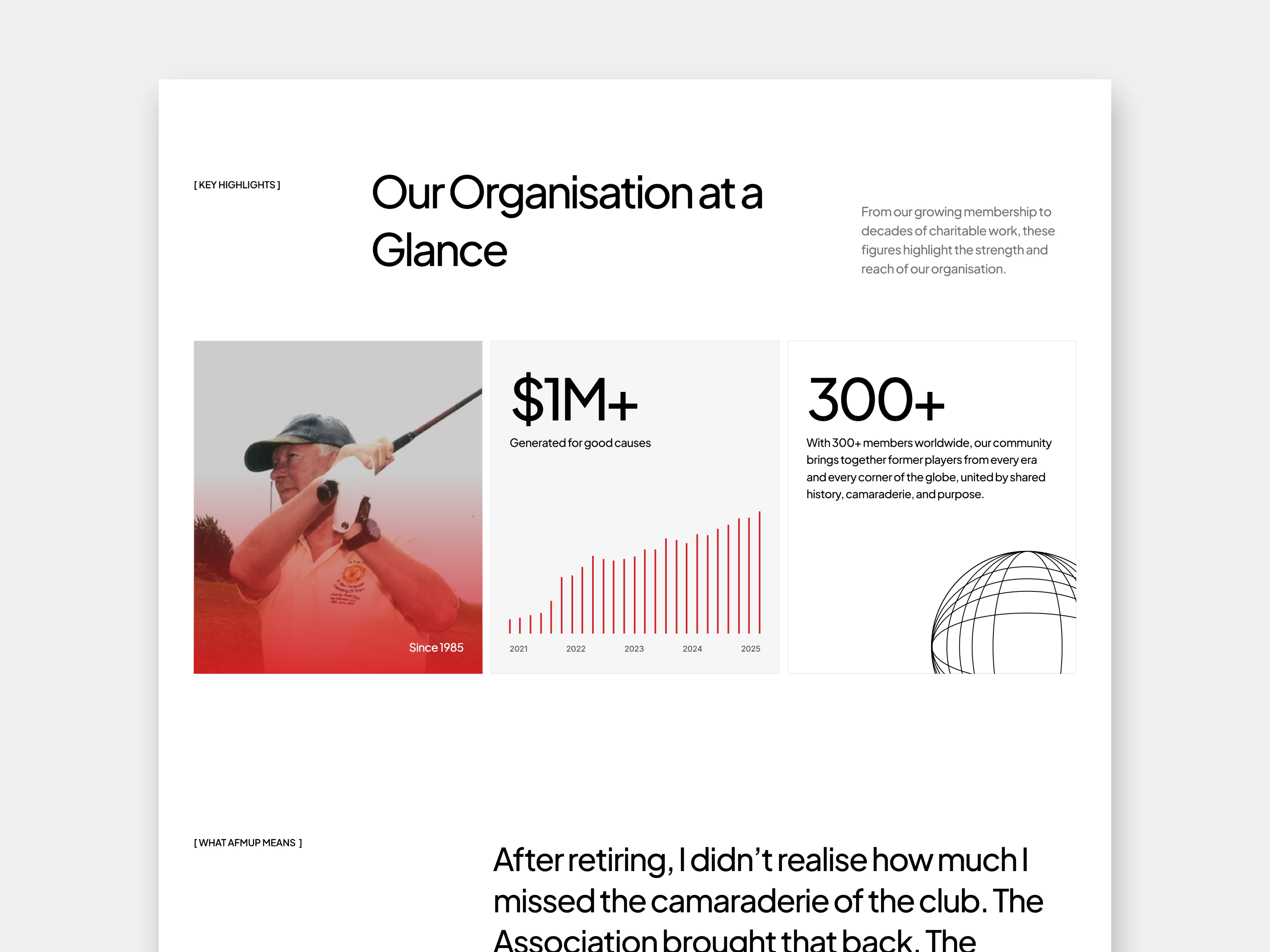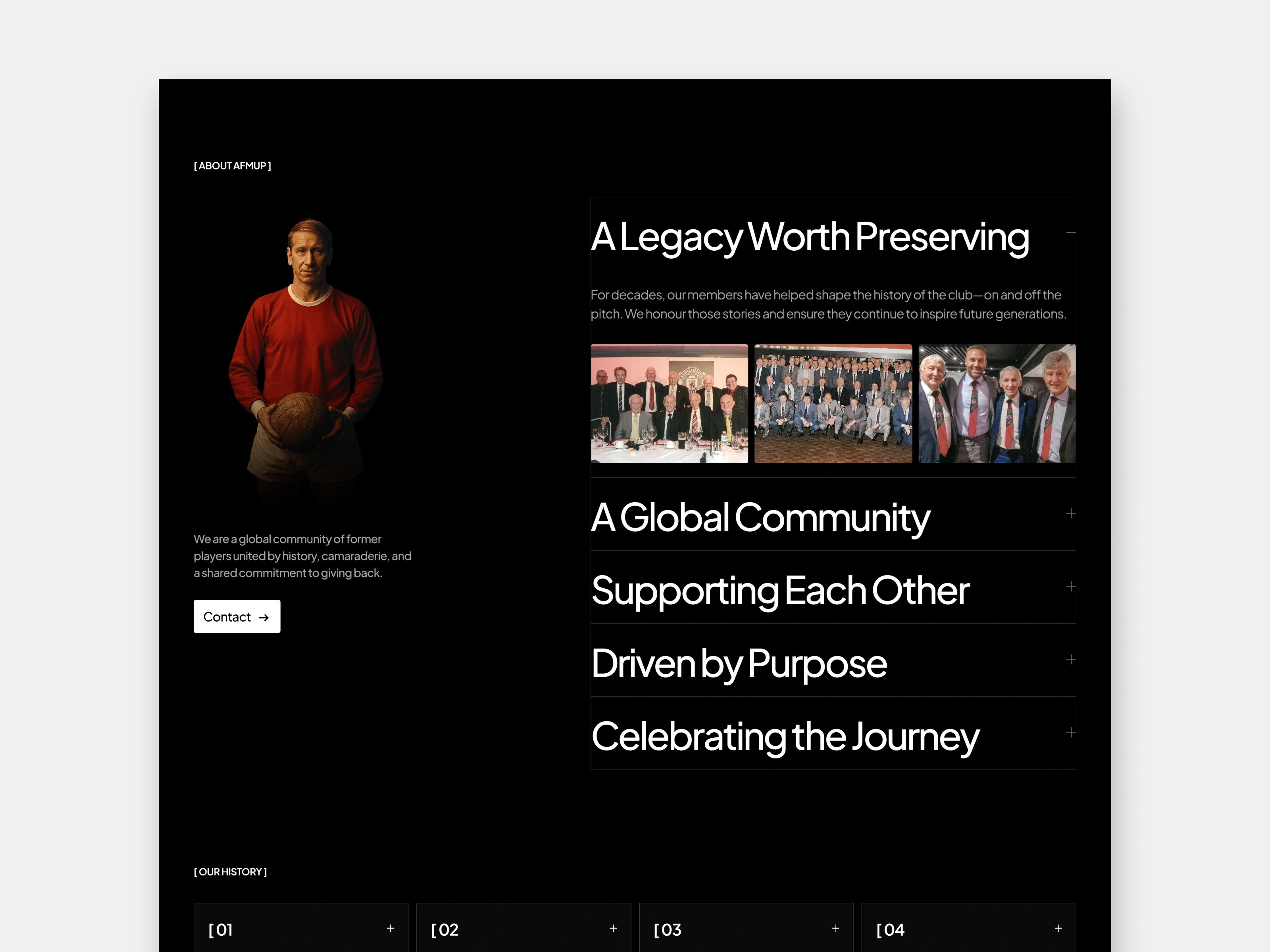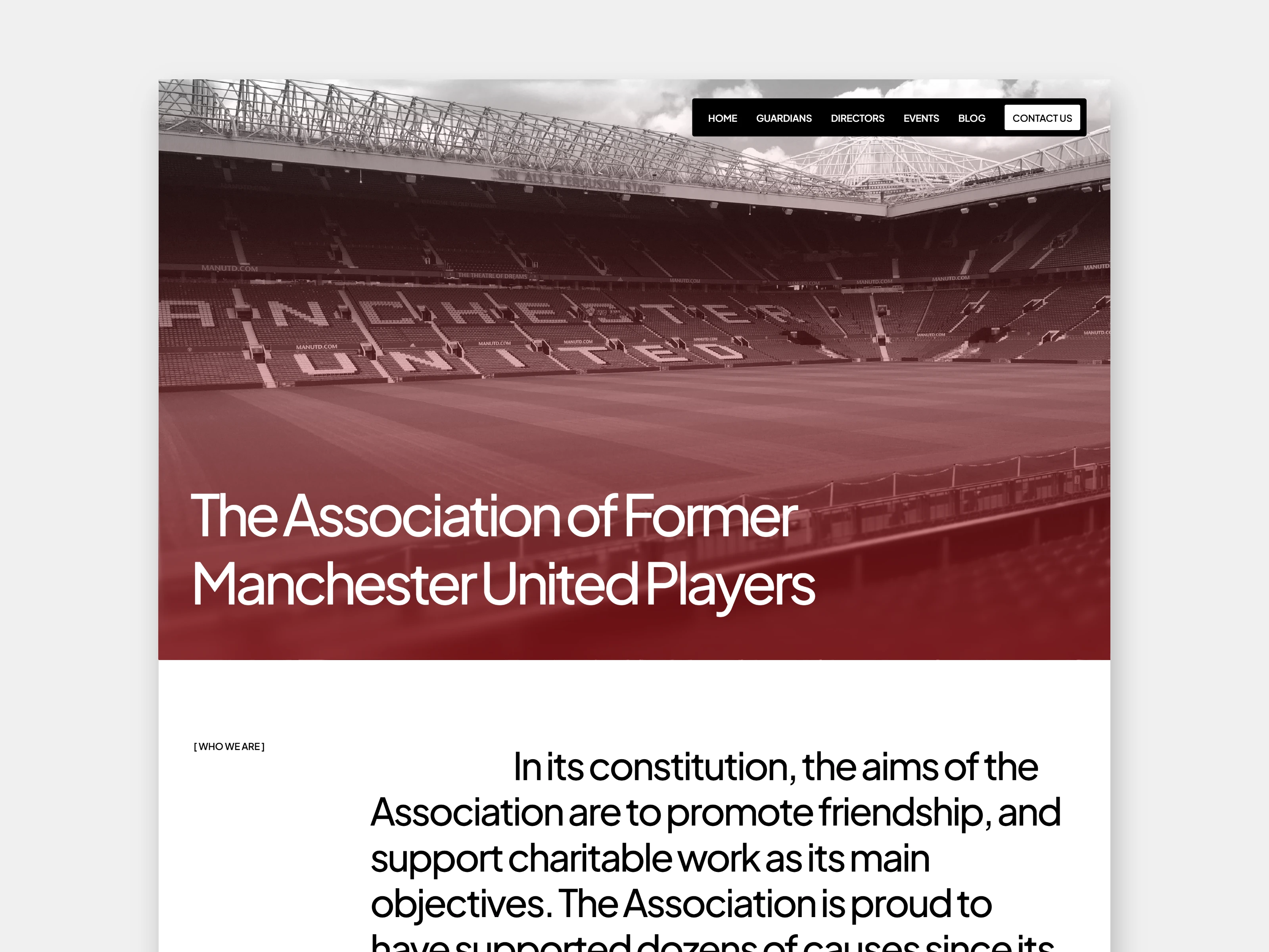 This website was crafted for the Association of Former Manchester United Players to celebrate its legacy, strengthen member connections, and support its ongoing charitable mission. It features: