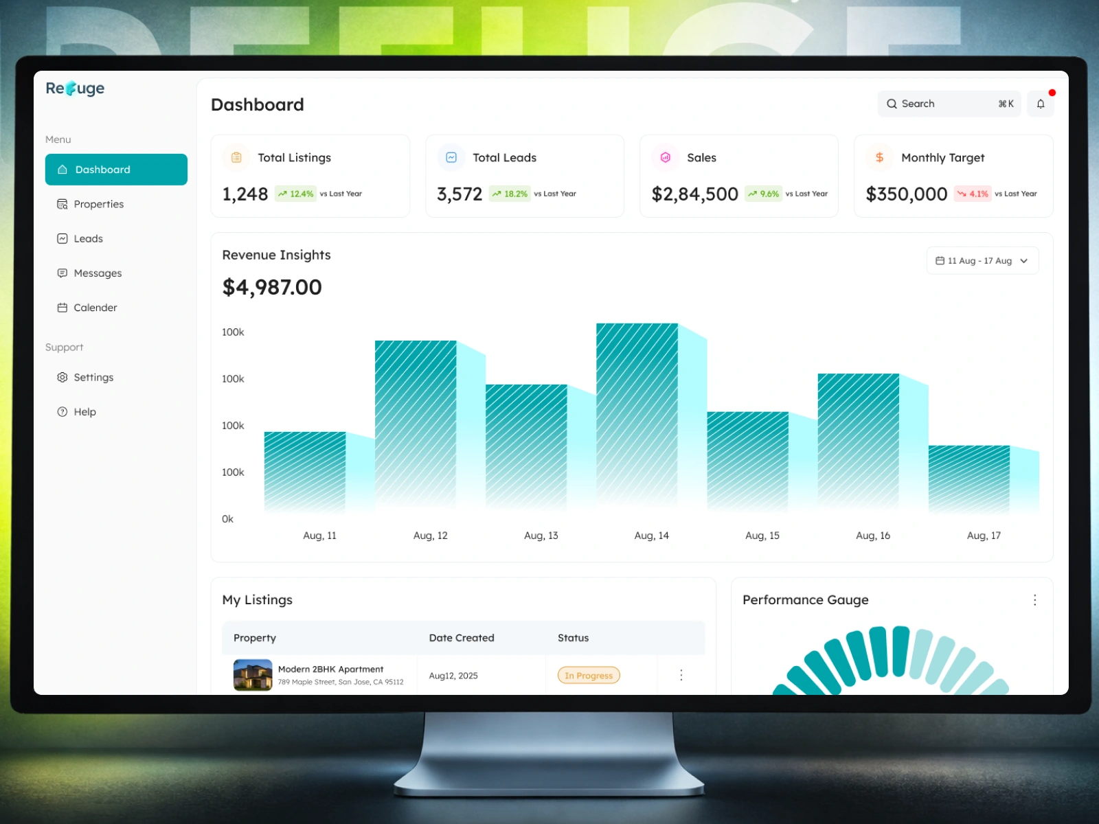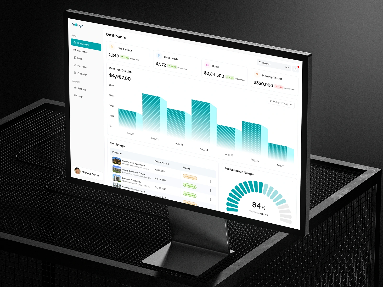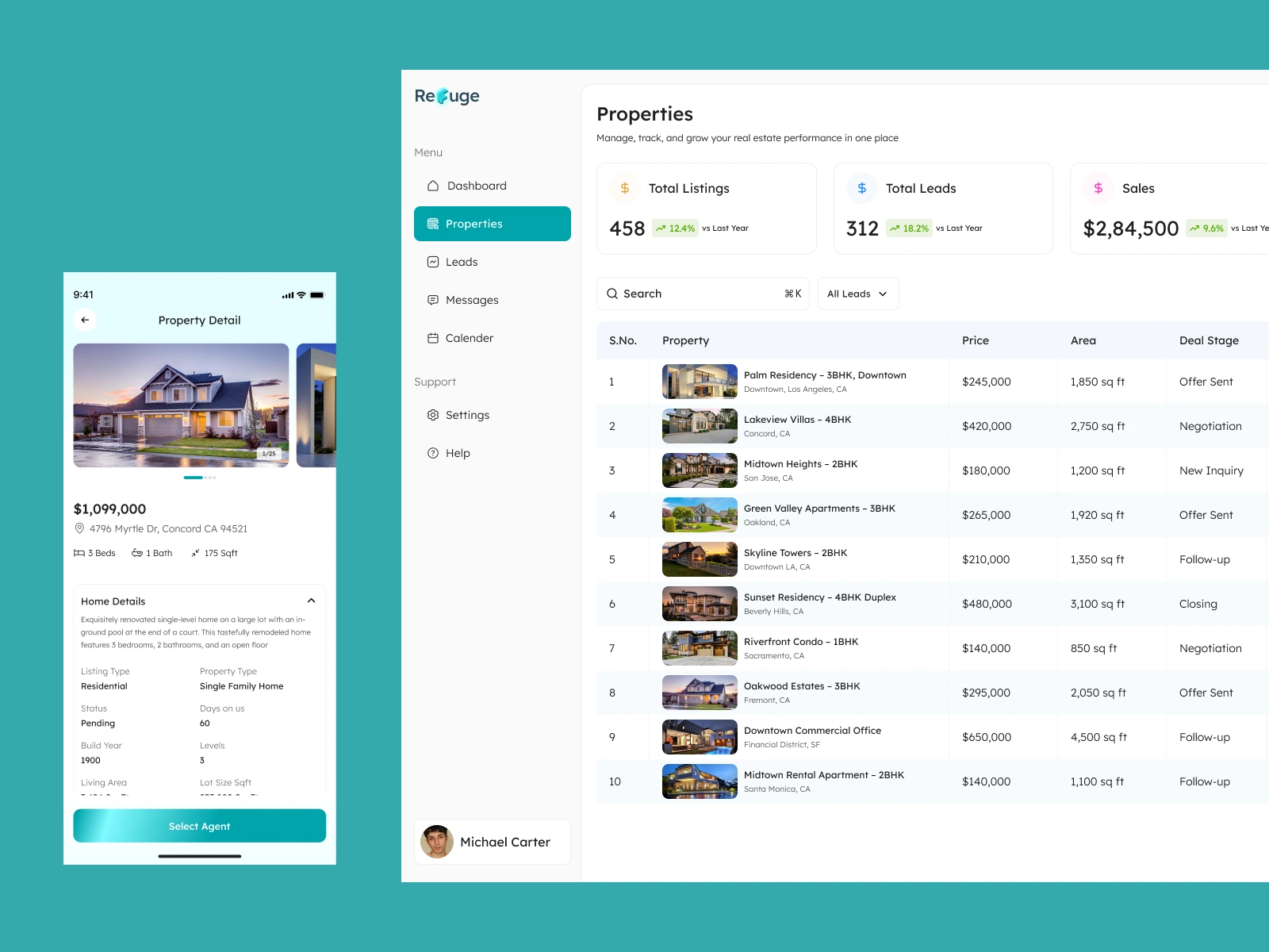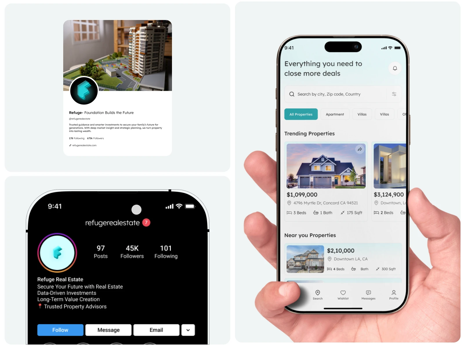 End-to-end product design for a real estate SaaS — logo, brand system, dashboard, and mobile app built as one scalable experience.
