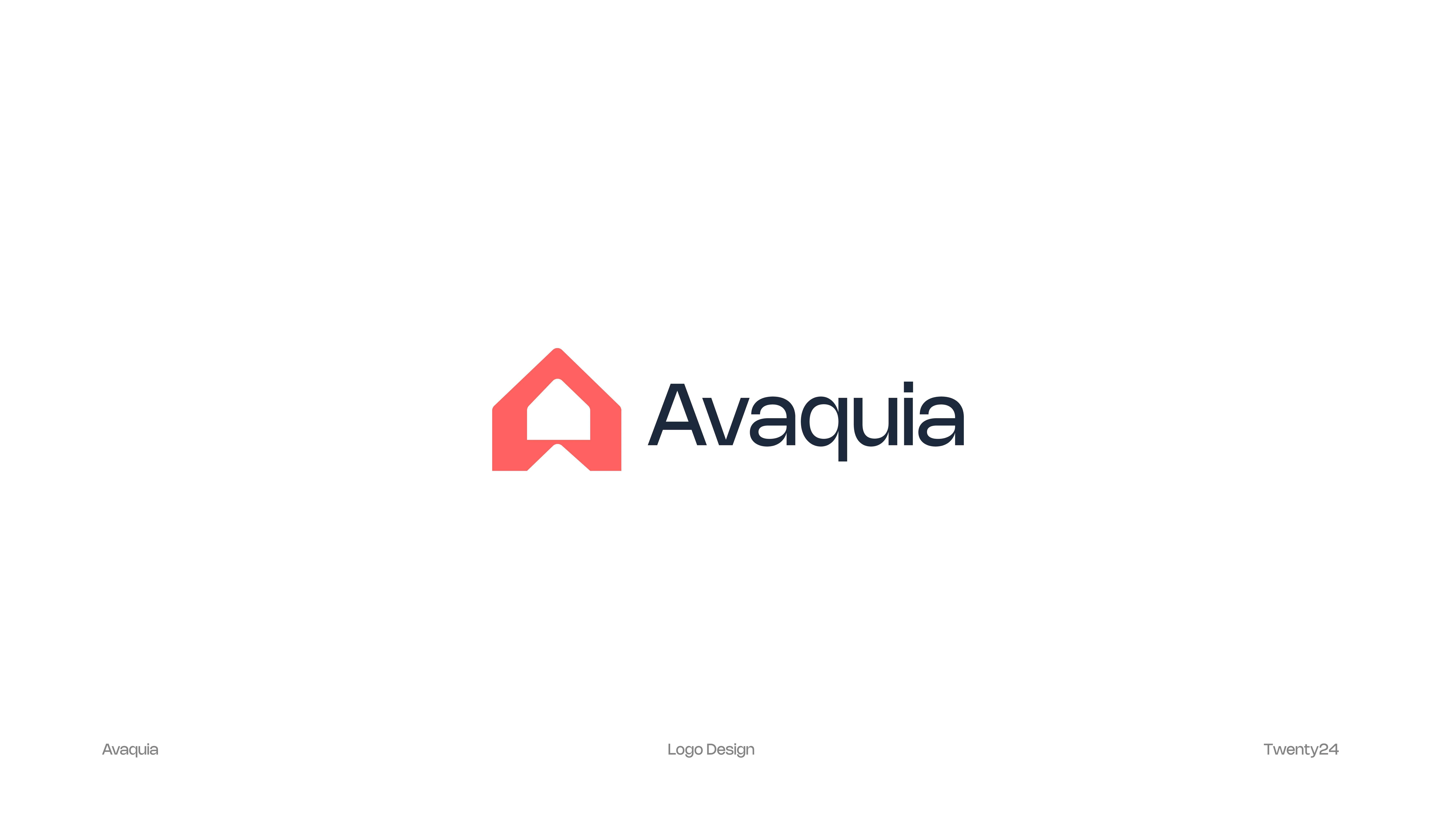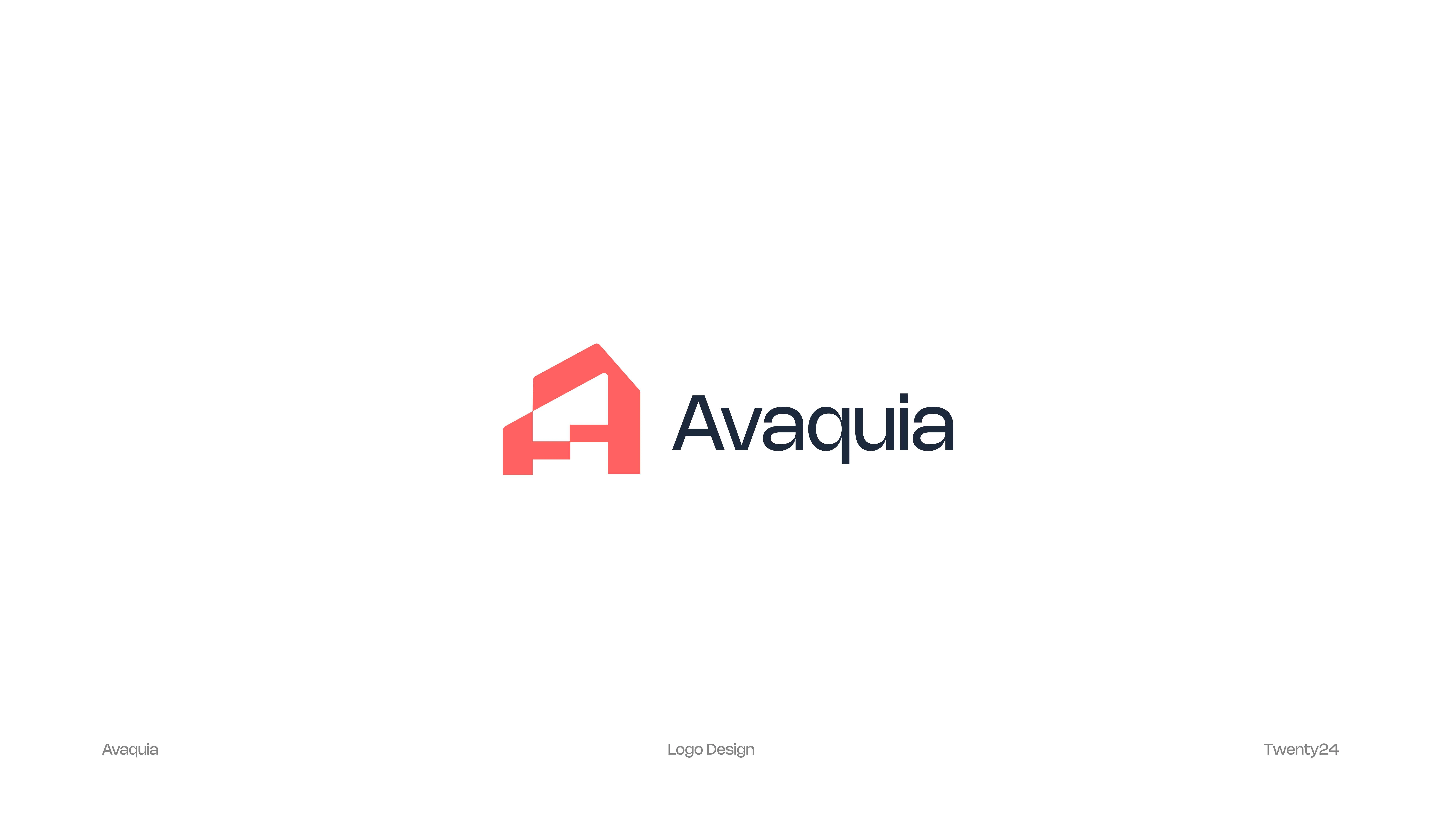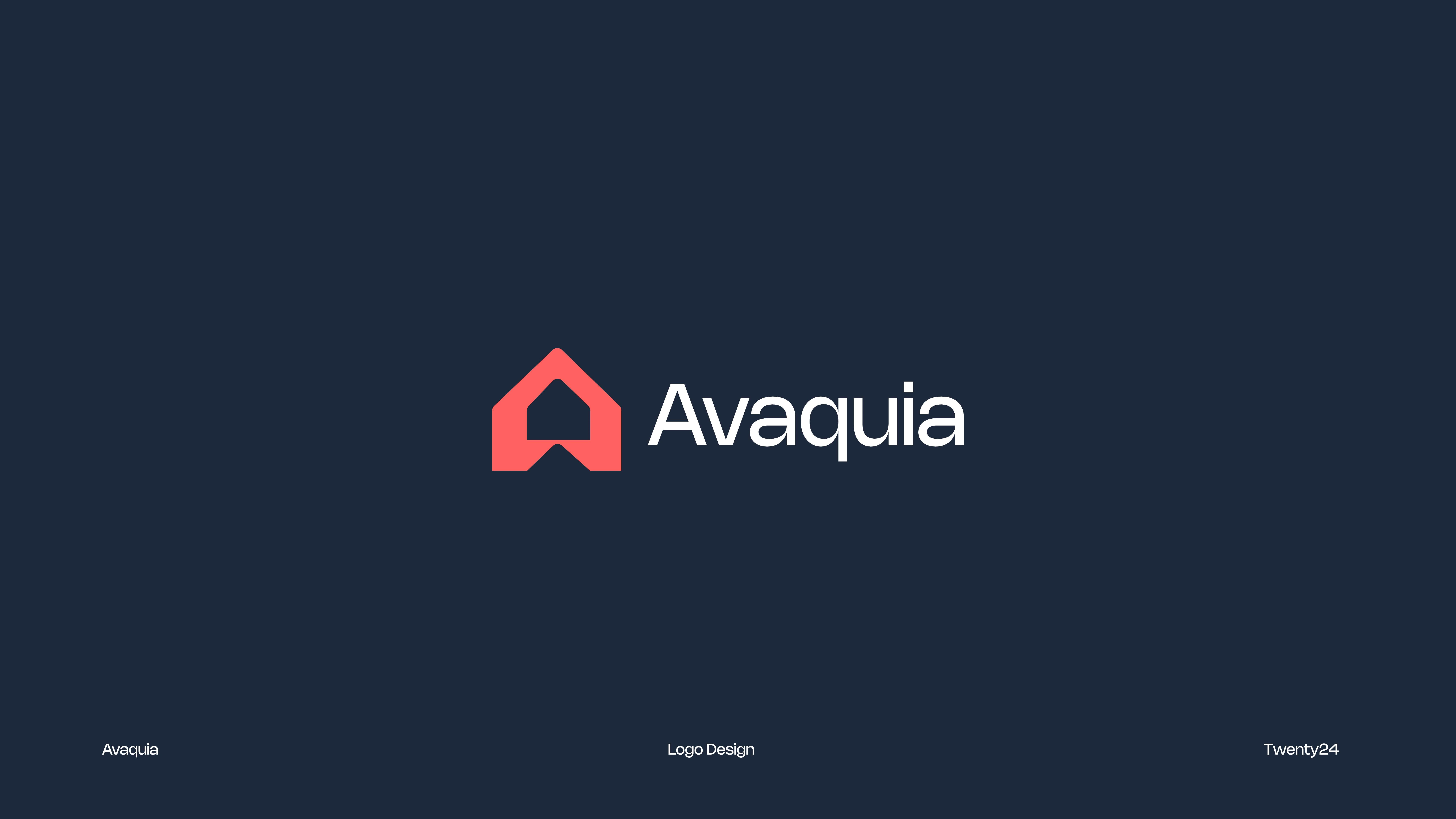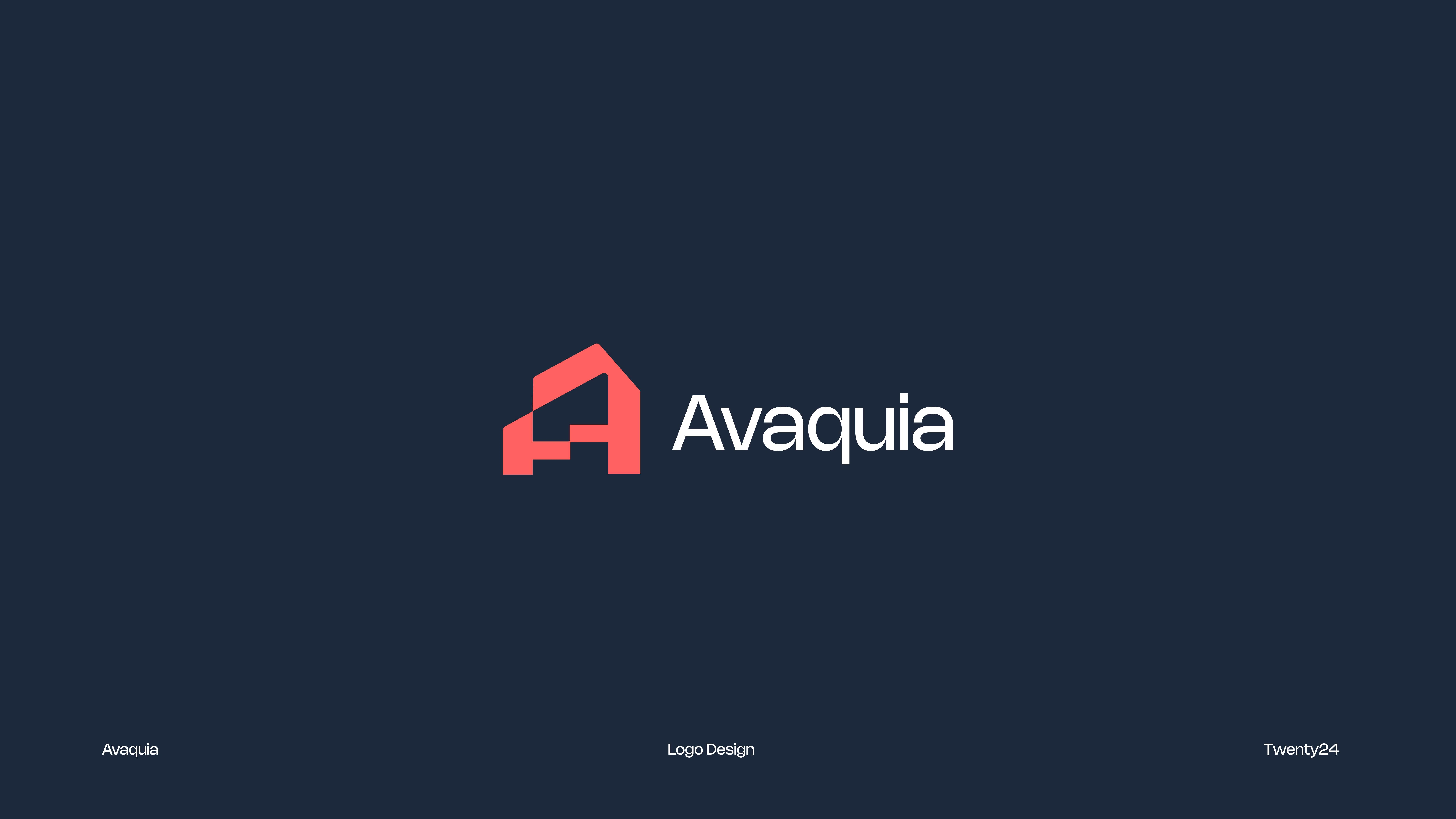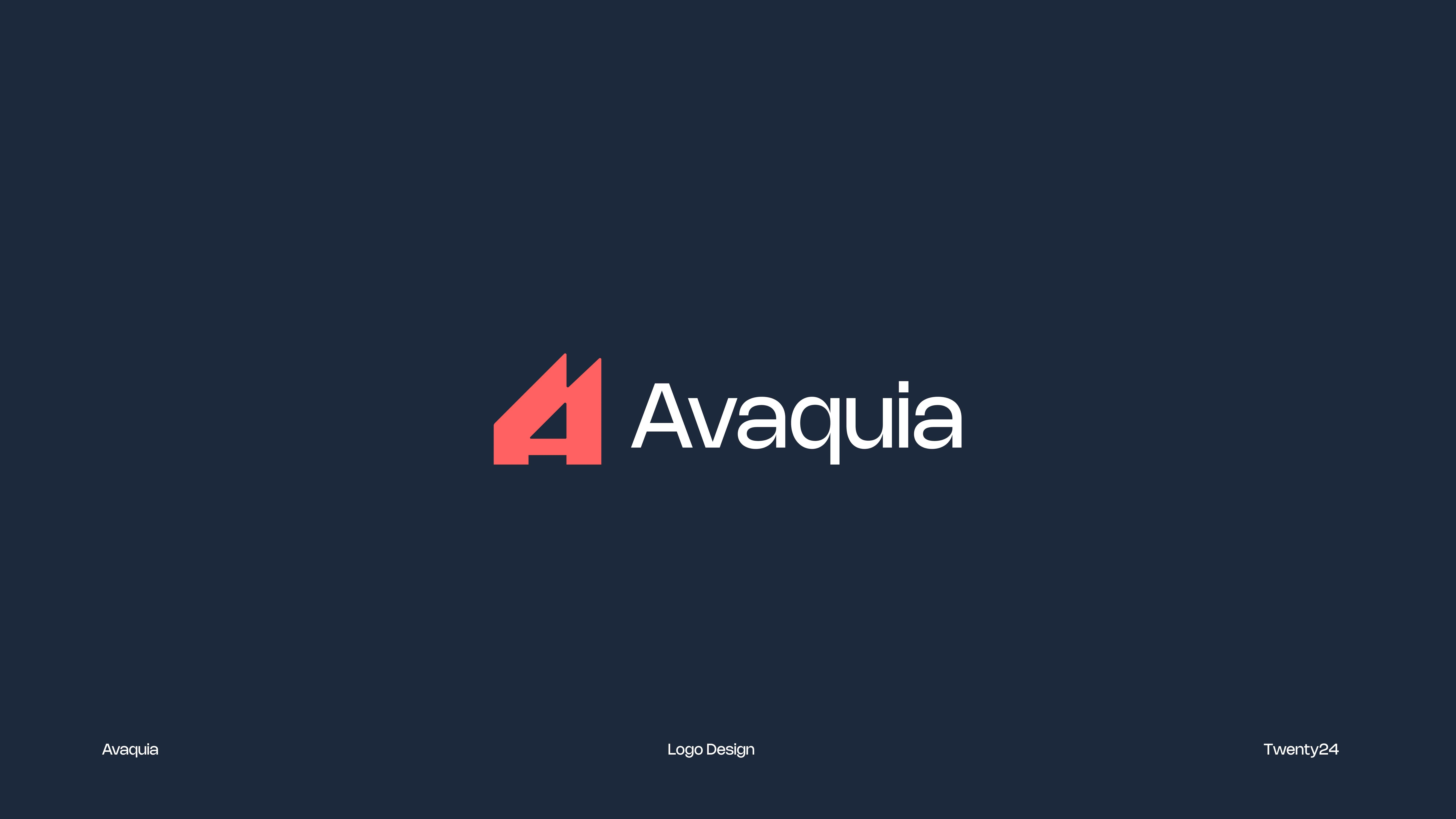 The AVAQUIA logo features bold, modern typography in a vibrant coral-red color set against a deep navy background. The strong, geometric letterforms create a contemporary and confident visual identity, reflecting a brand that is stylish, forward-thinking, and memorable.