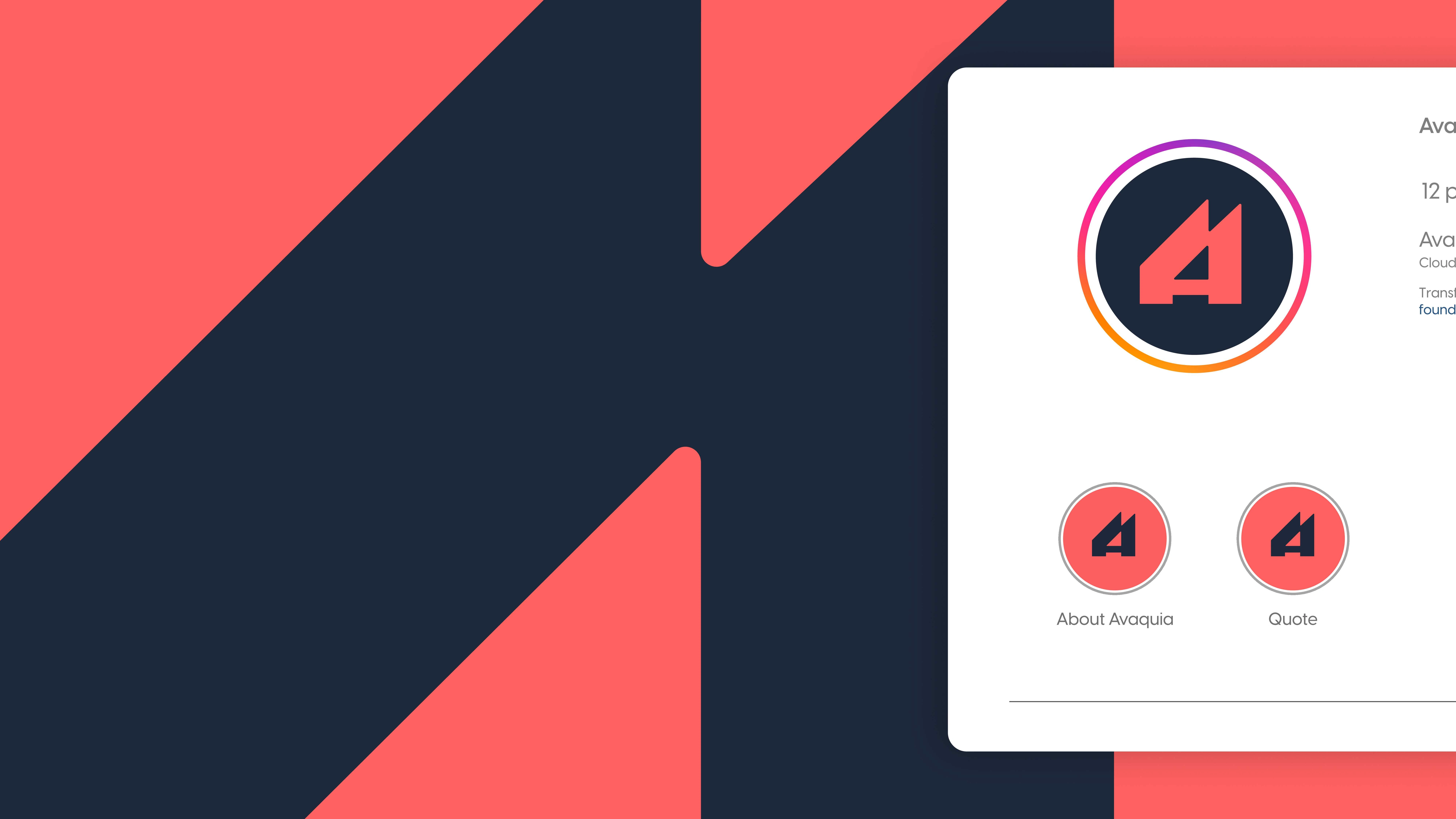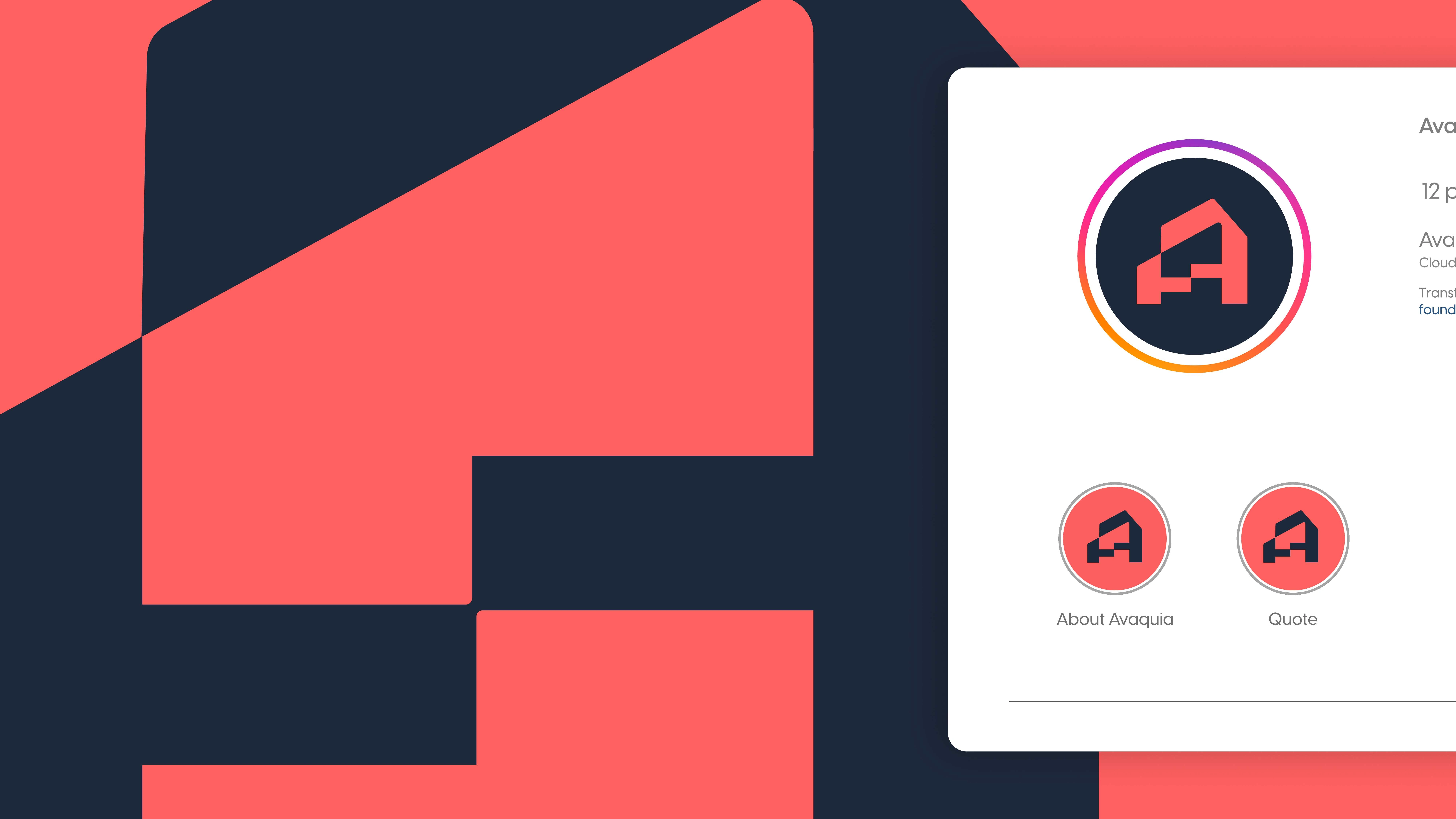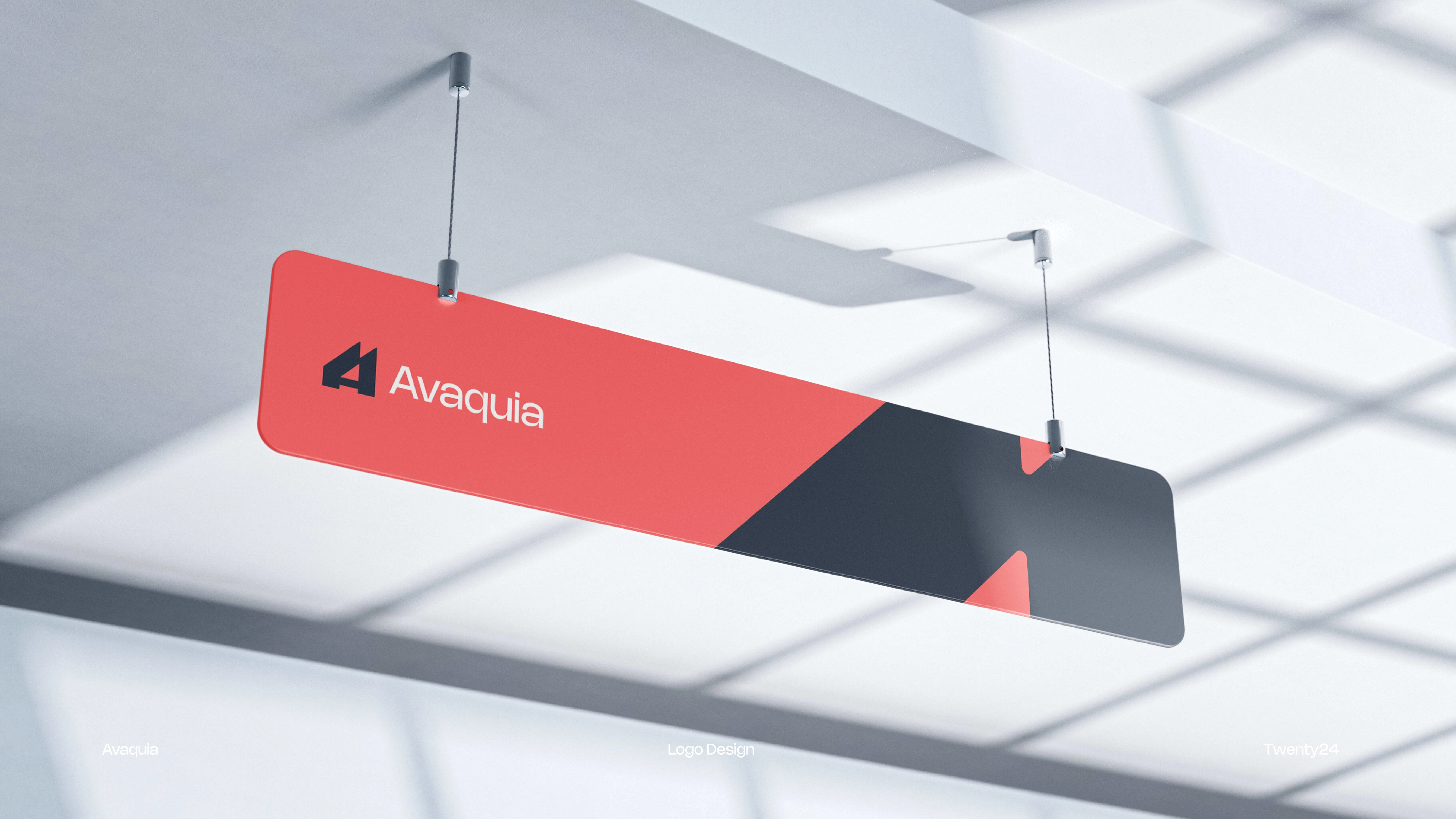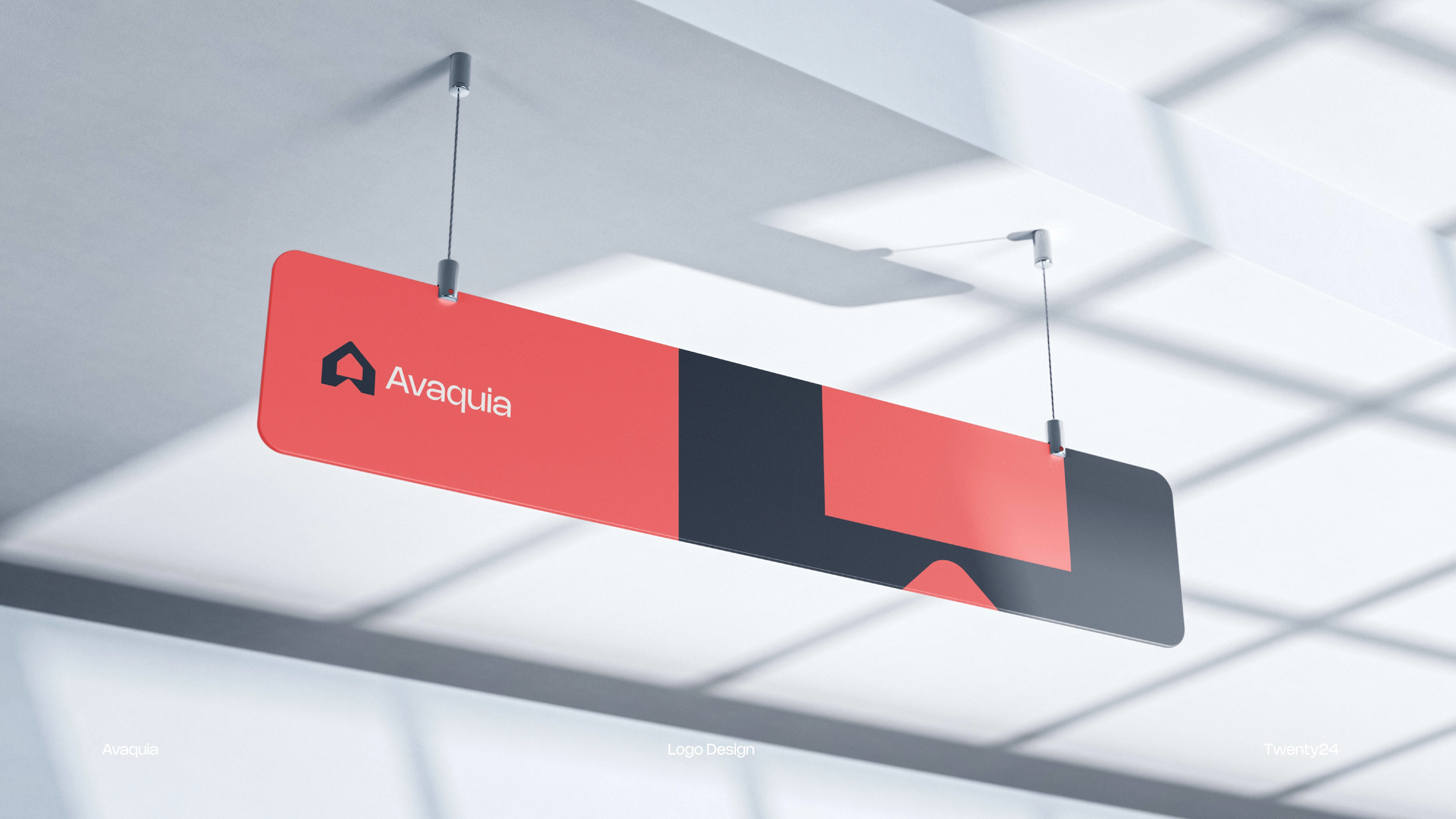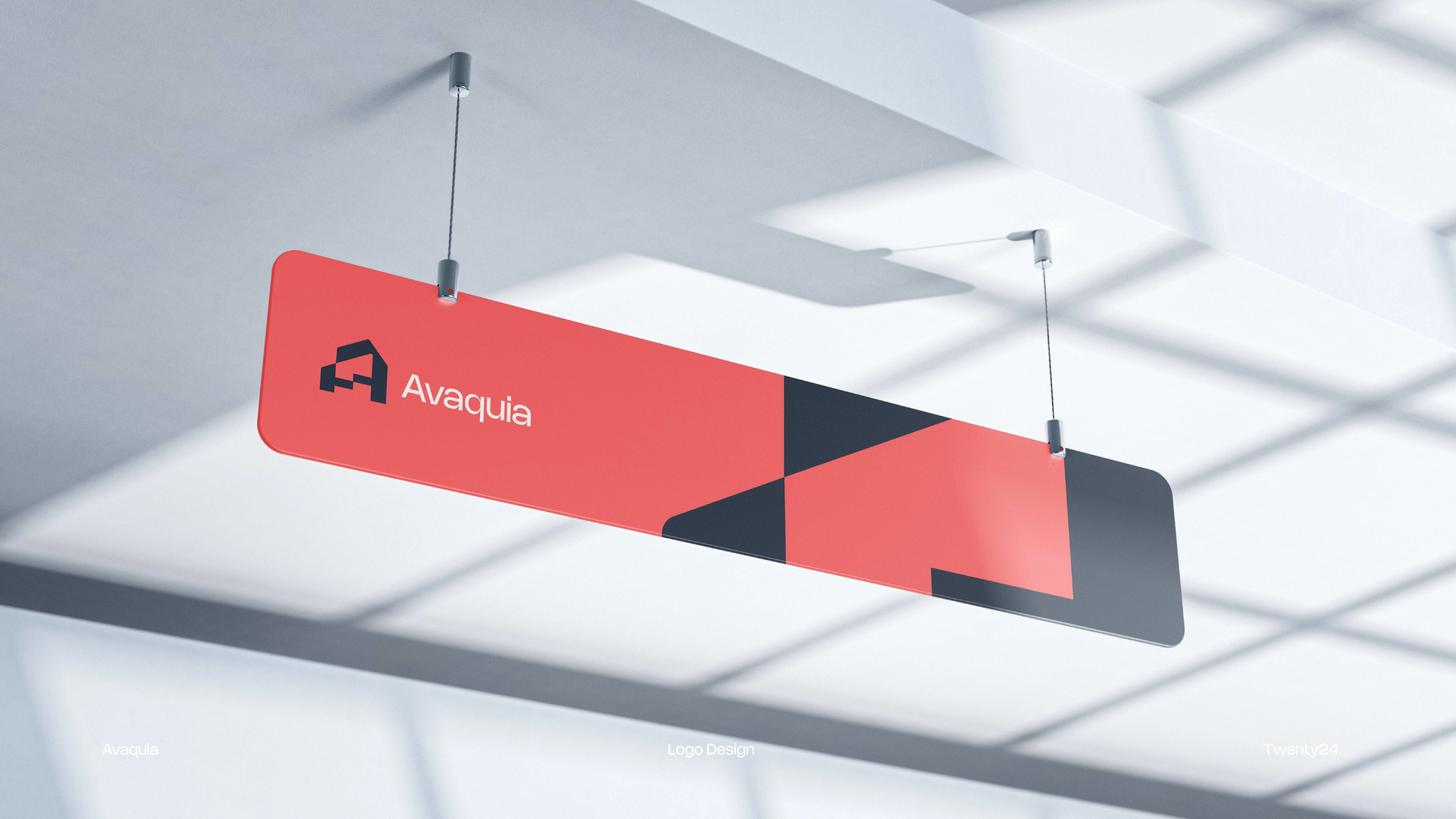 The AVAQUIA logo features bold, modern typography in a vibrant coral-red color set against a deep navy background. The strong, geometric letterforms create a contemporary and confident visual identity, reflecting a brand that is stylish, forward-thinking, and memorable.