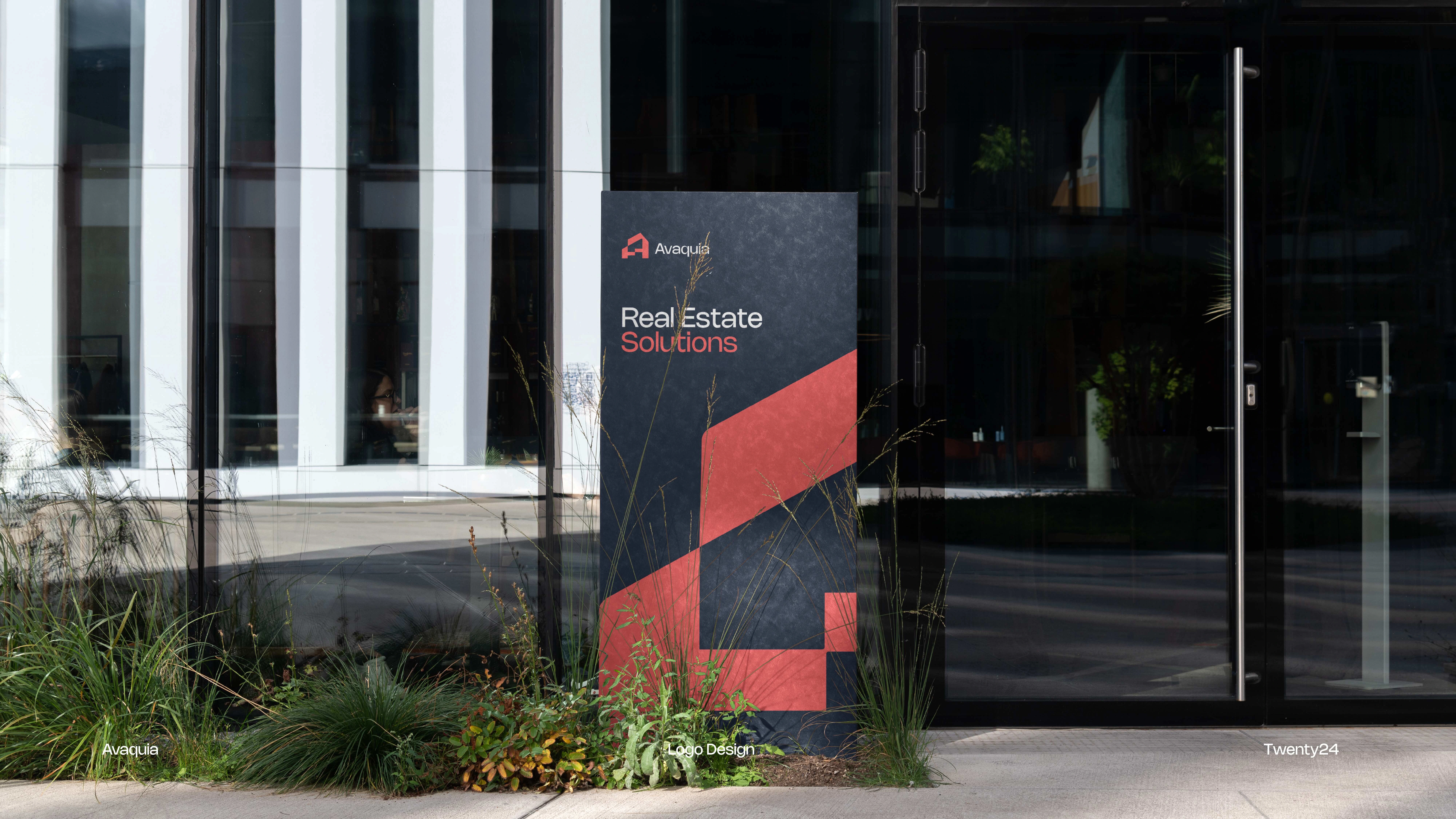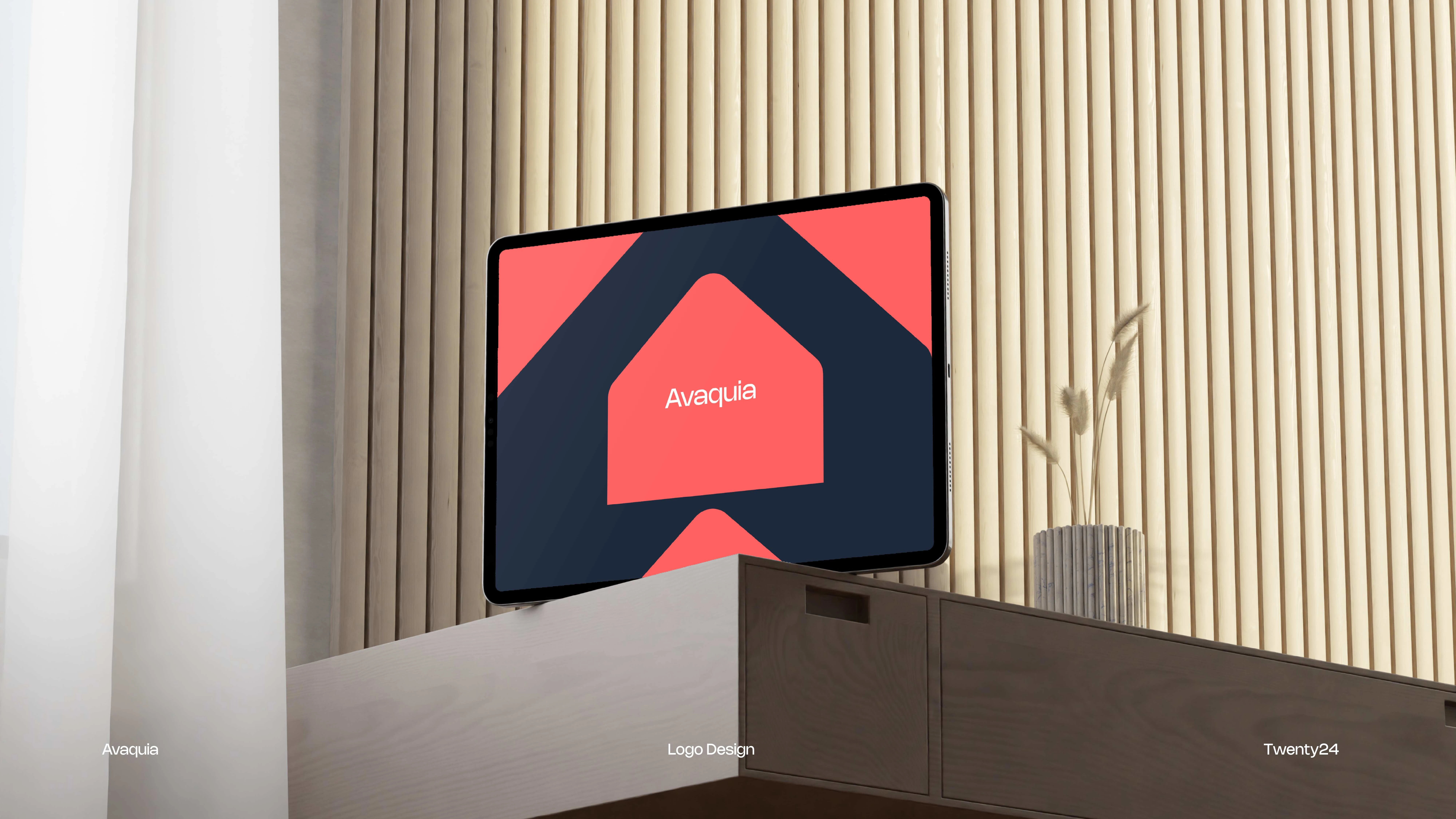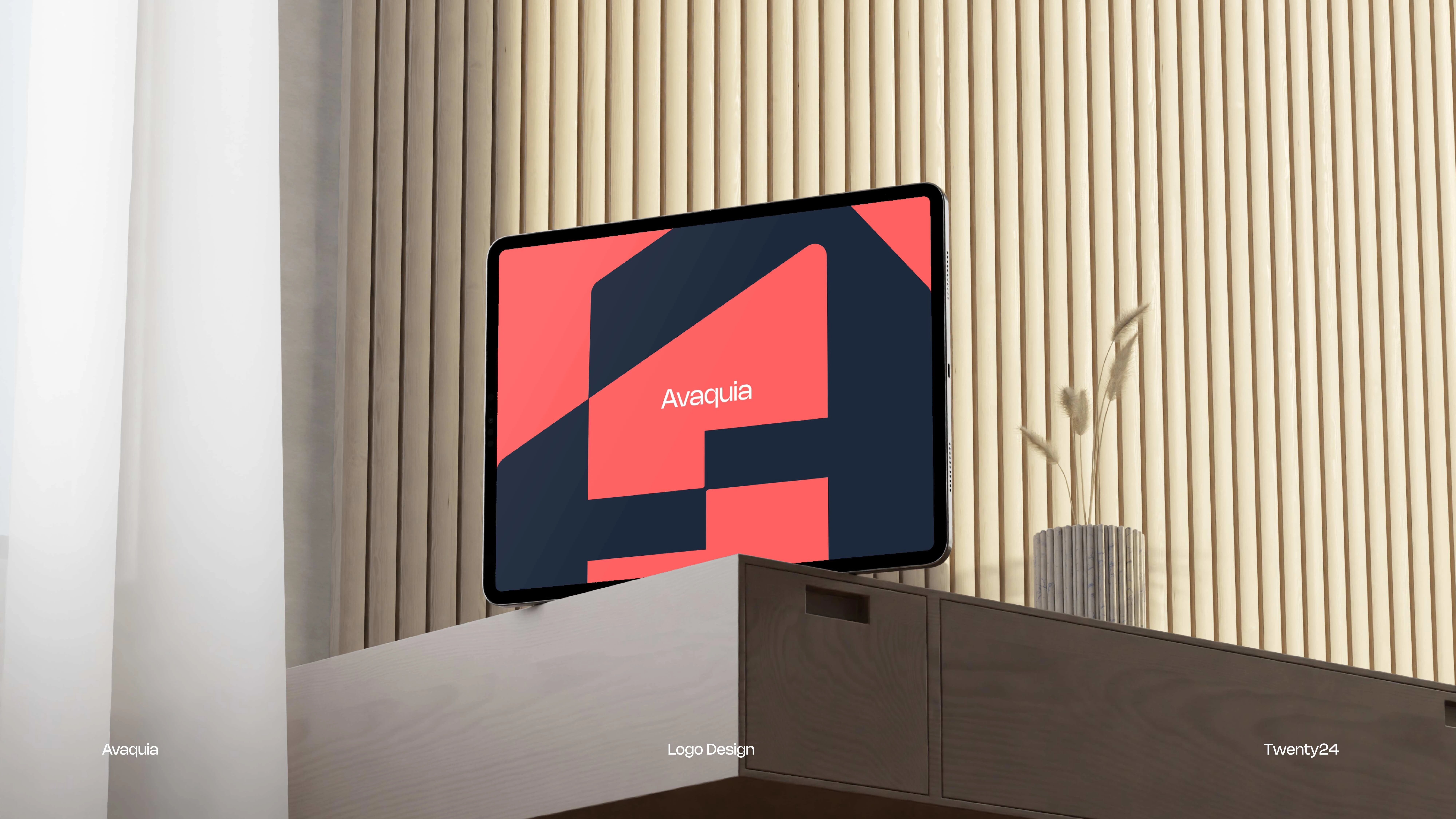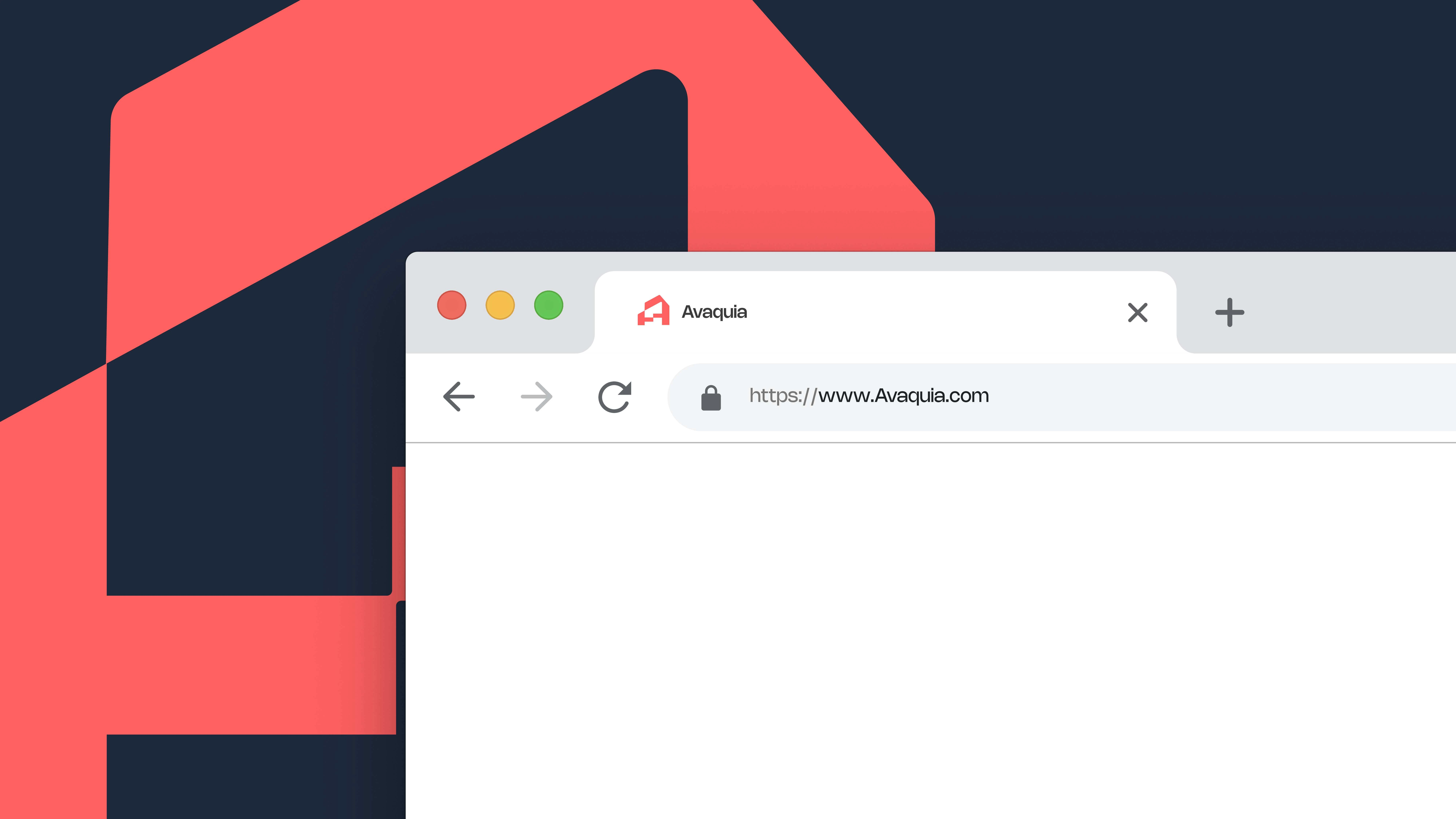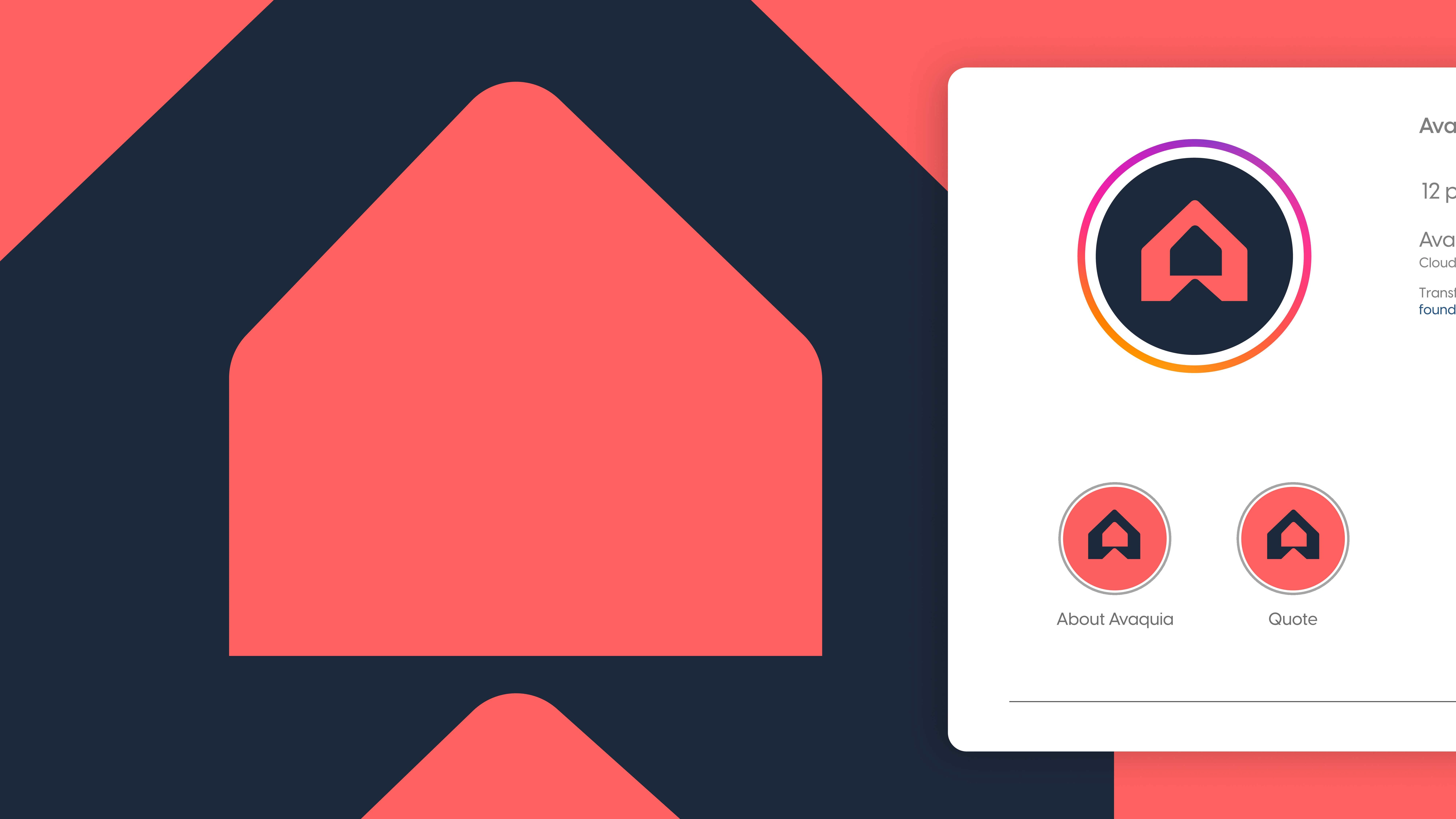The AVAQUIA logo features bold, modern typography in a vibrant coral-red color set against a deep navy background. The strong, geometric letterforms create a contemporary and confident visual identity, reflecting a brand that is stylish, forward-thinking, and memorable.