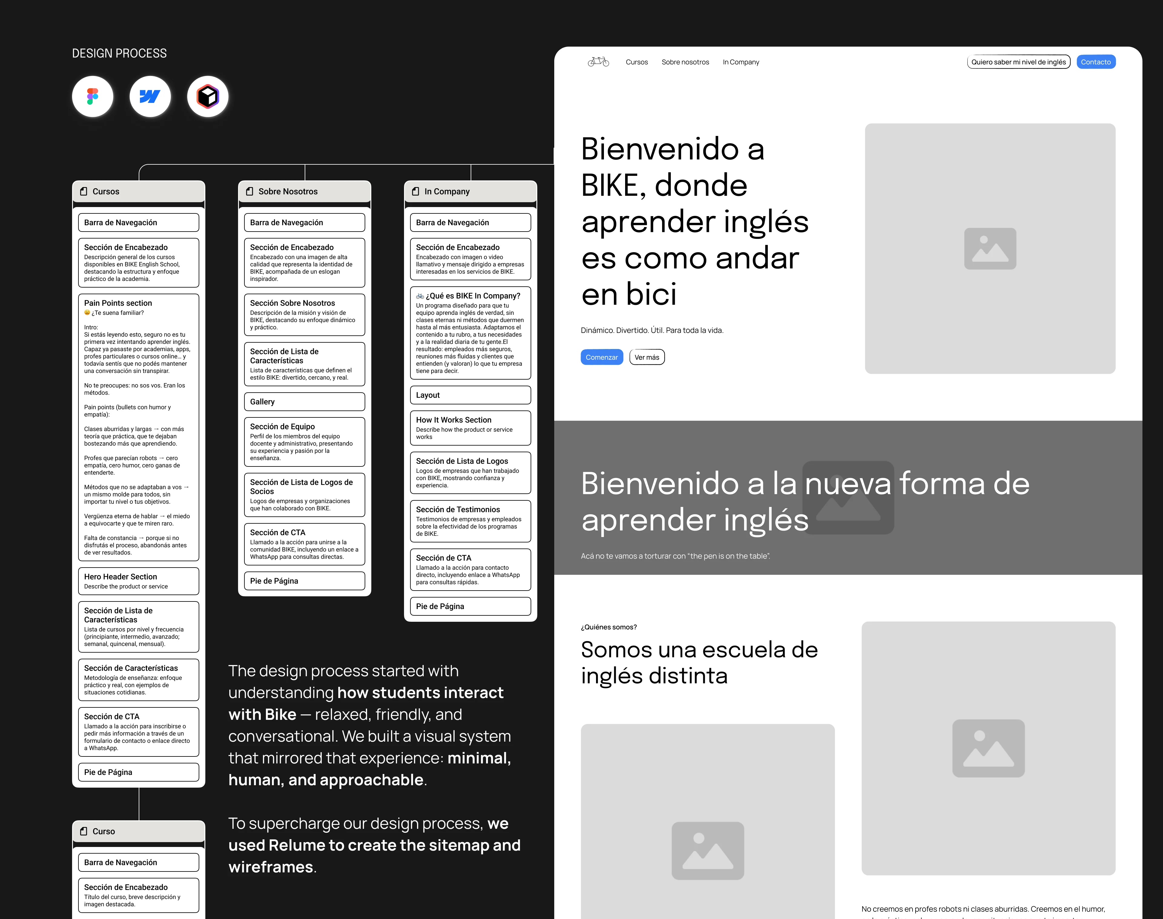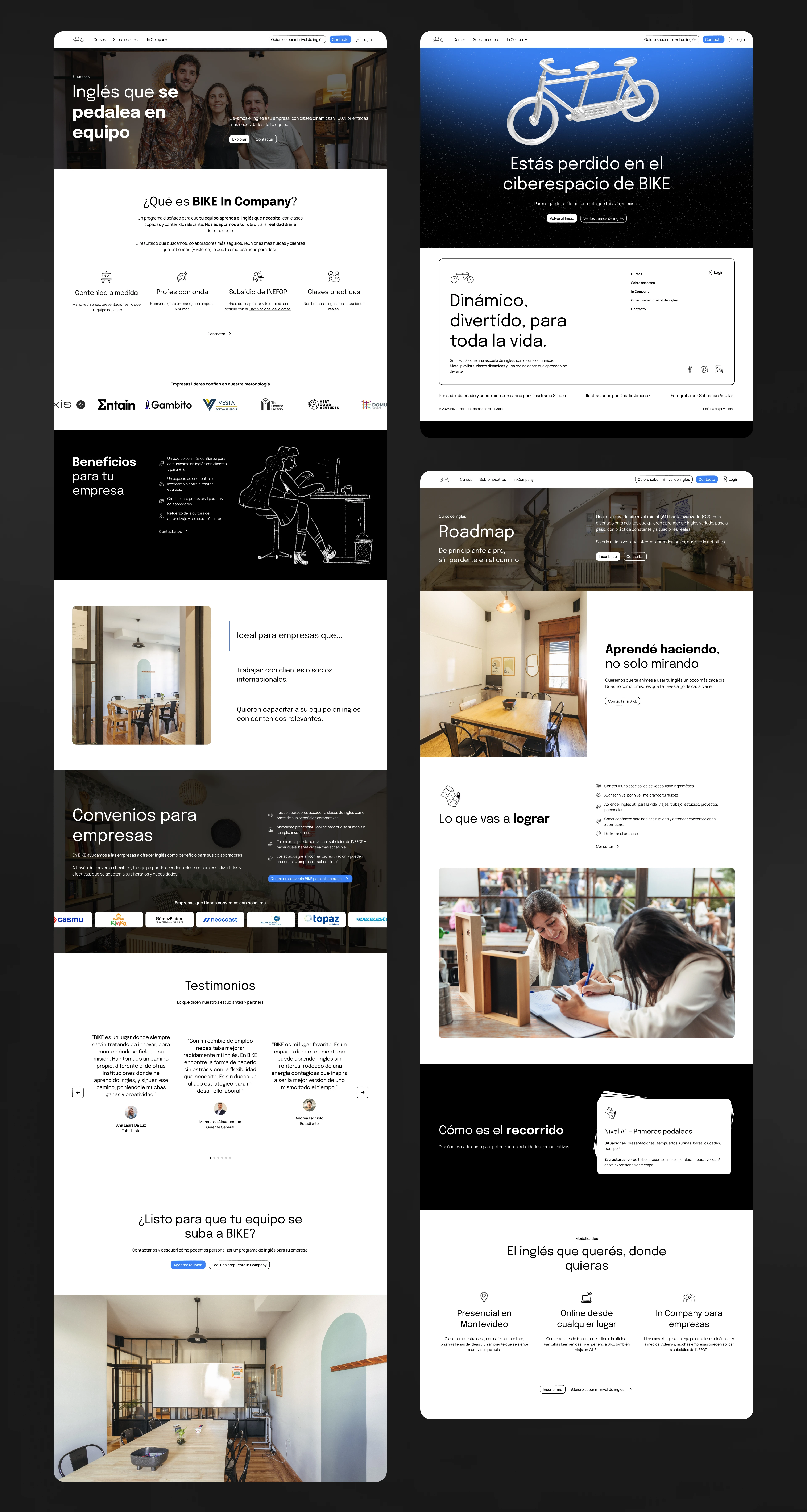 Solution – We structured the experience around their core learning paths (Roadmap, Talk, Career), strengthened the hierarchy and messaging, and built dedicated flows for business programs (In Company and corporate agreements) plus their immersive BIKE Camp.