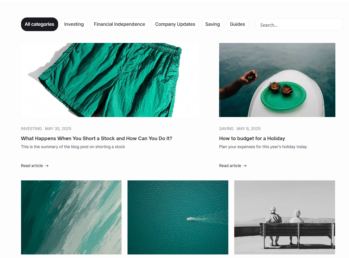 Developed a dynamic blog section with Webflow CMS, featuring responsive design, category filters, and clean article layouts.