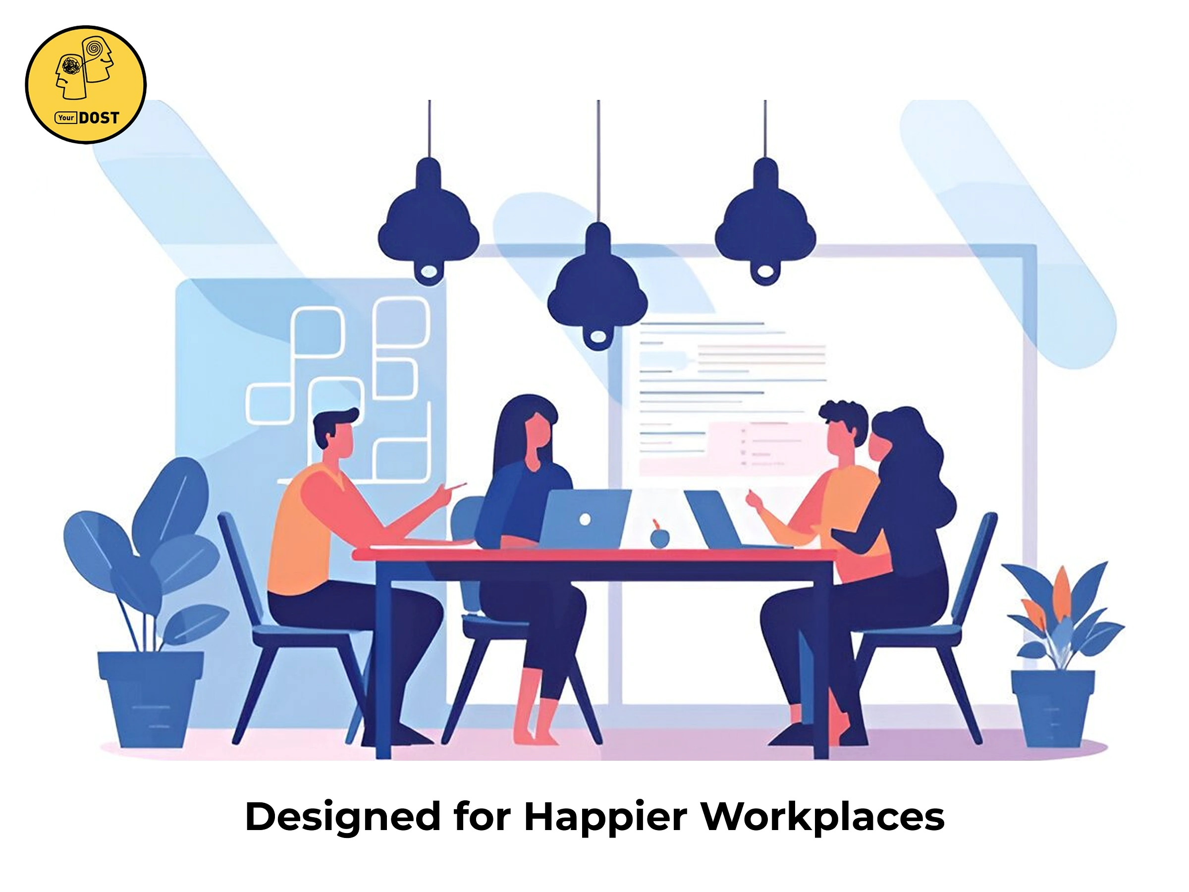 The headline instantly captures attention by highlighting the importance of emotional wellness in the workplace. A supporting subheading clearly defines the target audience—HR and CXOs—while reinforcing the benefits.