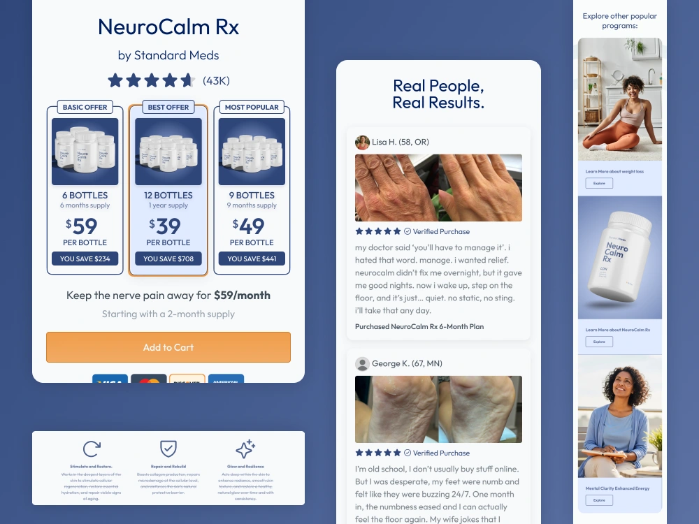 DTC health funnel focused on reducing cognitive friction. Engineered with aggressive CRO and premium aesthetics for high-velocity, mobile-first conversions.