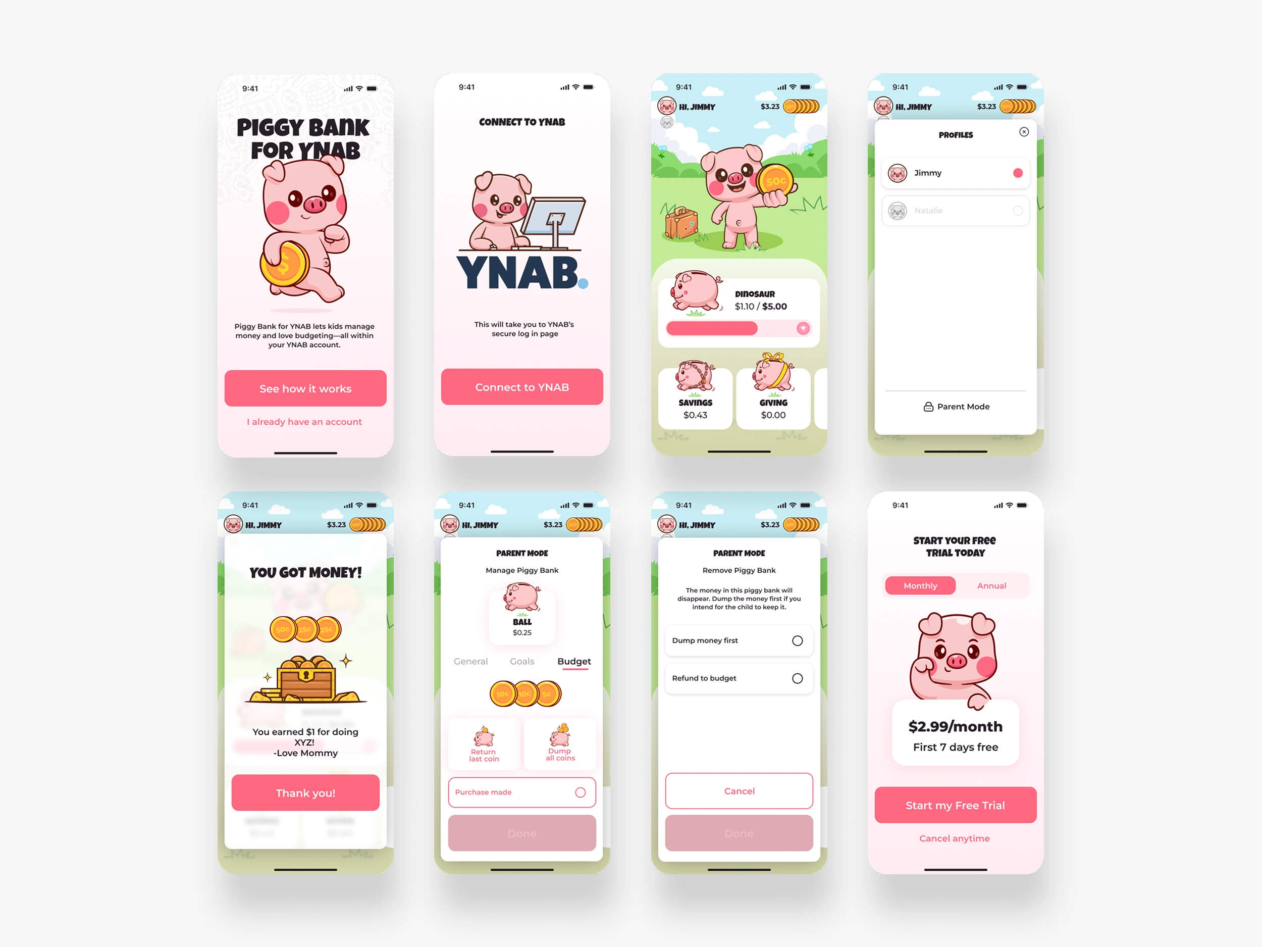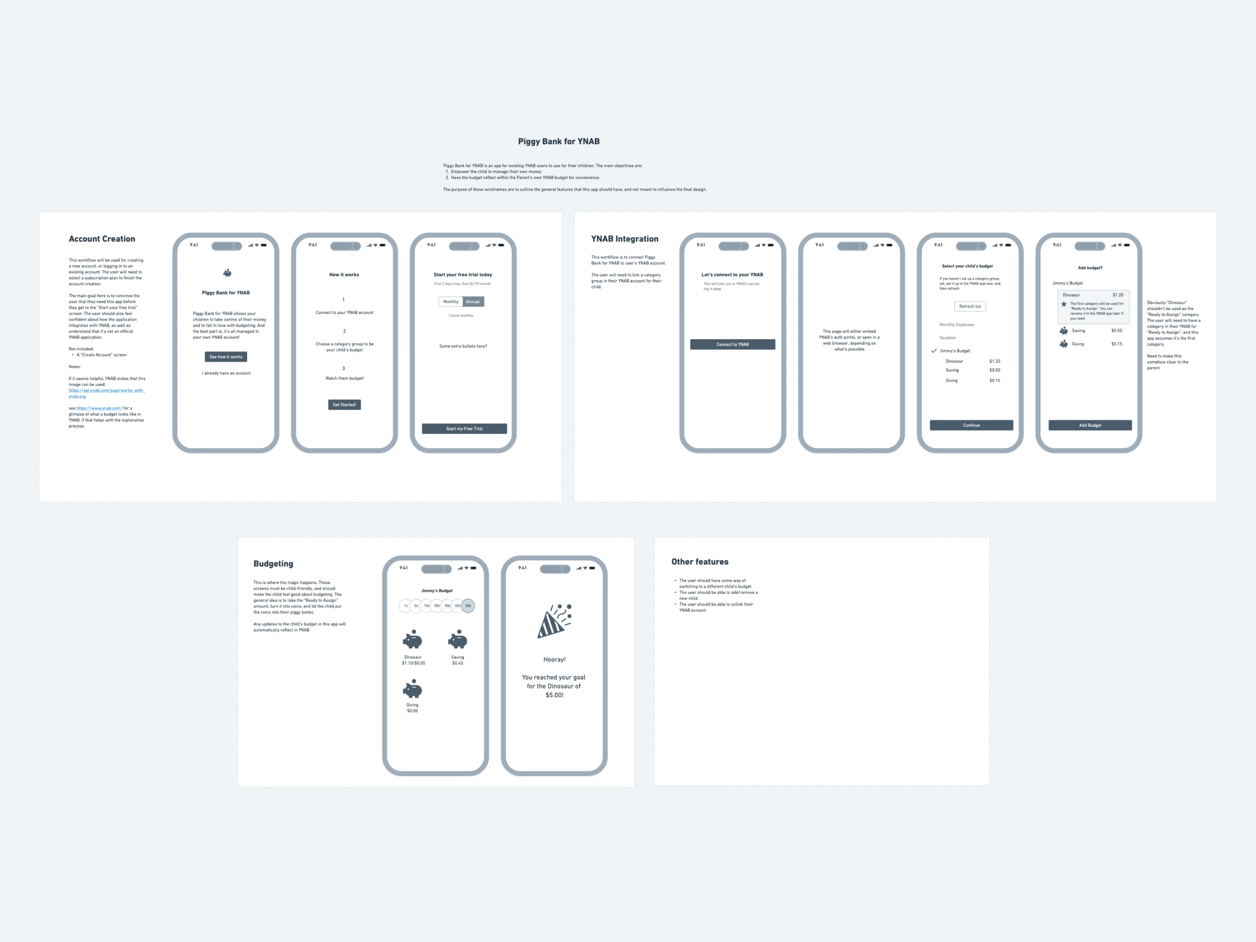 Piggy for YNAB was to be mobile app designed to help children (ages 3–10) develop positive money habits by linking their experience to the YNAB system their parents already use.