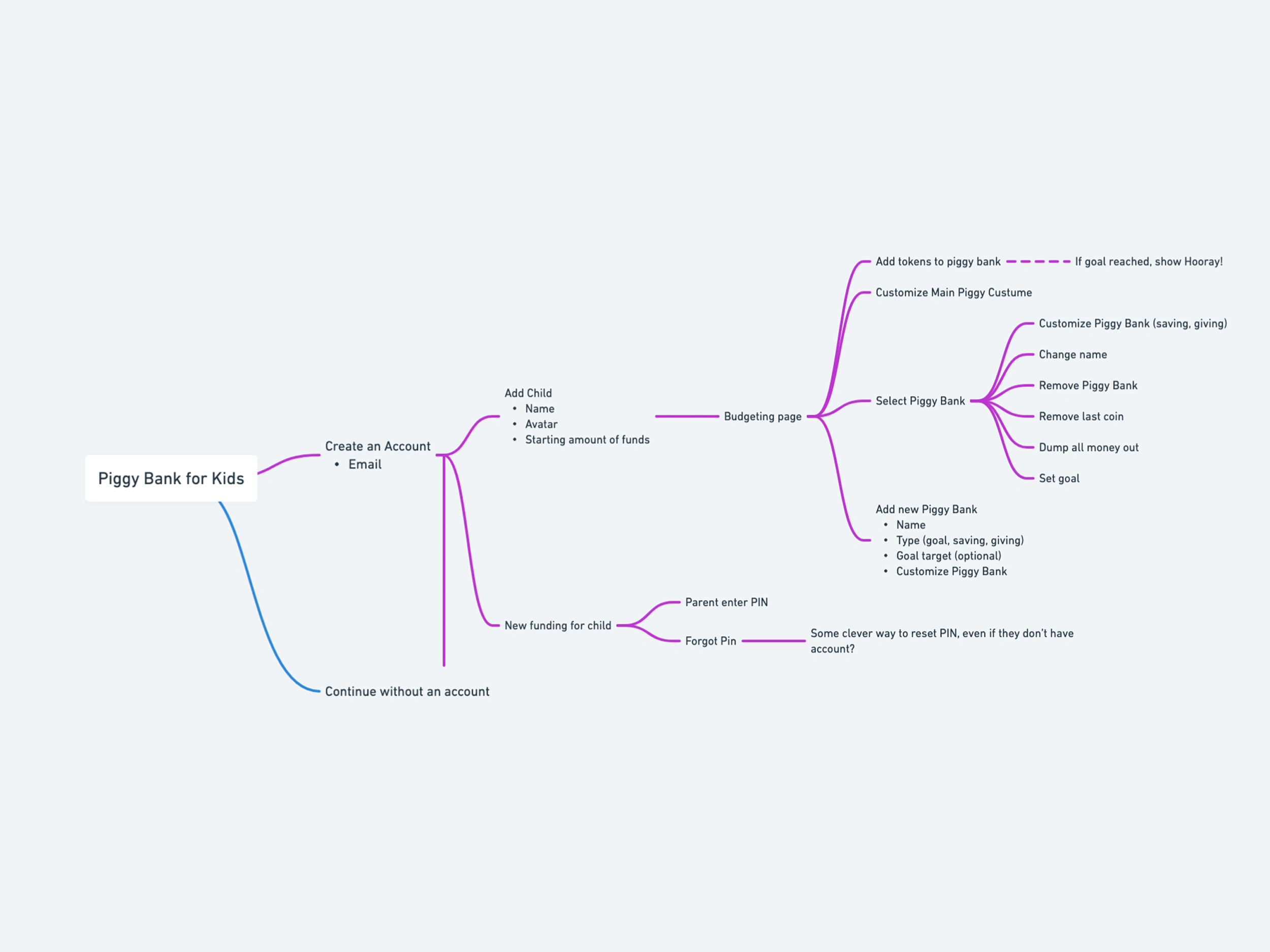 Ethan provided an initial feature mind map covering flows like::