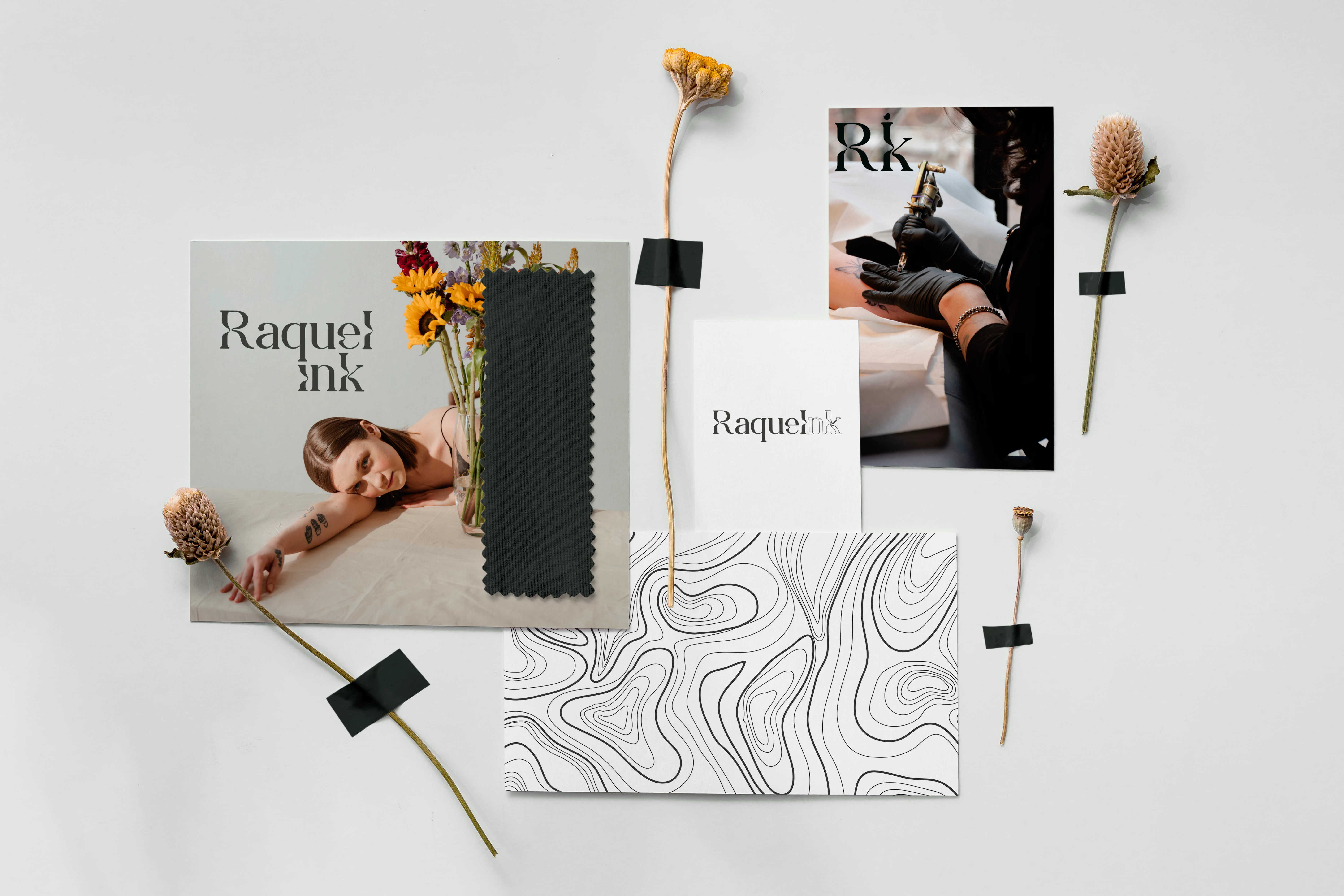 Raquel Ink: A feminine brand for a tattoo studio. This one is inspired by tree knots with a floral touch.