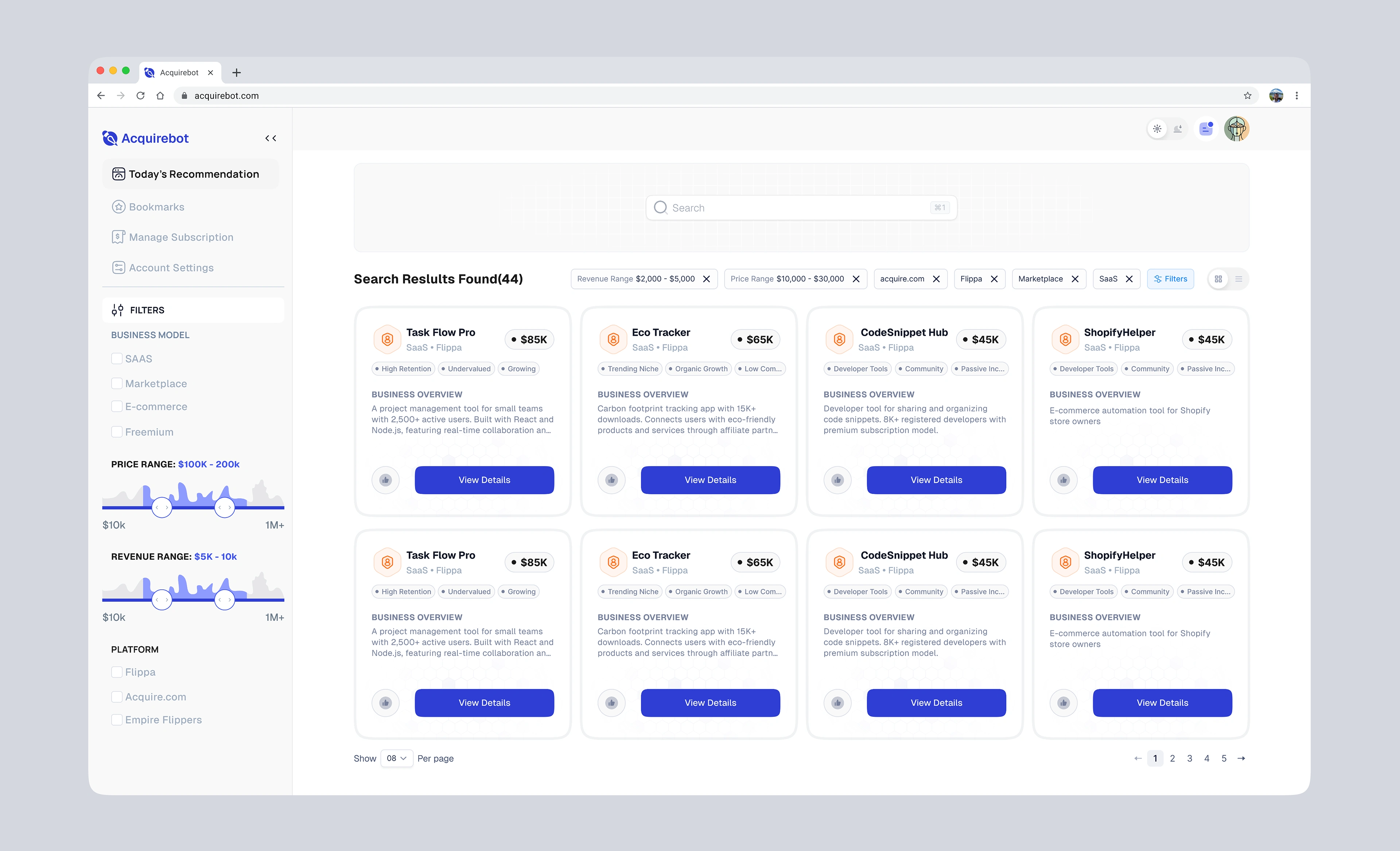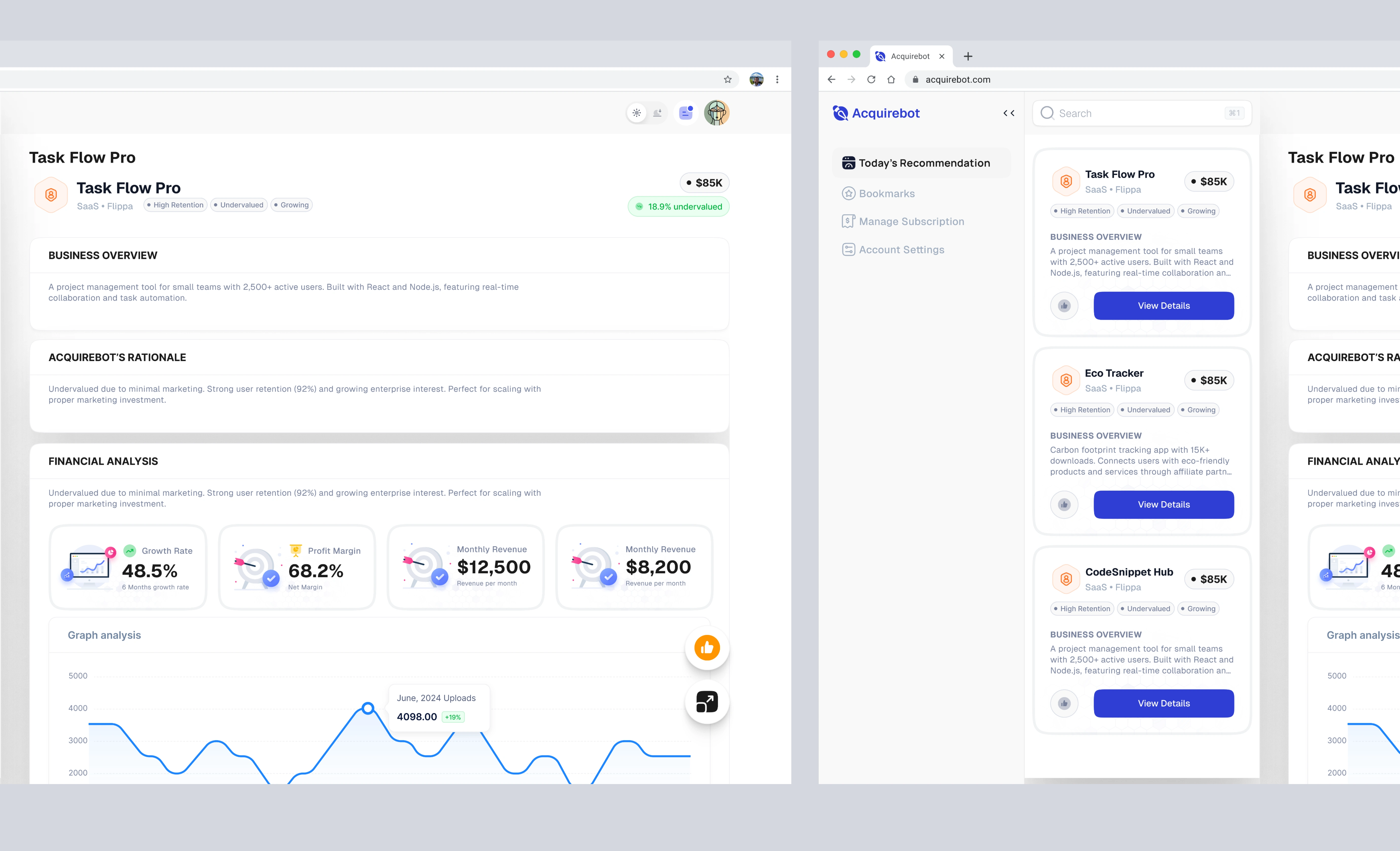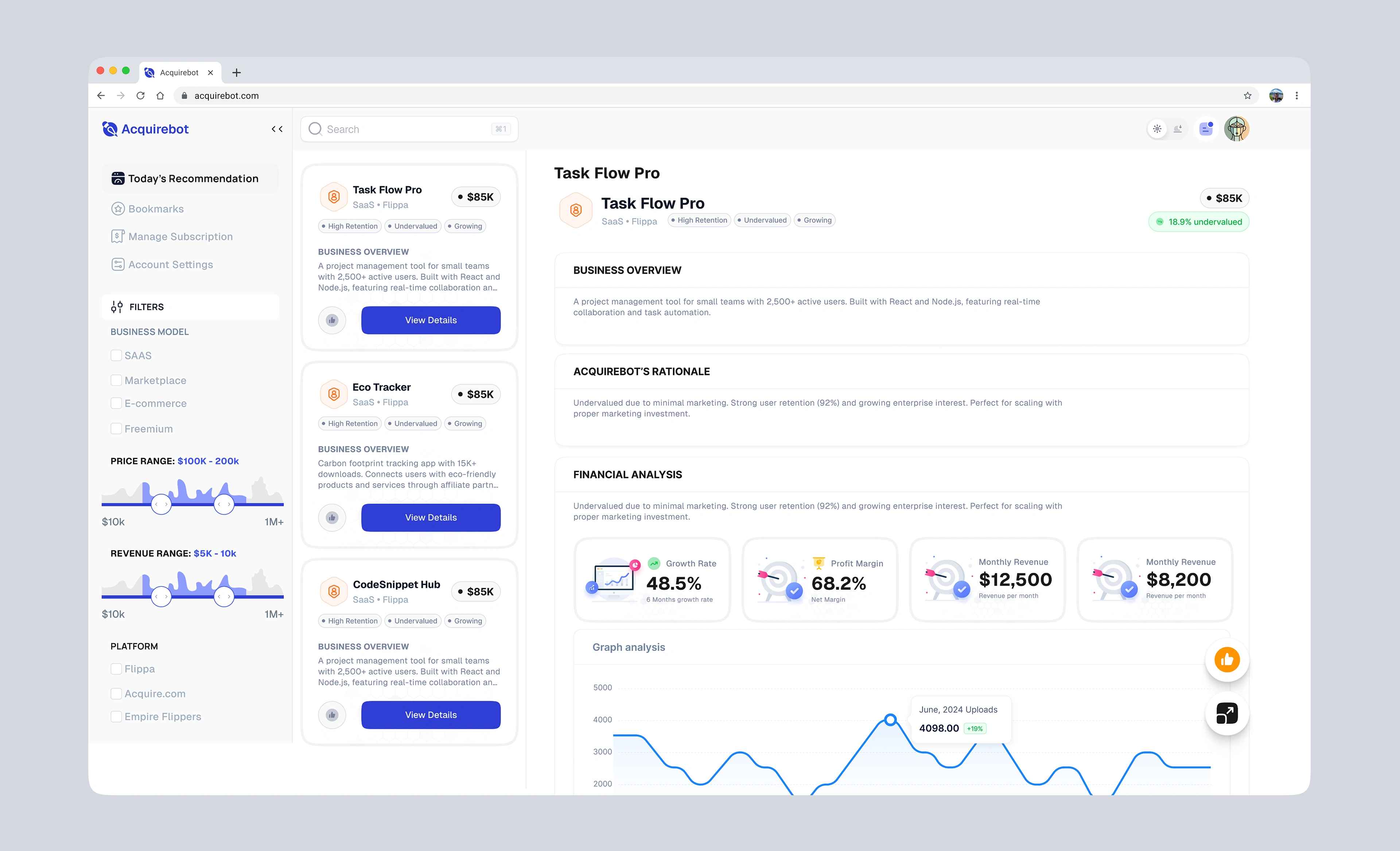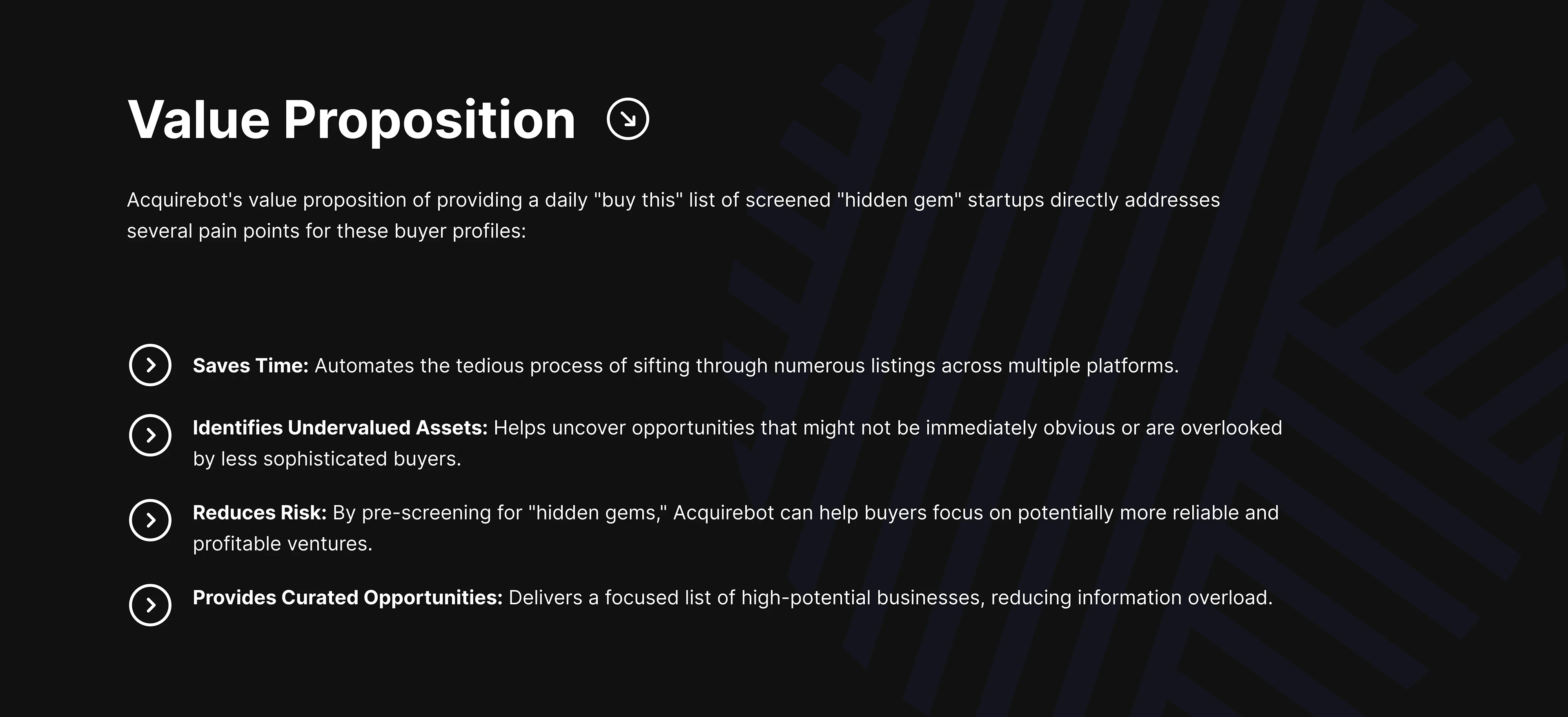 Acquirebot is a subscription tool that finds hidden startup acquisition opportunities and sends daily curated recommendations to make buying faster and easier.